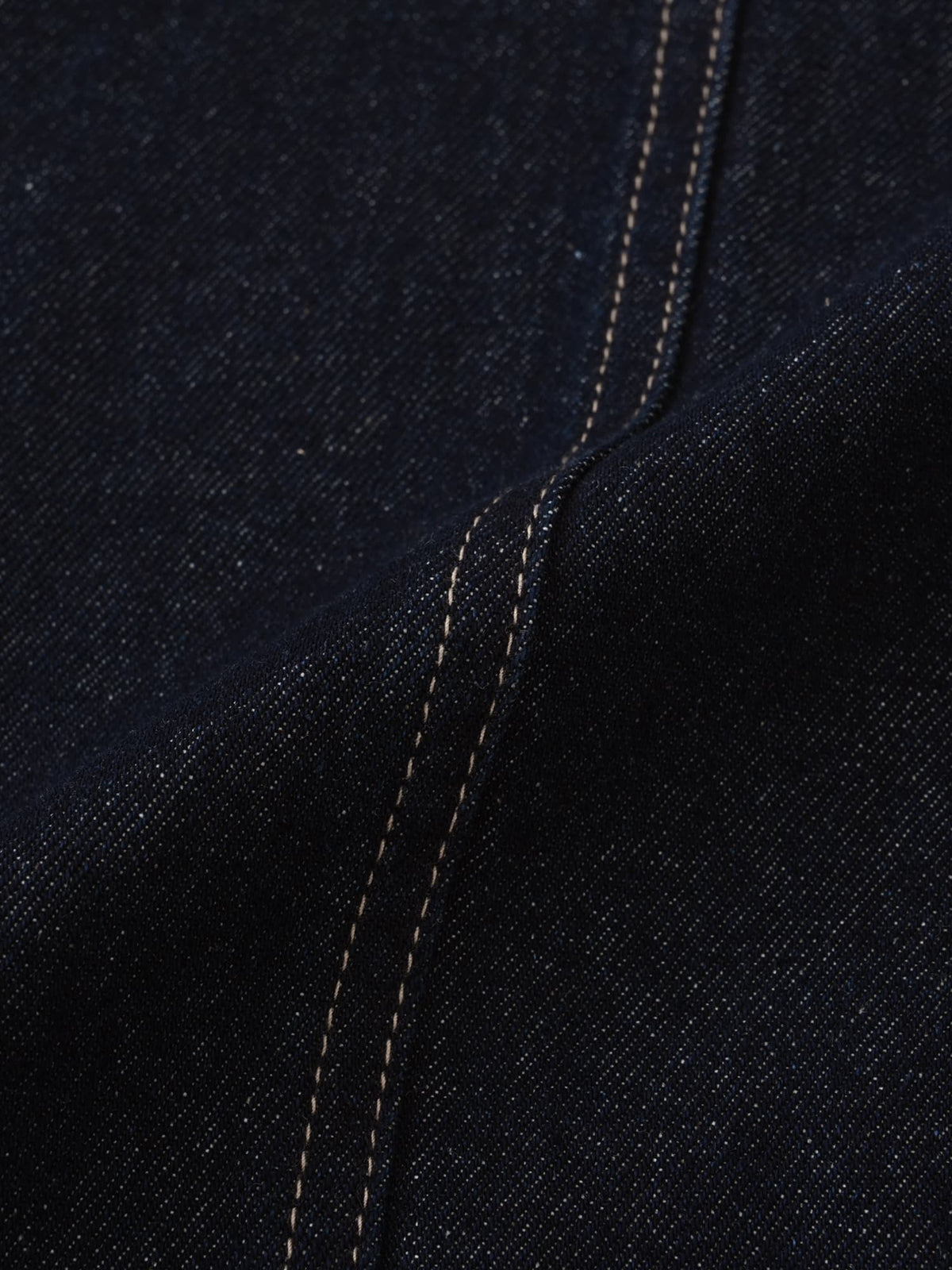 9.8オンスのデニム生地を使用。程よい軽さと身体に馴染む素材が魅力的です。こなれ感のあるブラスト加工されたインディゴと大人な綺麗めのダークインディゴの2色展開。