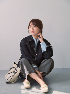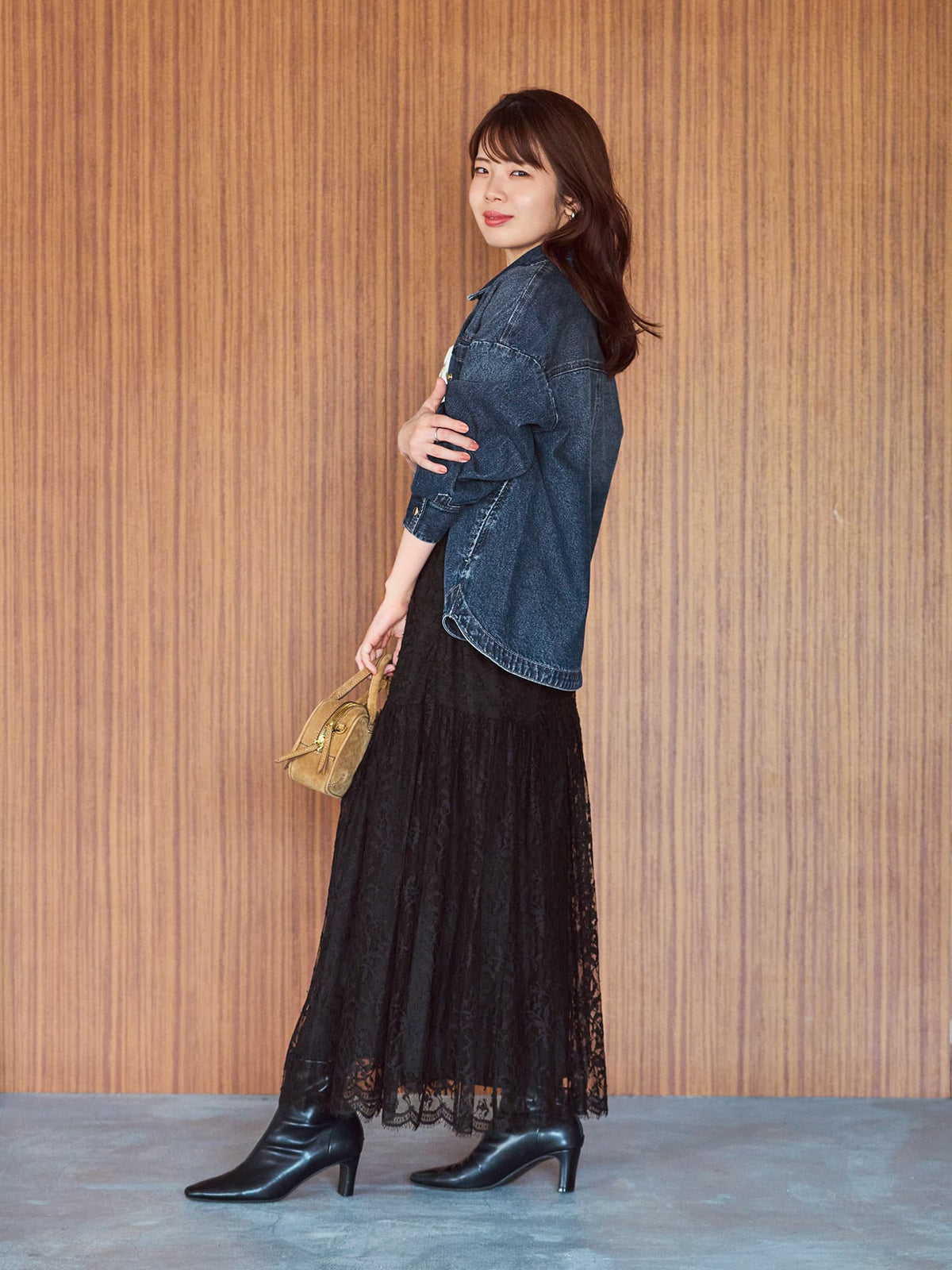 デニムシャツジャケットは程よい厚みで肌寒い日にぴったり。インナー次第で長く使えるので、タンクトップや長袖ニットなど季節の変わり目に大活躍する1枚です。