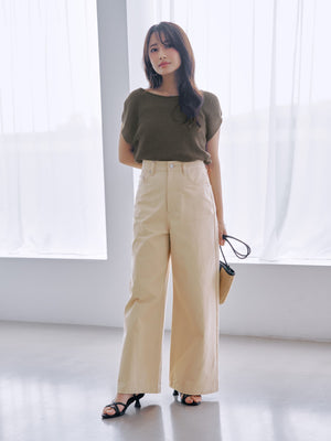 カットソーやニット合わせはもちろん、ジャケットやブラウスなどの綺麗めアイテムをカジュアルダウンさせるスタイリングもおすすめ。カジュアルすぎないお色味で、トップスを選ばず、どんなアイテムとも馴染みよくコーディネートしていただけます。