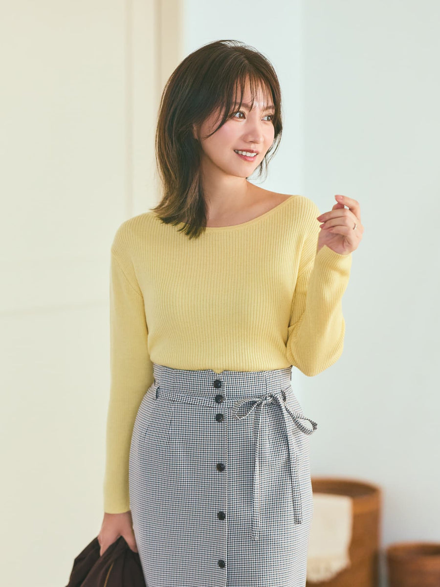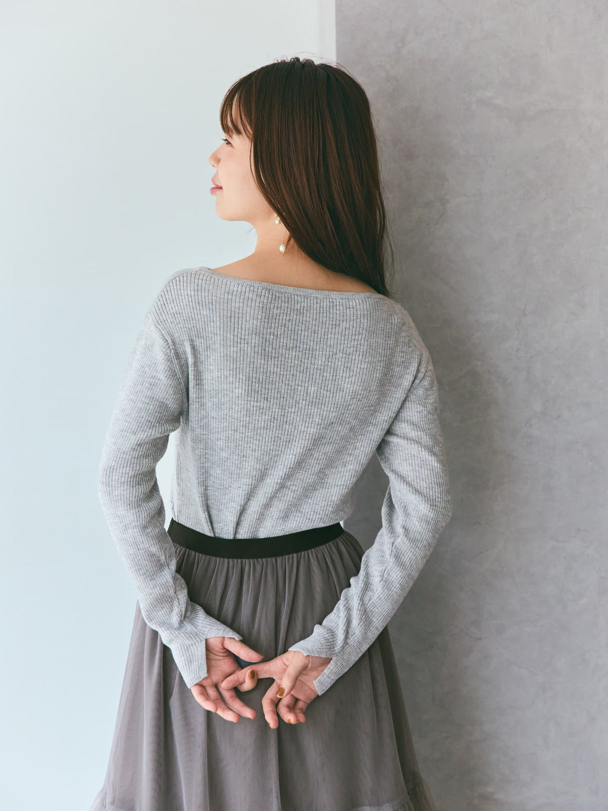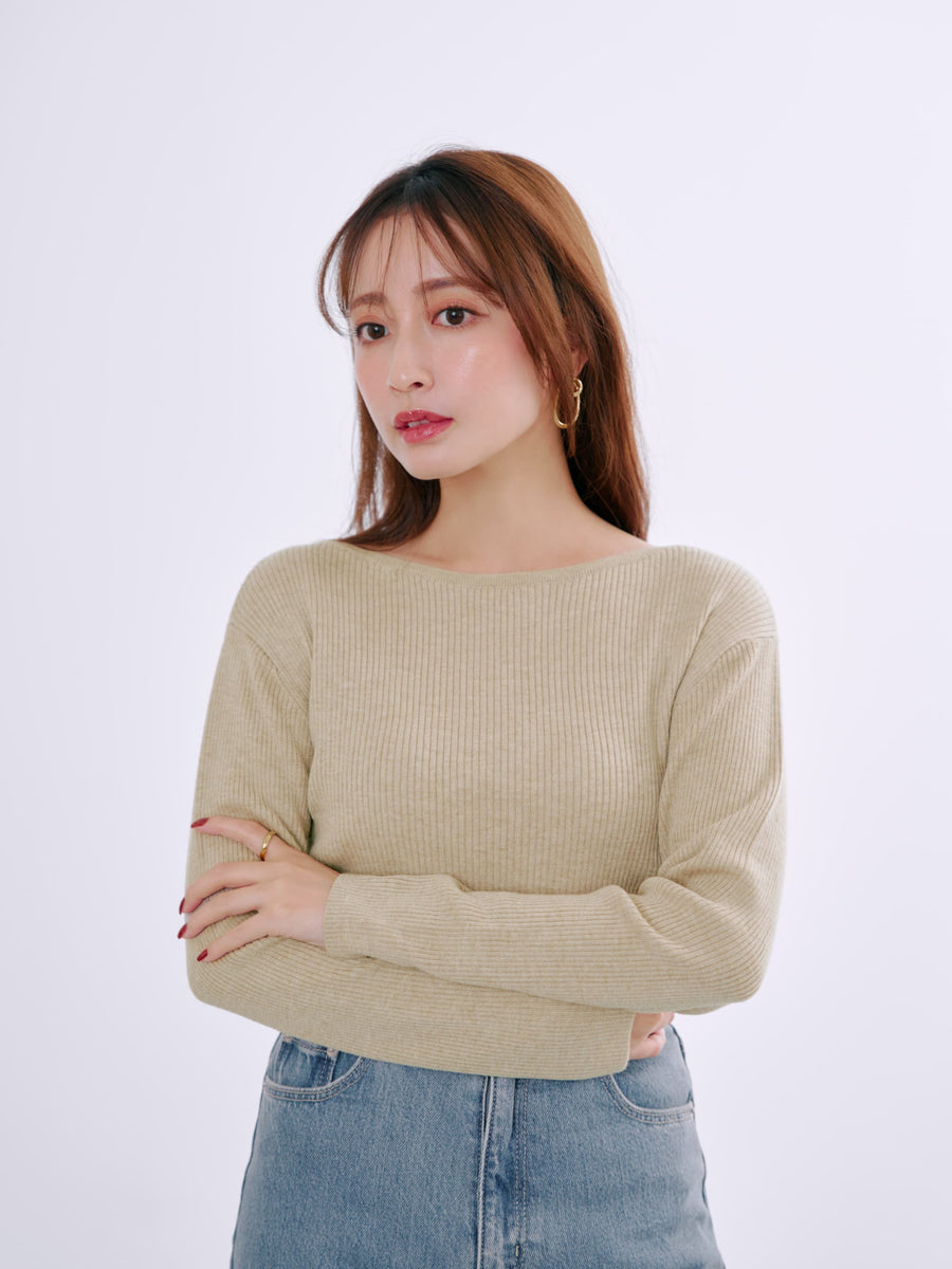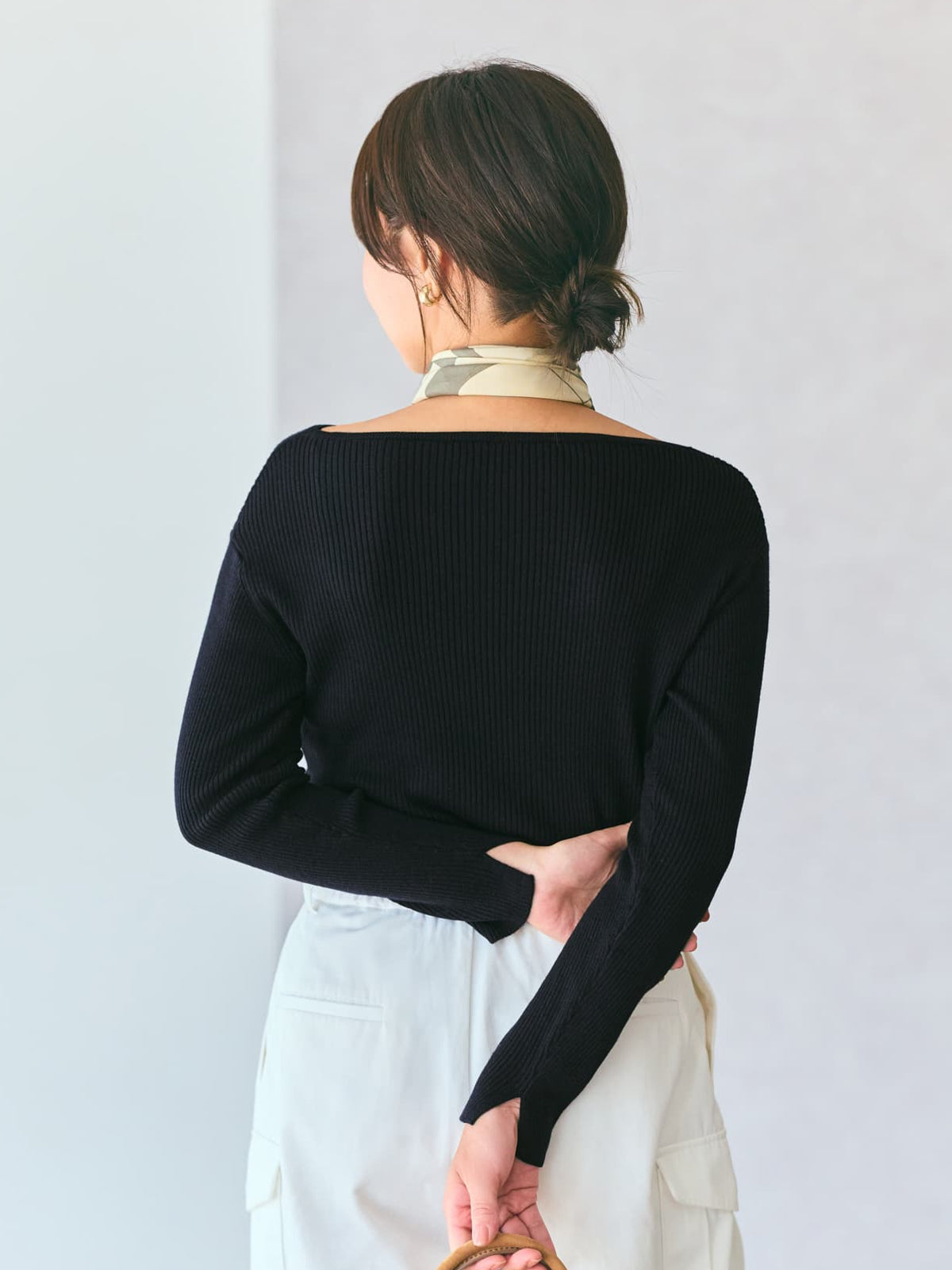 ボートネックで抜け感満載!1枚でも、重ねても美しい万能リブニット