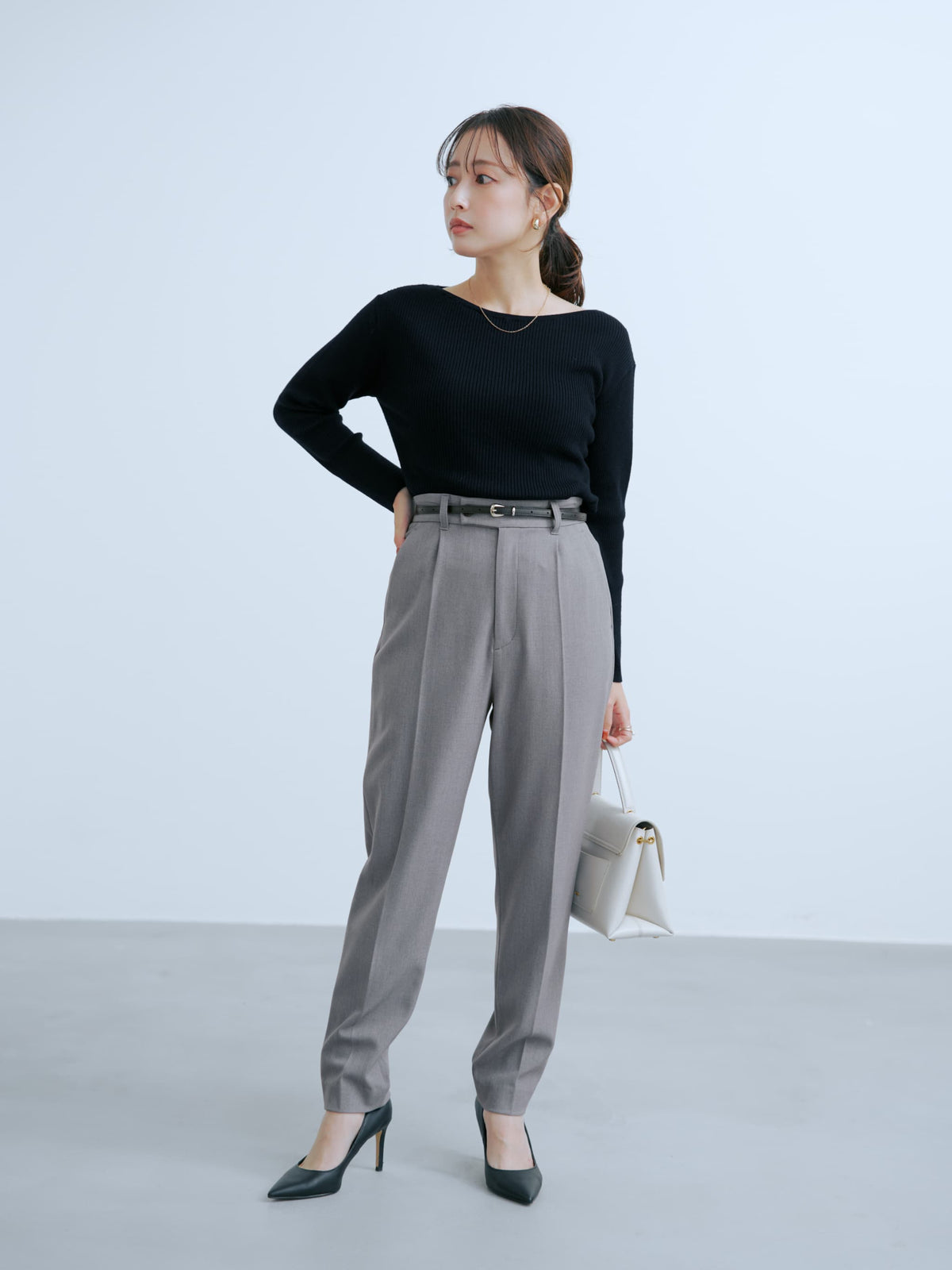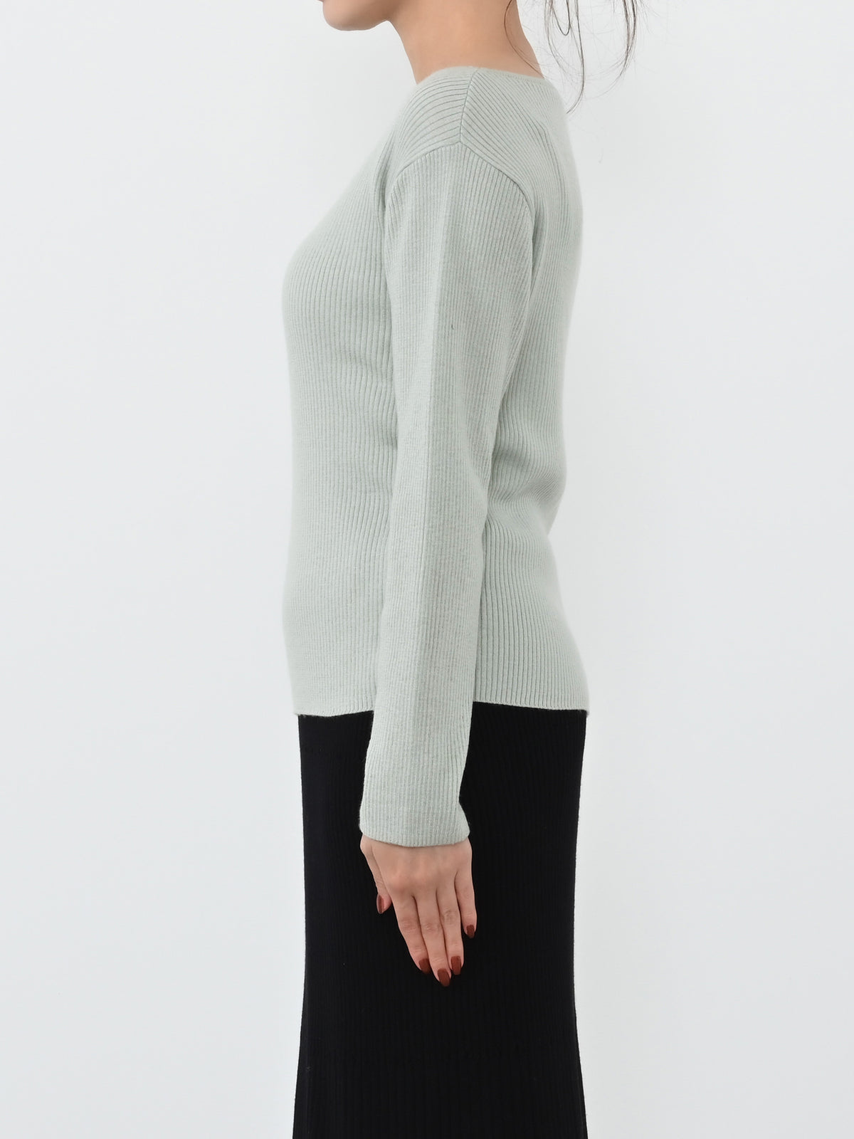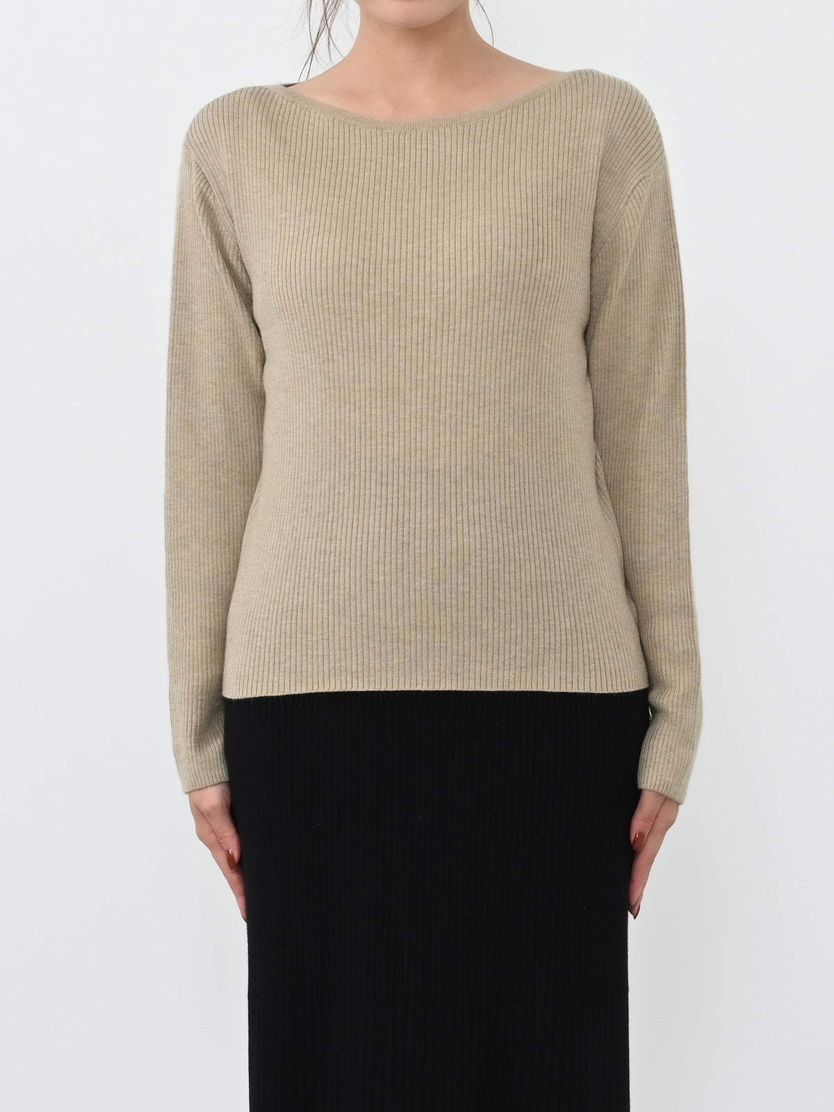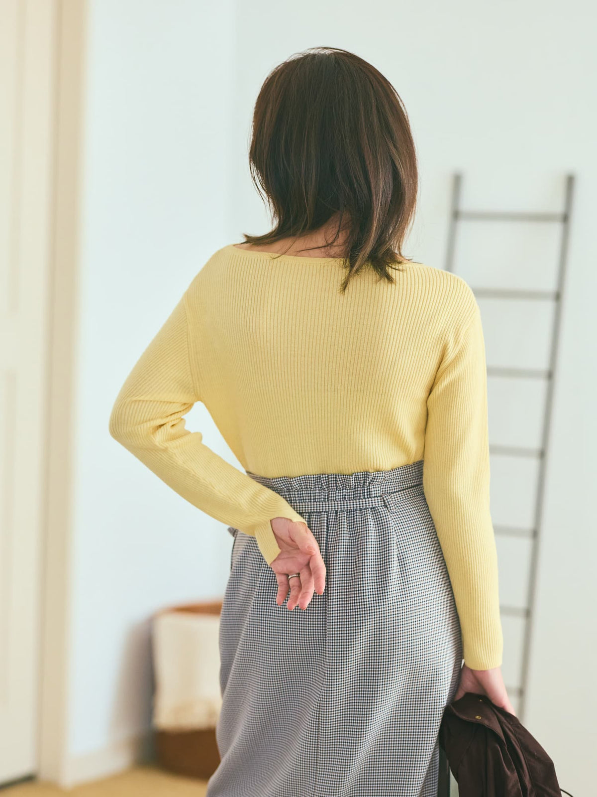 ボートネックで抜け感満載!1枚でも、重ねても美しい万能リブニット
