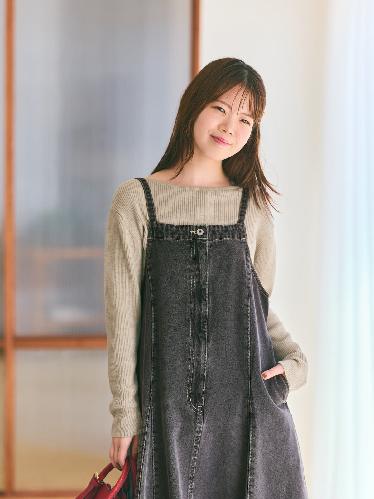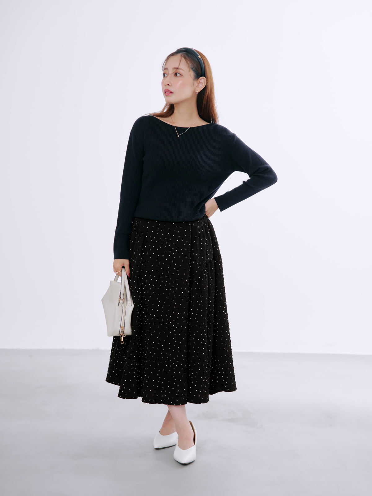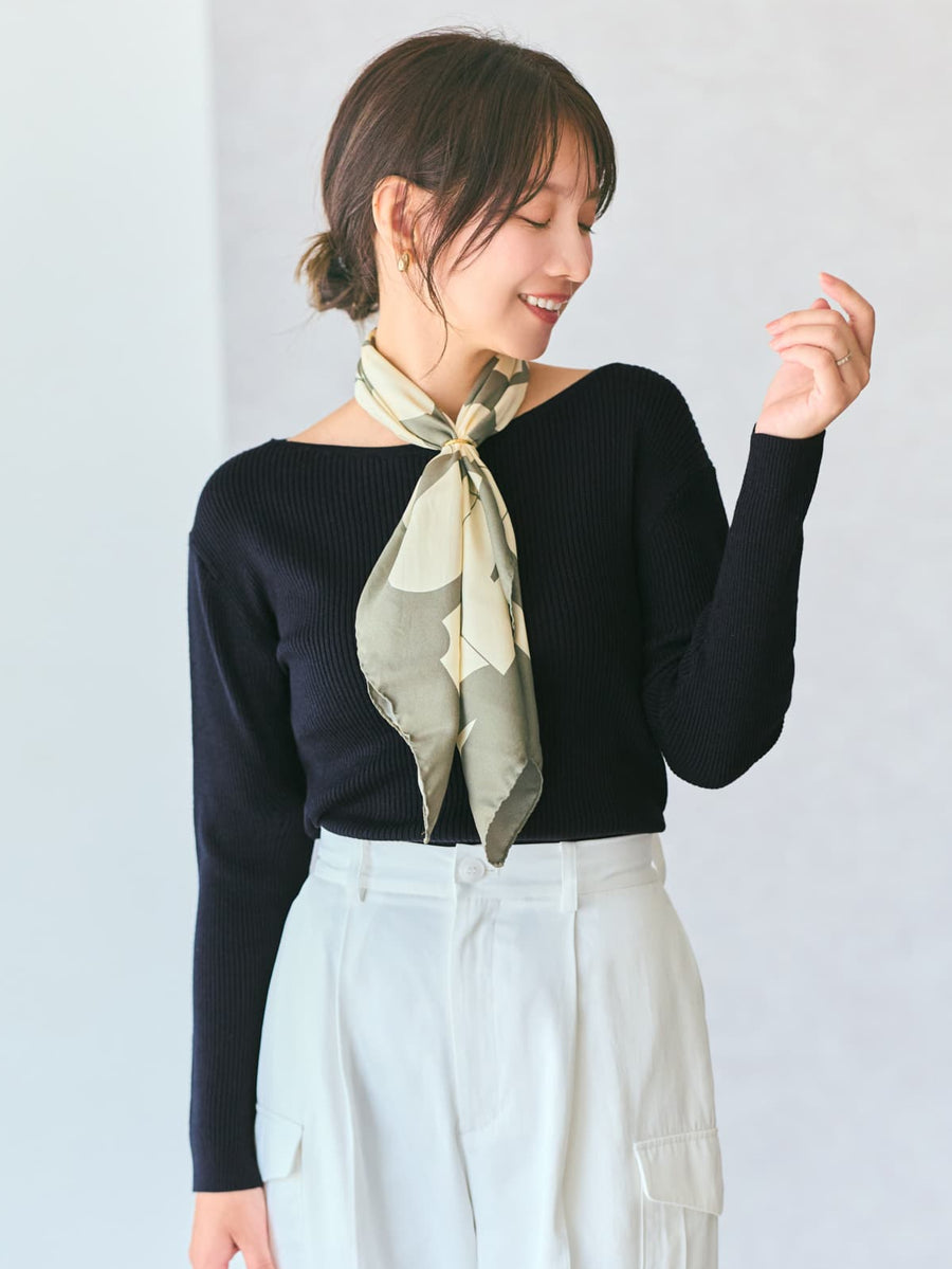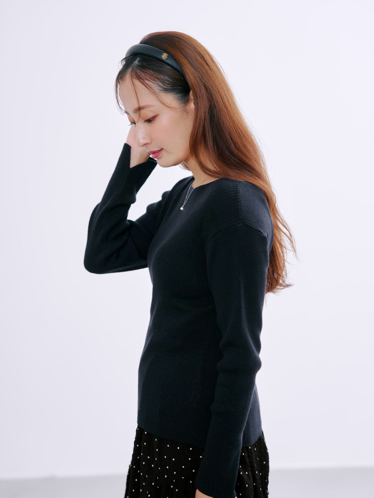 ボートネックで抜け感満載!1枚でも、重ねても美しい万能リブニット