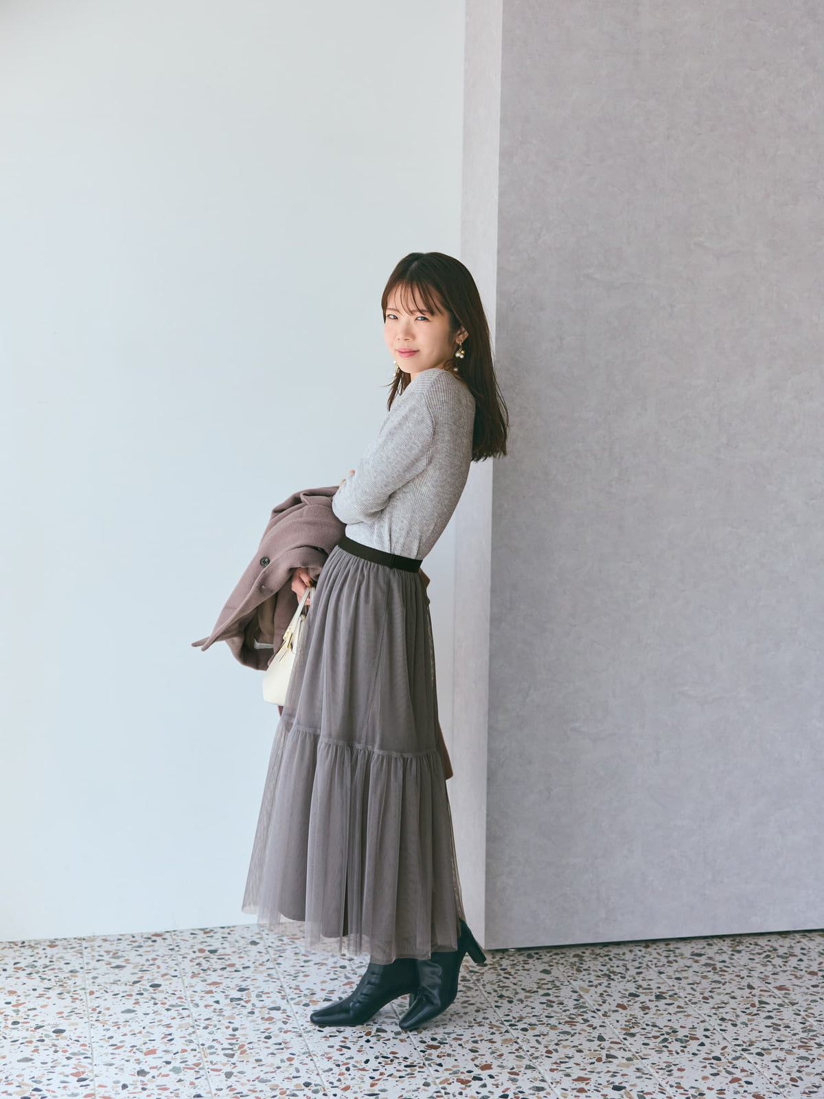肌触りが良く、着心地抜群なシルクウール素材のリブニットが登場です。コンパクトでありながら程よいゆるみを兼ね備え、ボディラインを拾いにくいシルエットに。