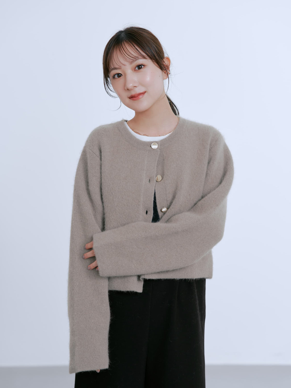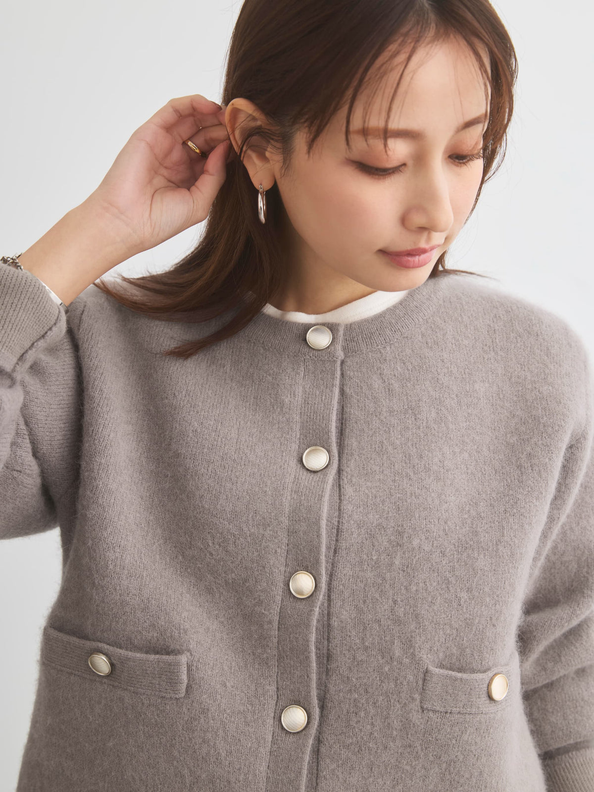 ふんわりとしたフォックスアンゴラの柔らかな風合いが魅力のニットジャケット。