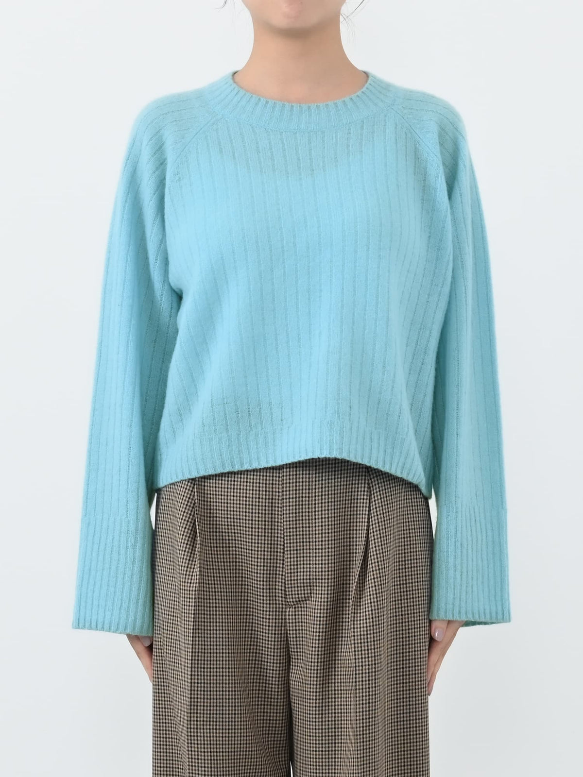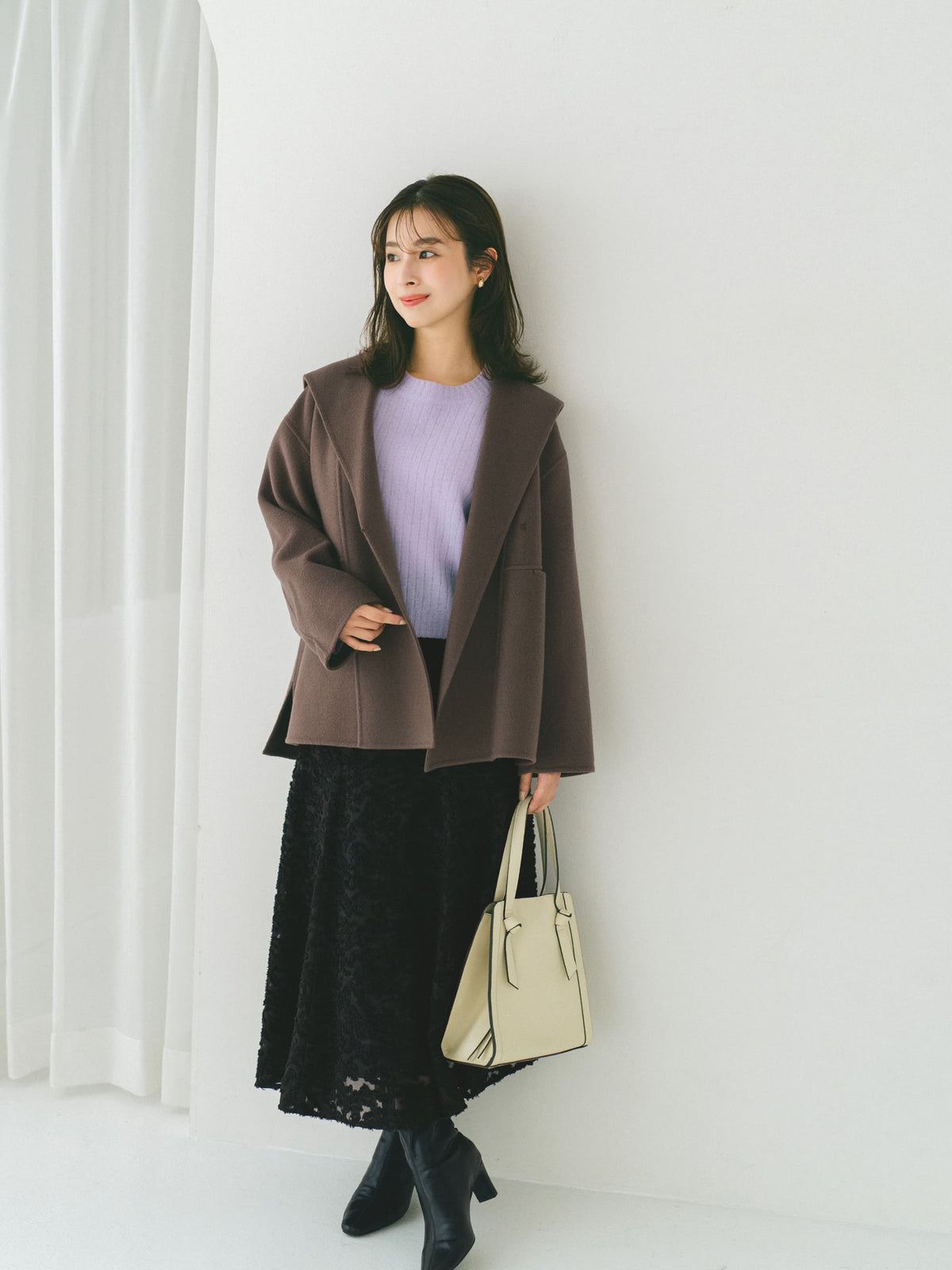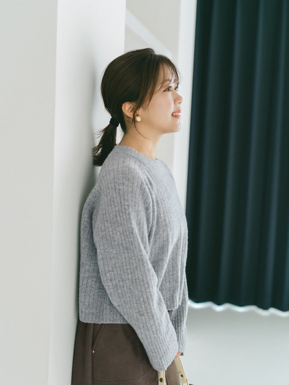 ふっくらとした表情のある、小柄さんに合わせたワイドリブ編みが魅力のショート丈ニット。ウール100%ならではの柔らかく暖かな着心地で、シンプルながらも上質感のある1枚です。程よいショート丈がバランスを取りやすく、どんなボトムとも好相性。