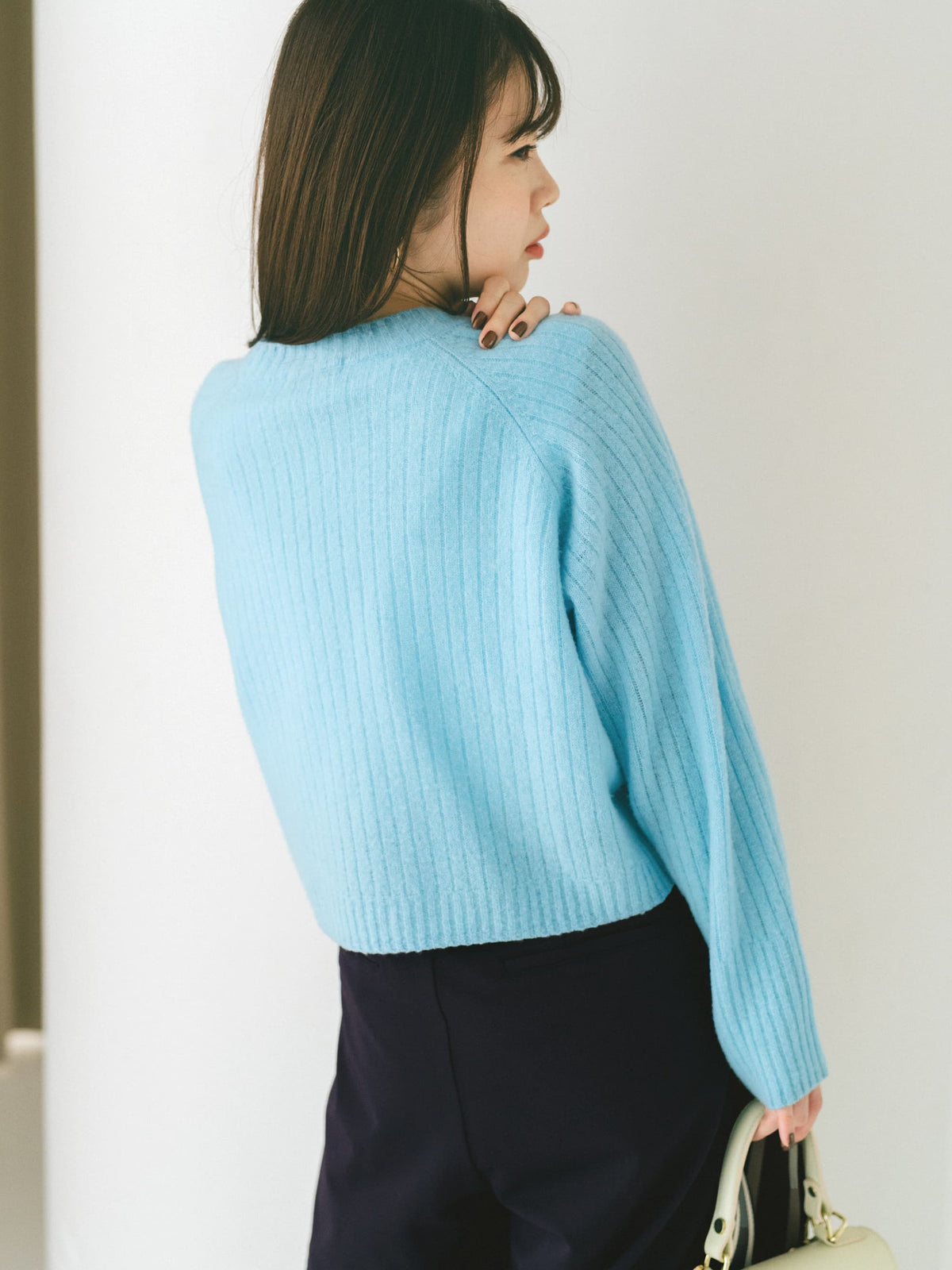 コンパクトなシルエットとリブの縦ラインが、スタイルアップを叶えてくれます。詰まりすぎない襟元は着心地良く着ていただけます。
