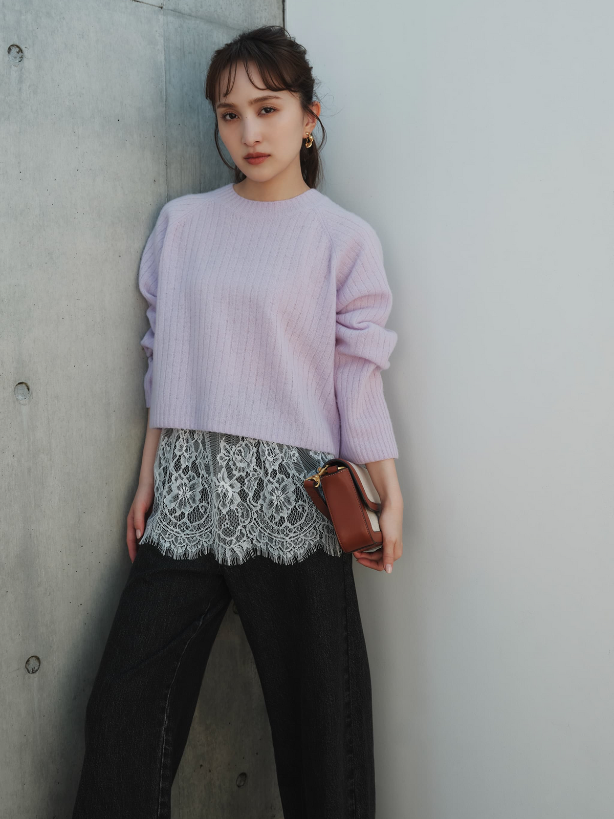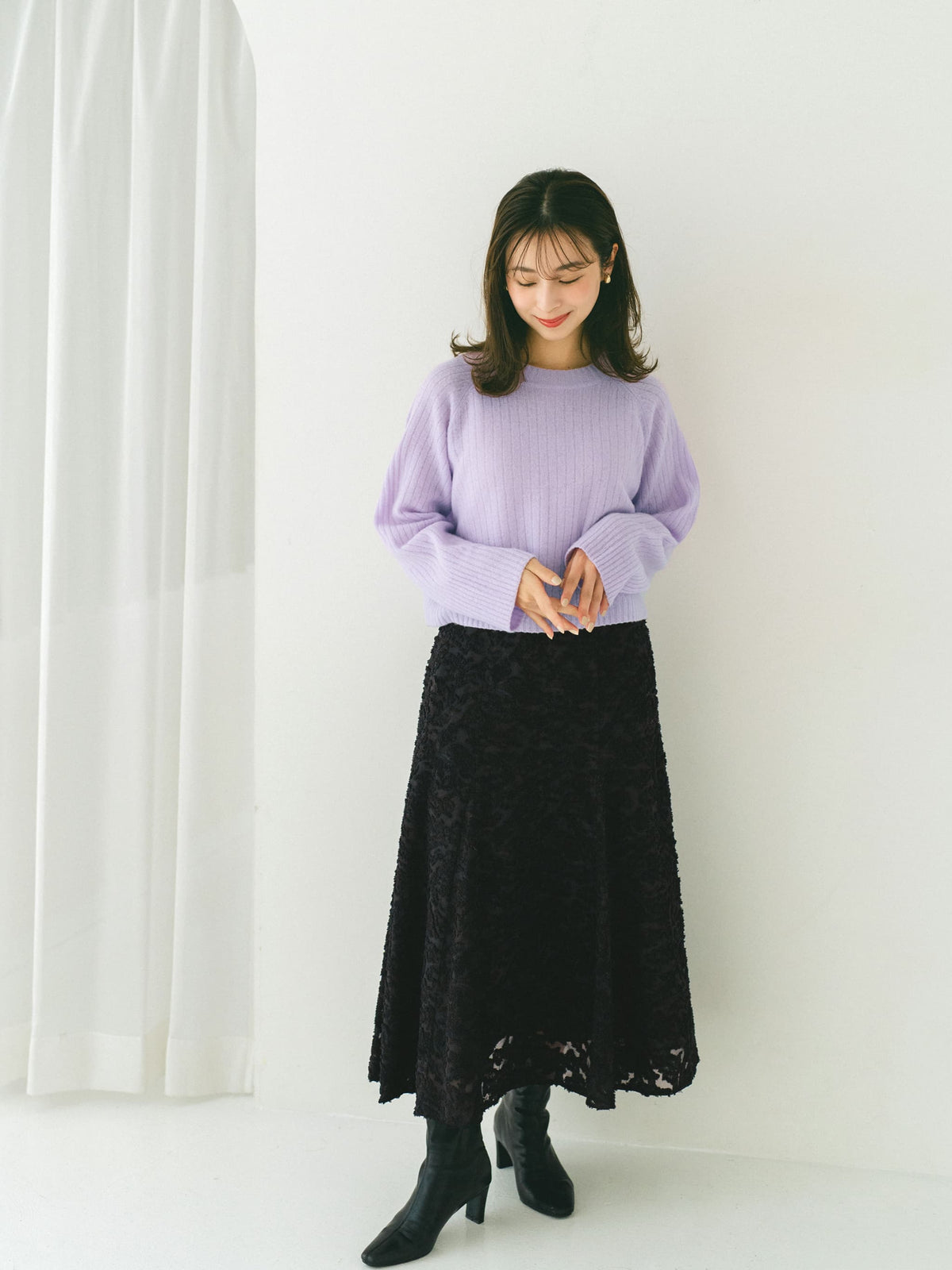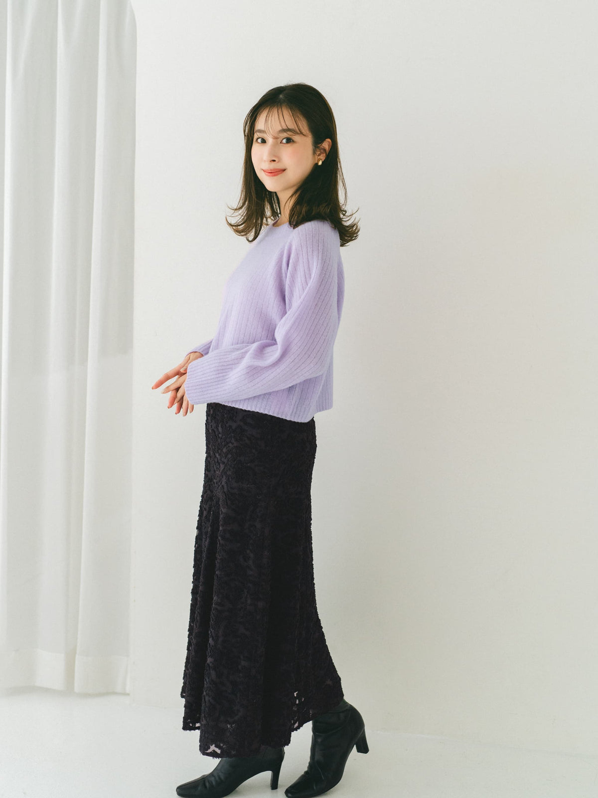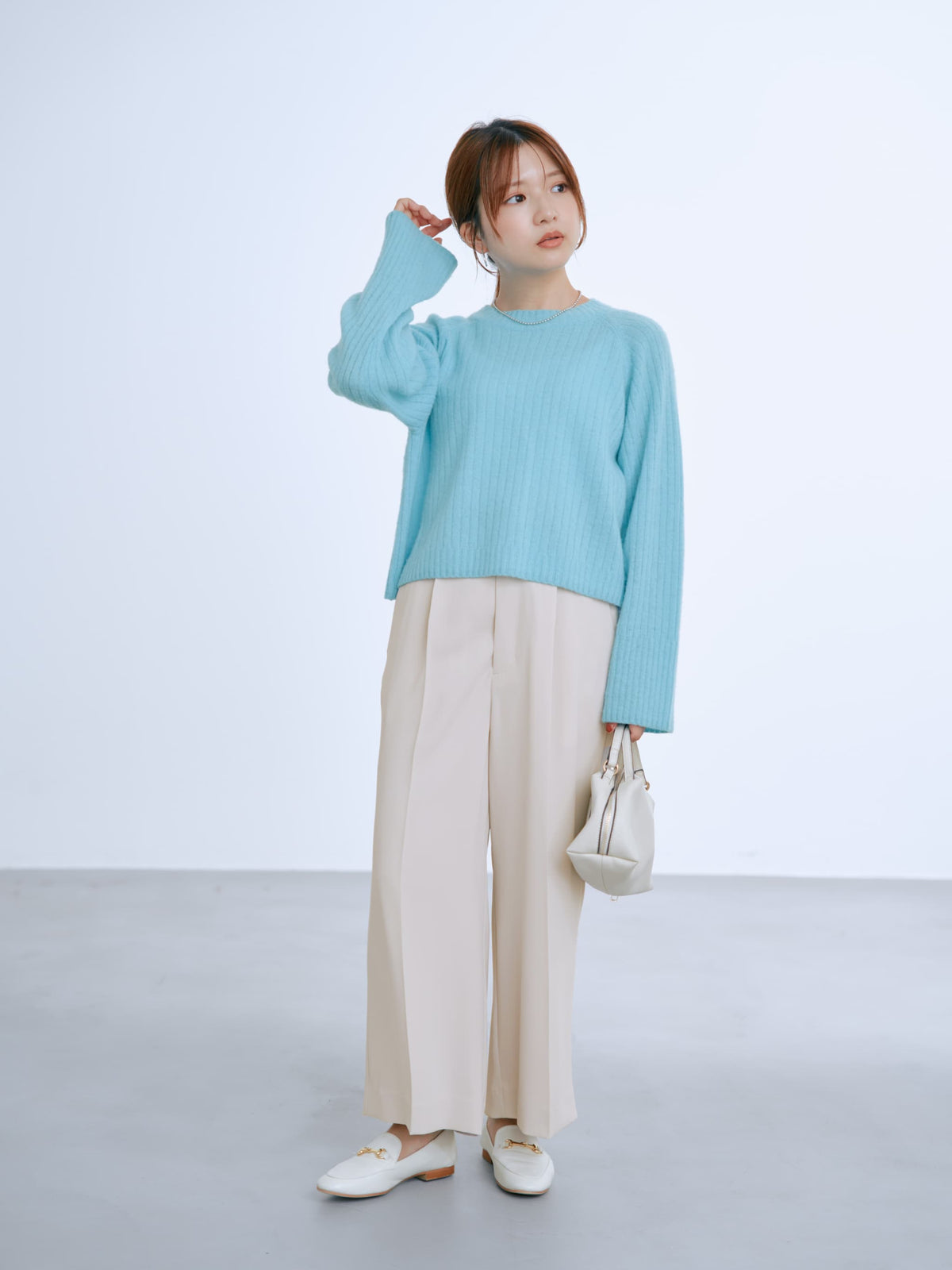コンパクトなシルエットニットはボリュームのあるボトムとバランス良く着ていただけます。程よく身体から離れたゆったりとしたシルエットは、タイトスカートとも合わせやすくこなれ感を演出してくれます。