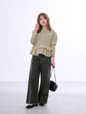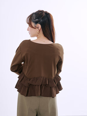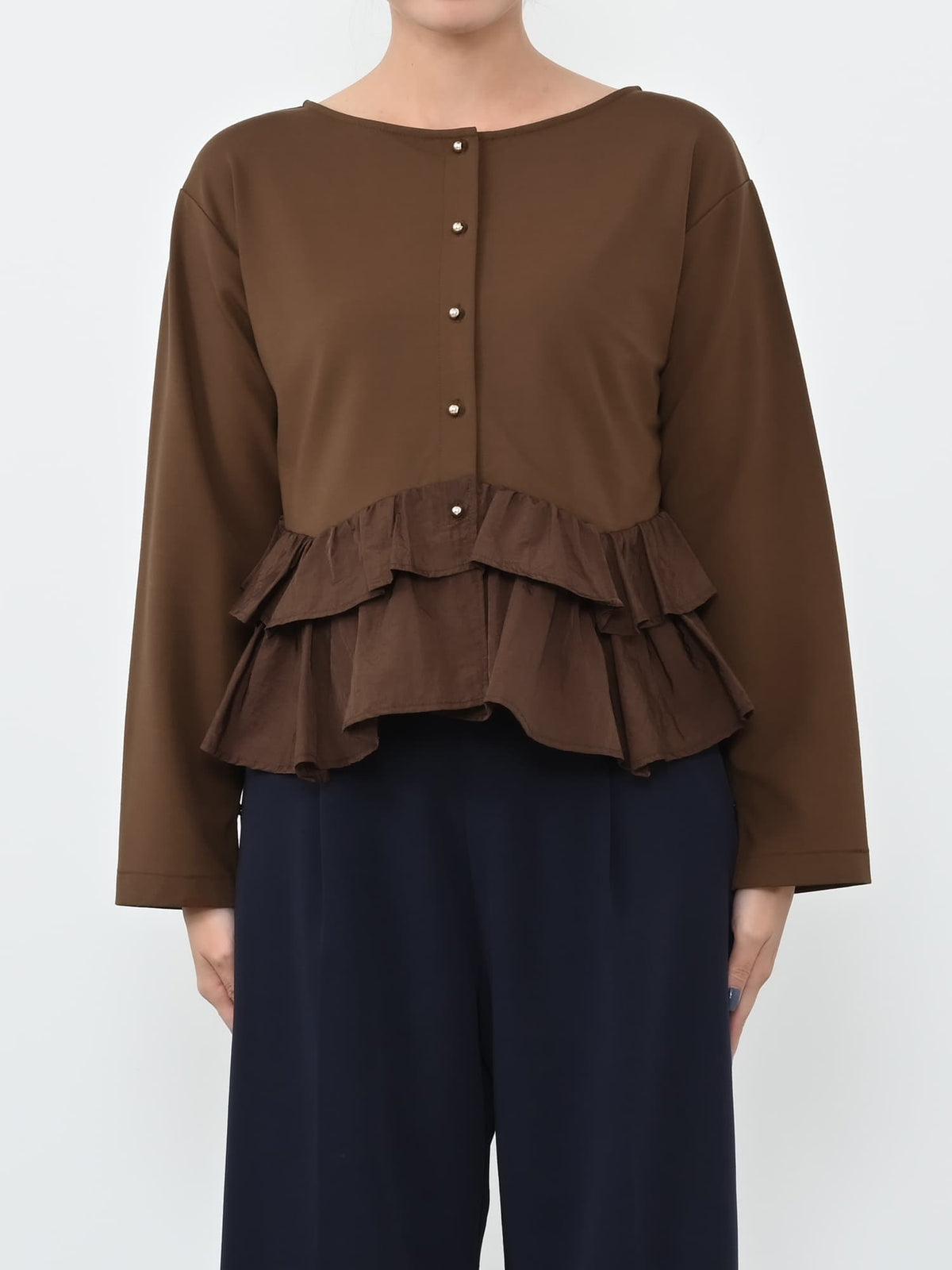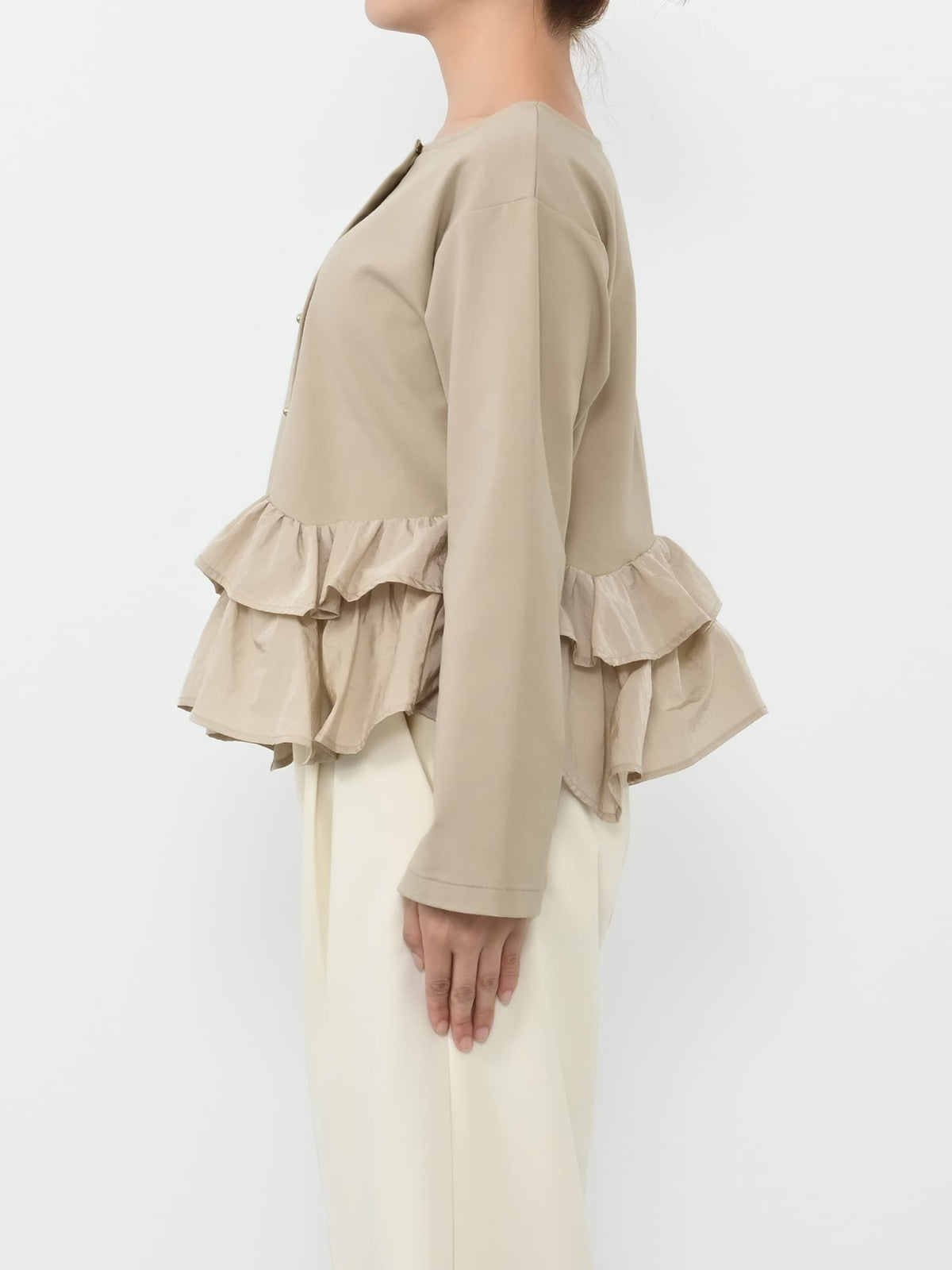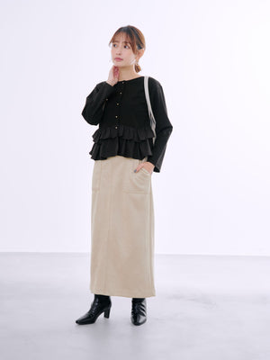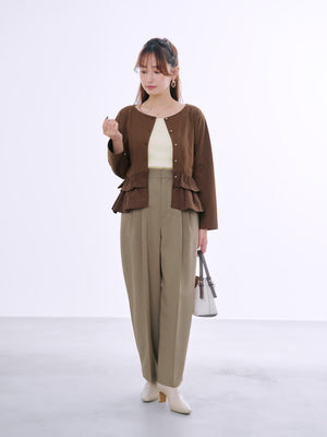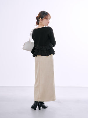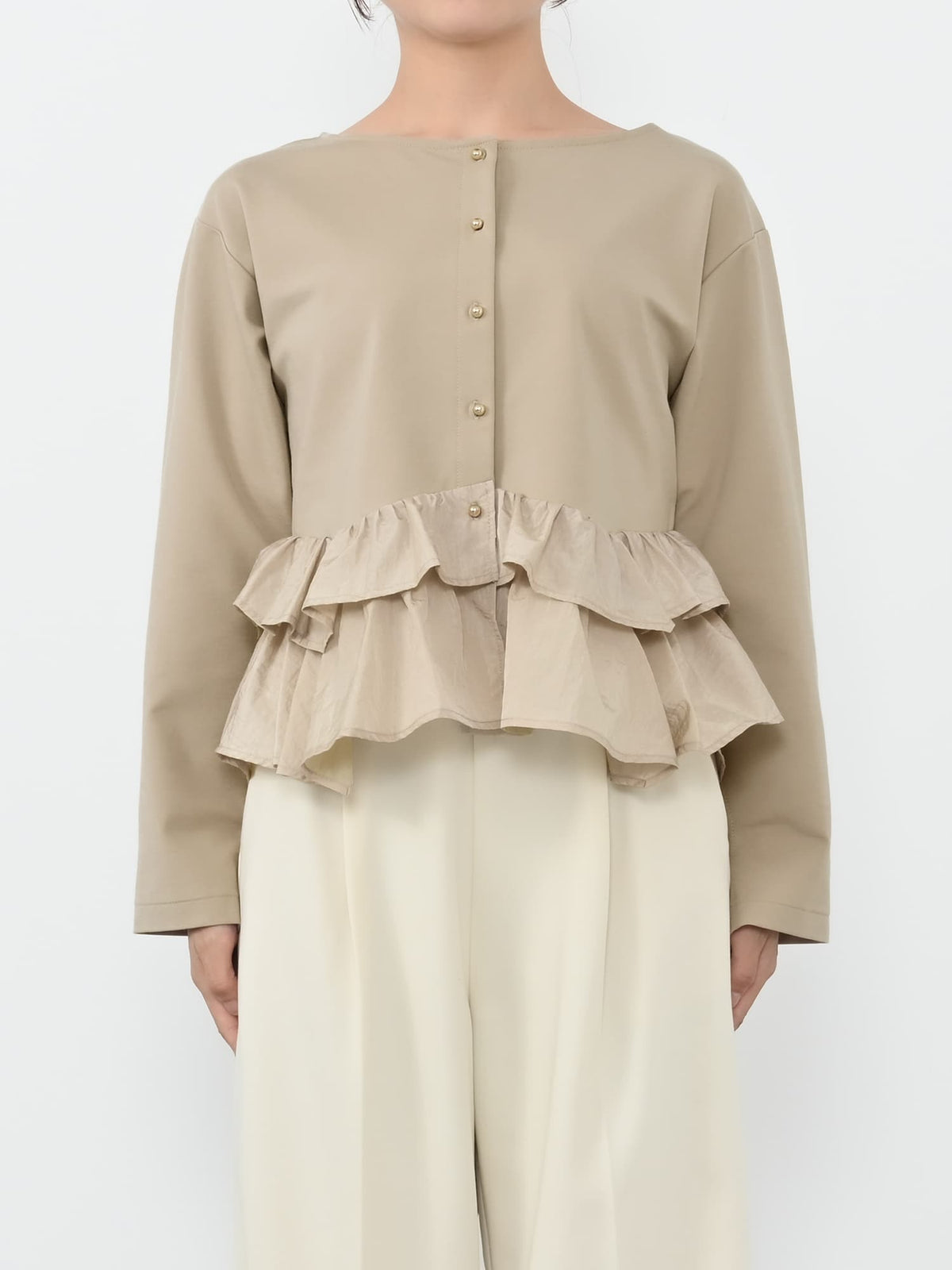 ランダムに流れるペプラムデザインが着映えしてくれる、トップスとしてもカーディガンとしても使える着回し力のあるアイテム。