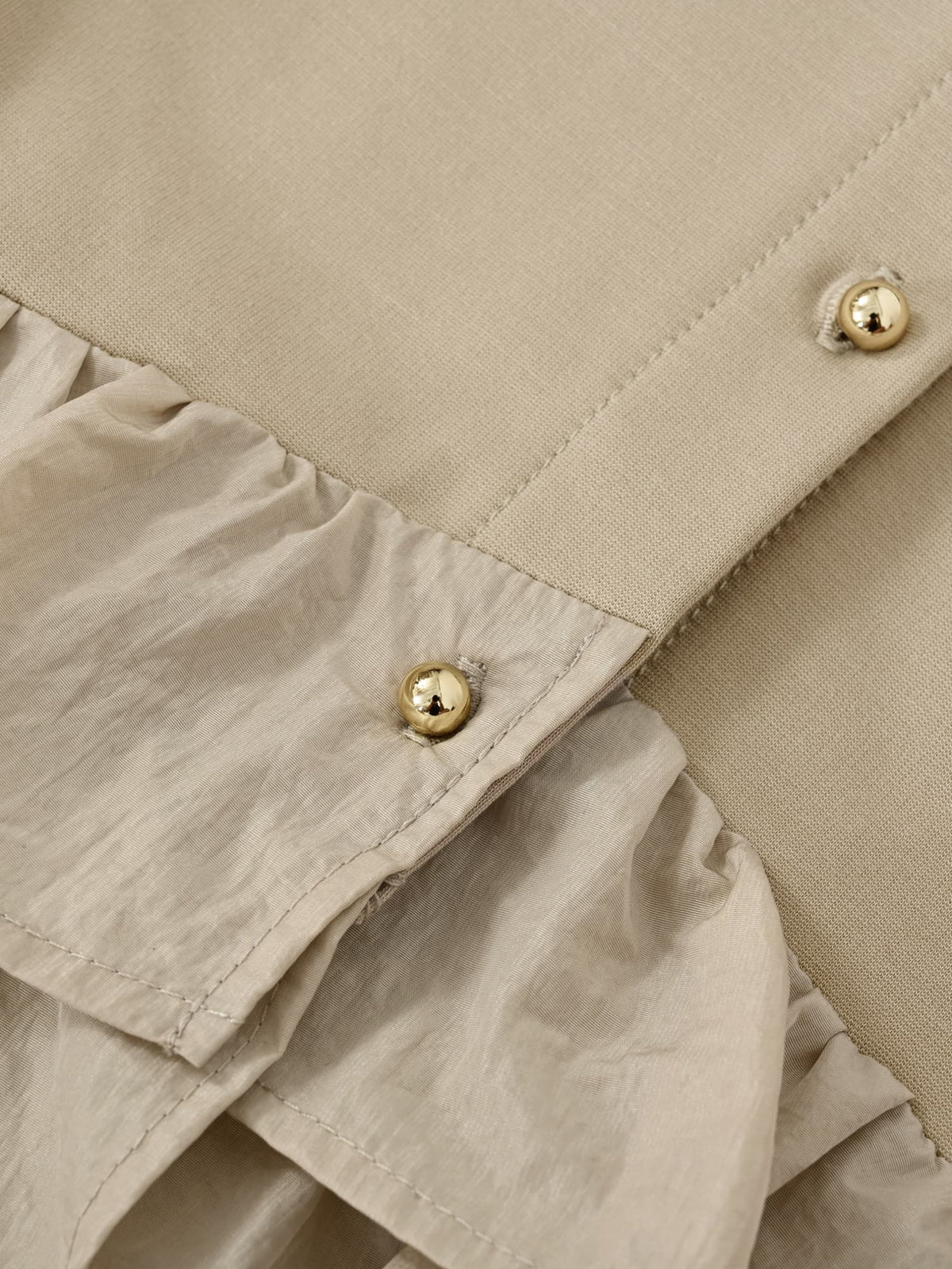 裾のペプラム部分はほんのりとシボのあるナイロン生地を使用し、シワも気になりにくい素材をセレクトしました。