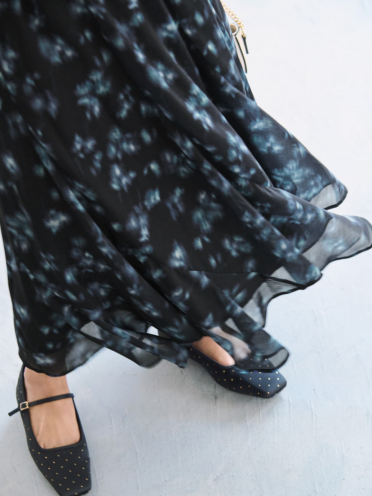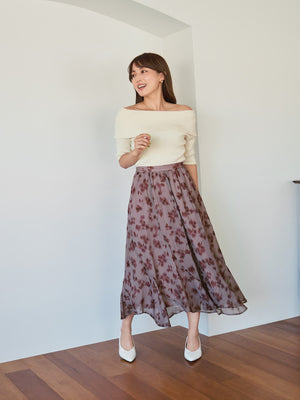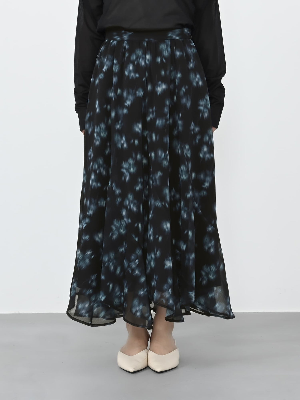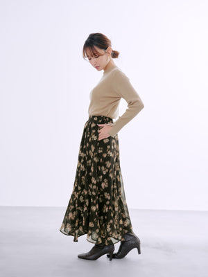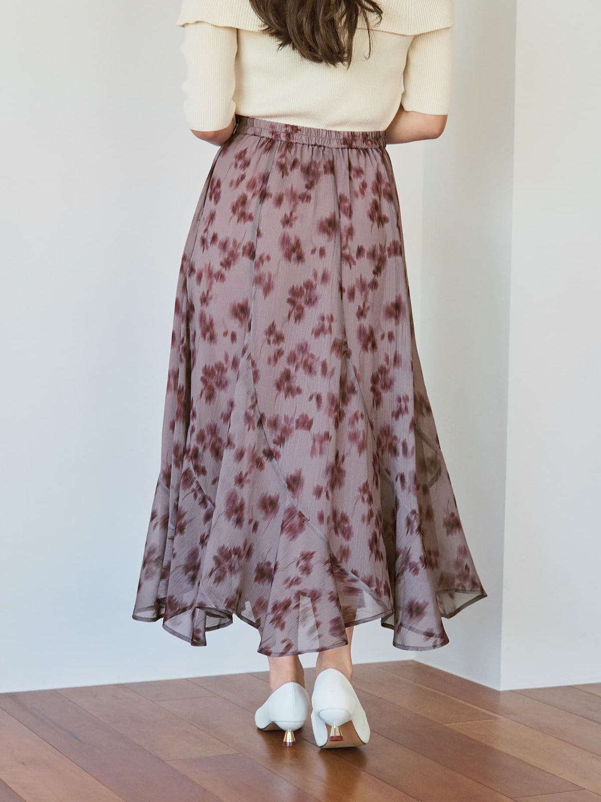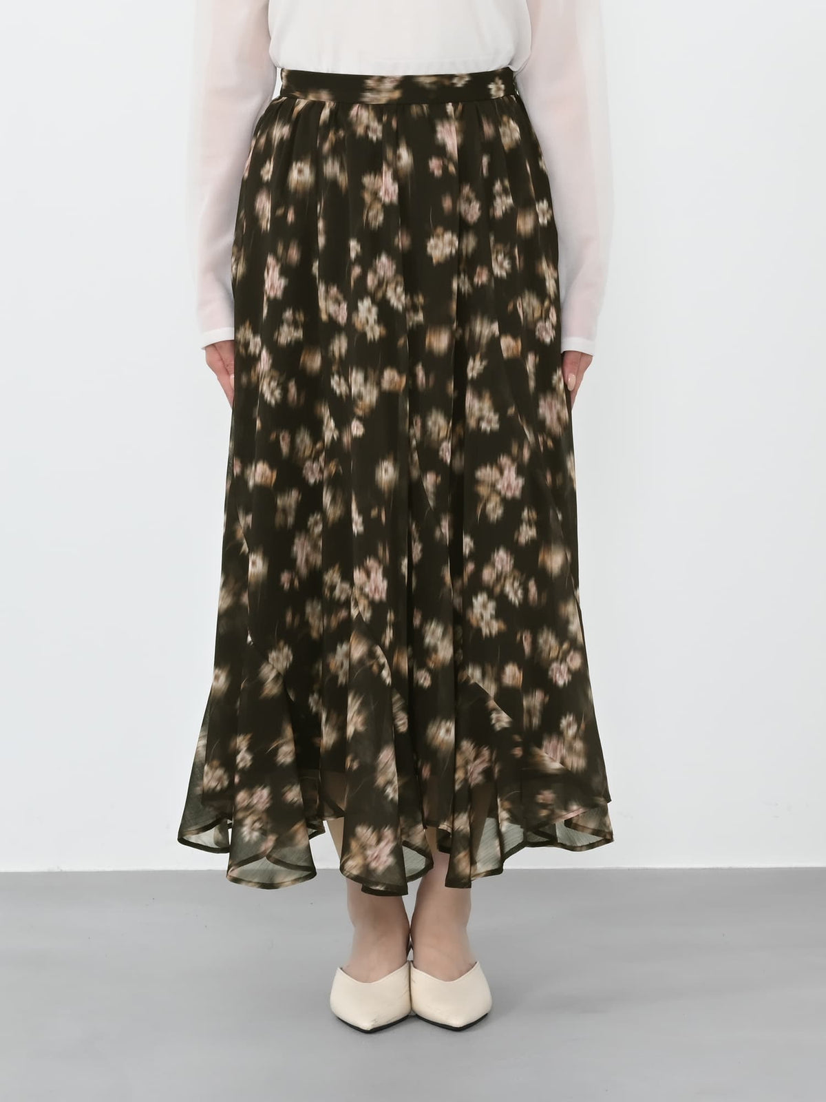 COHINAオリジナルシェードフラワープリントスカート。柔らかなタッチで溶け込むようなフラワーが印象的な柄にしてみました。