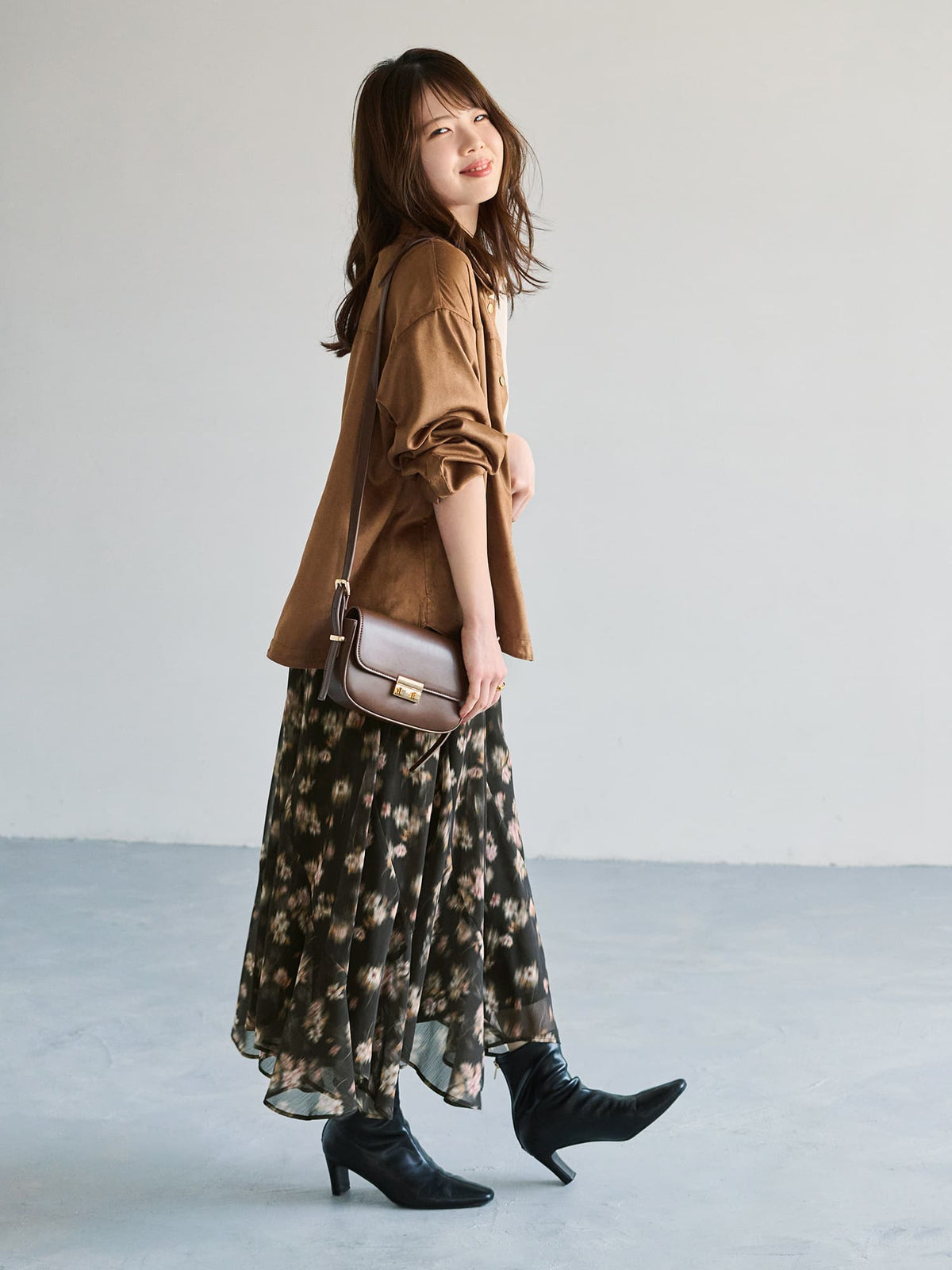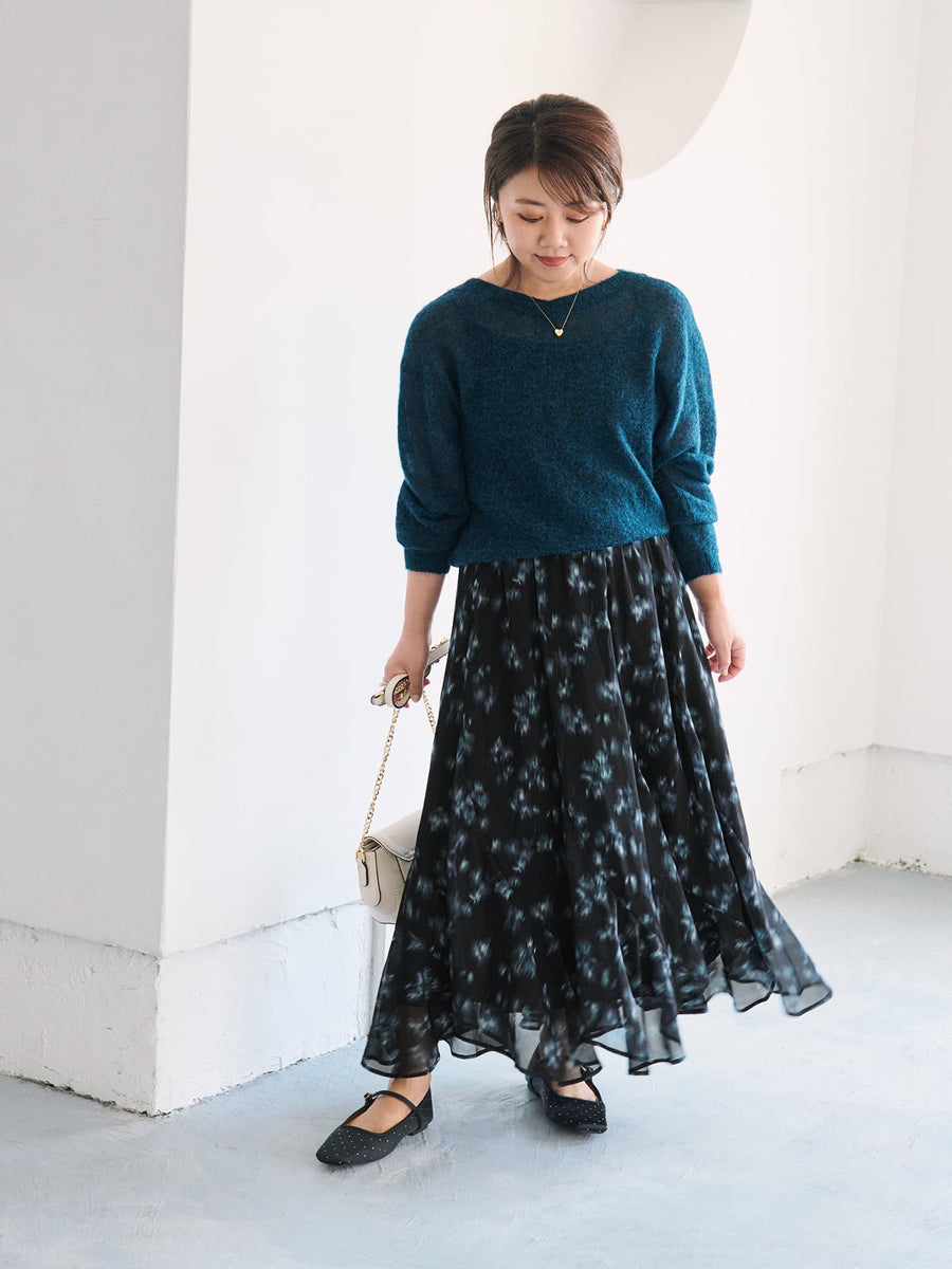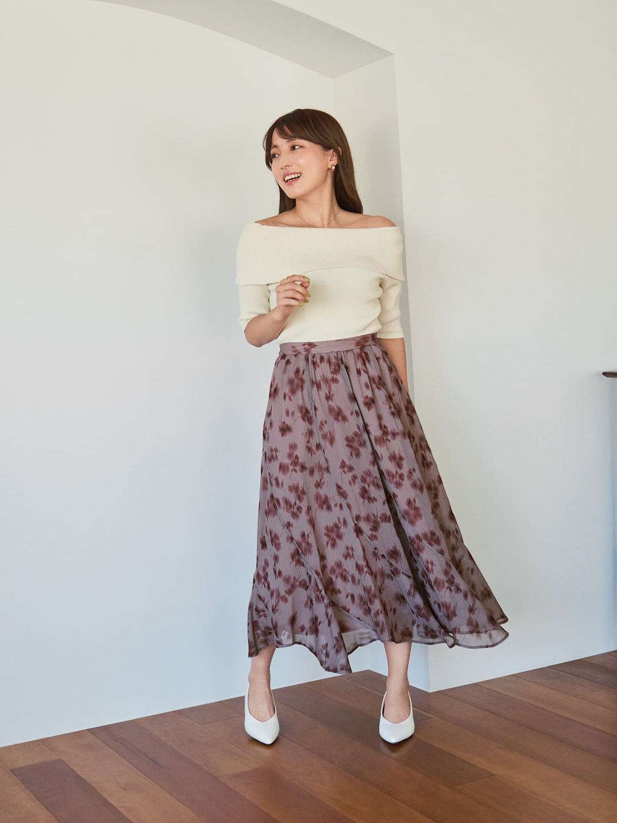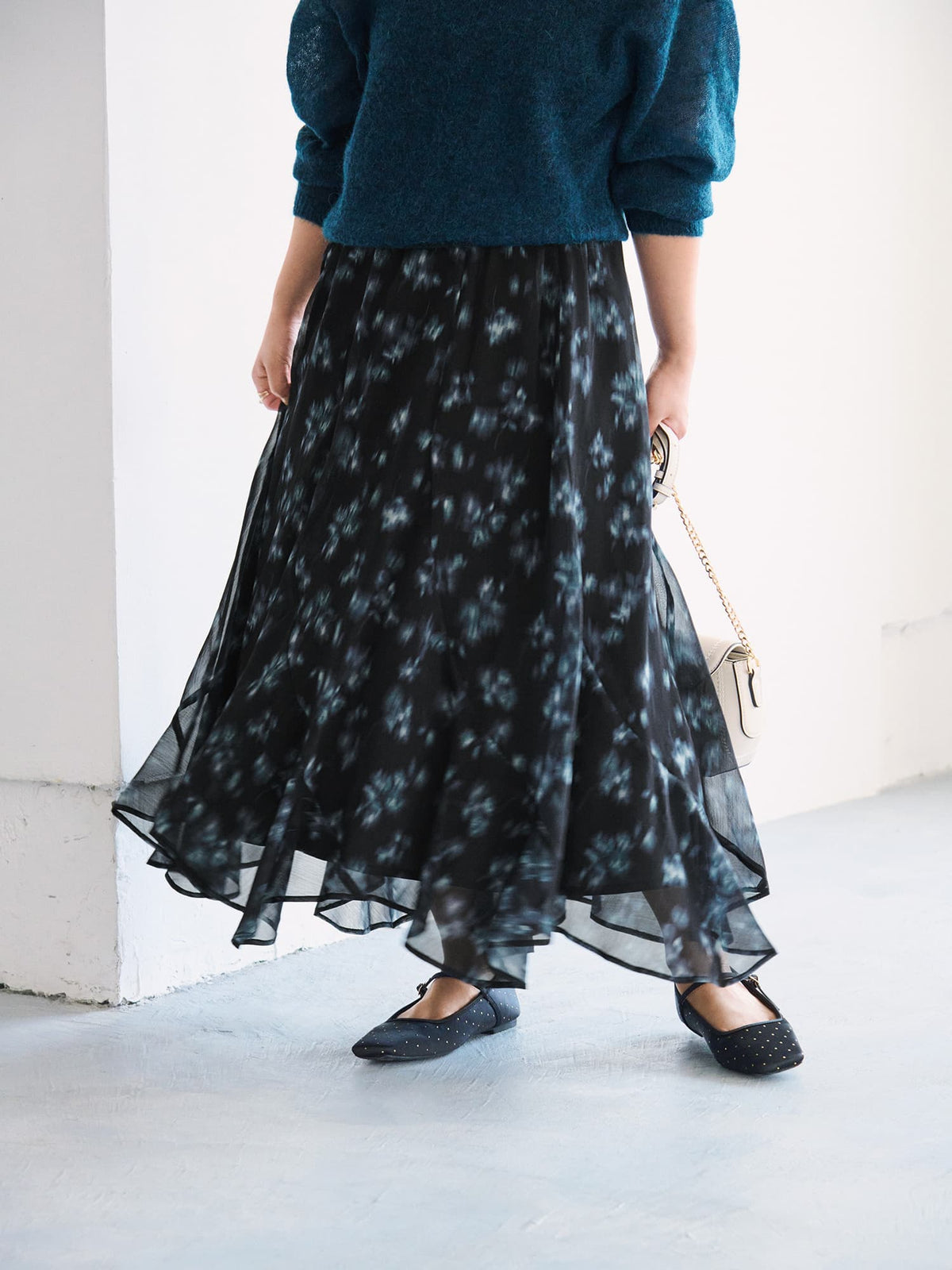 揺れるエスカルゴカーブが目を惹く、COHINAオリジナル花柄スカート