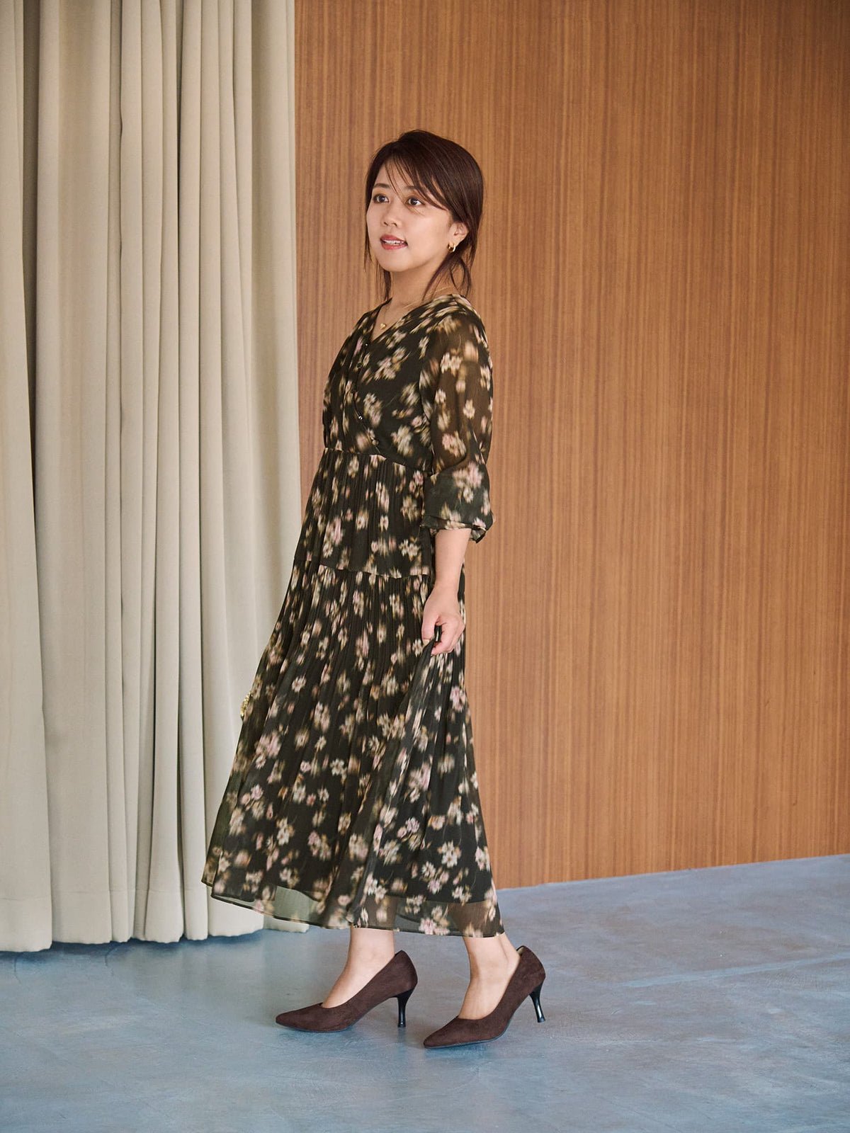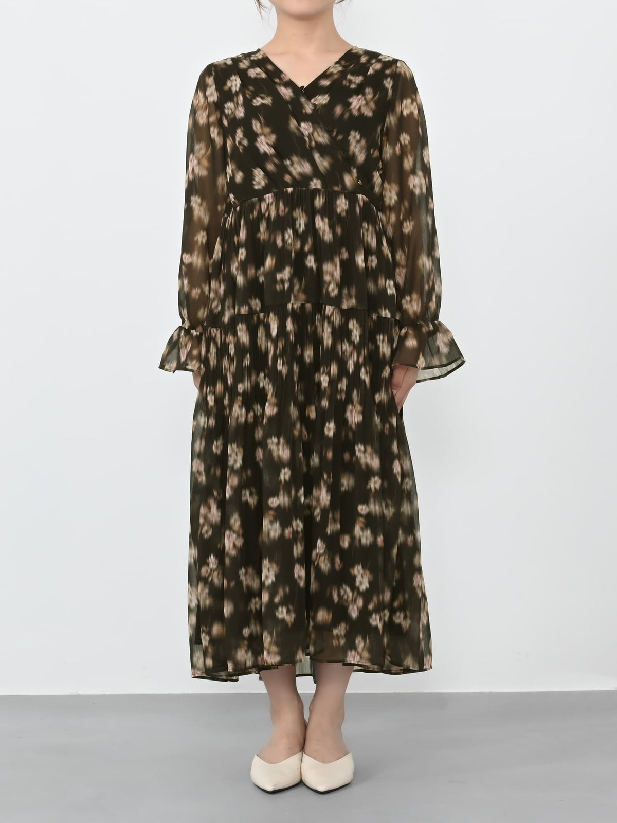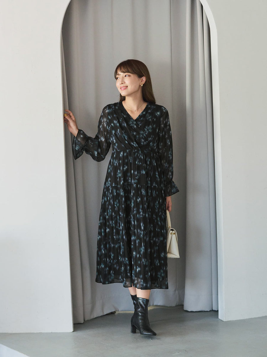 柔らかな花柄とカシュクールで魅せる、1枚で華やぐ上品ワンピース
