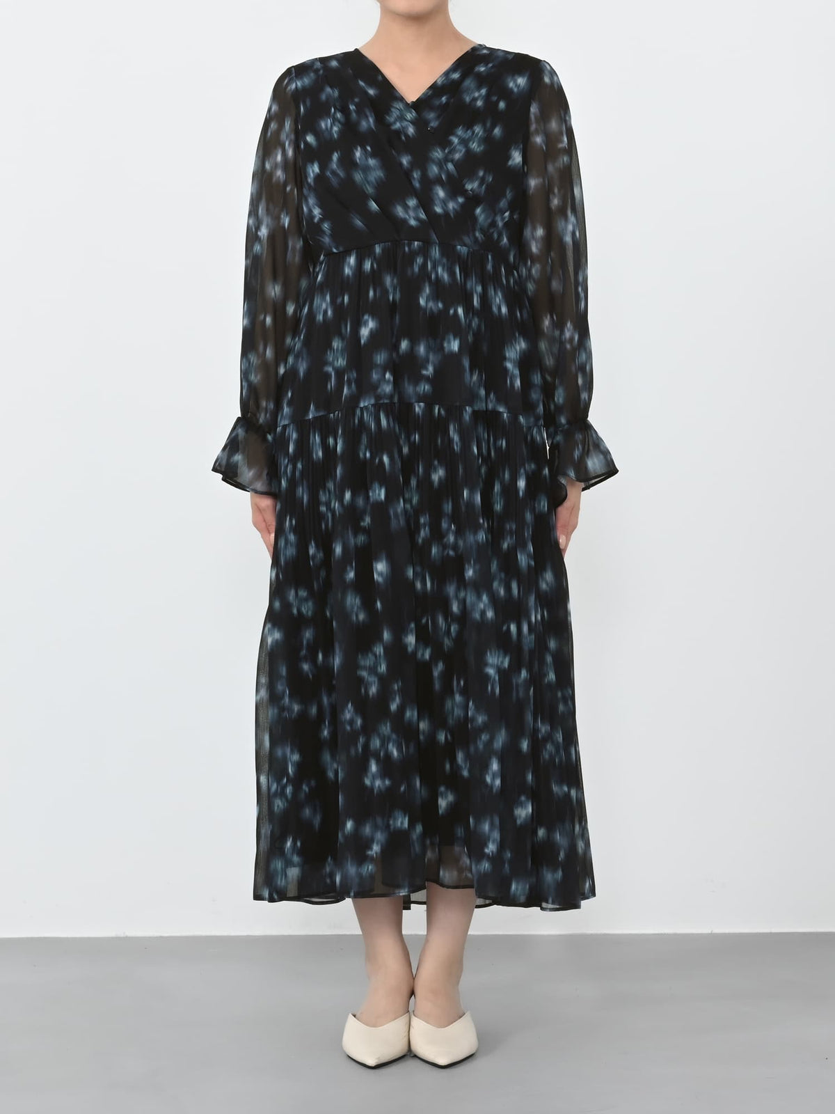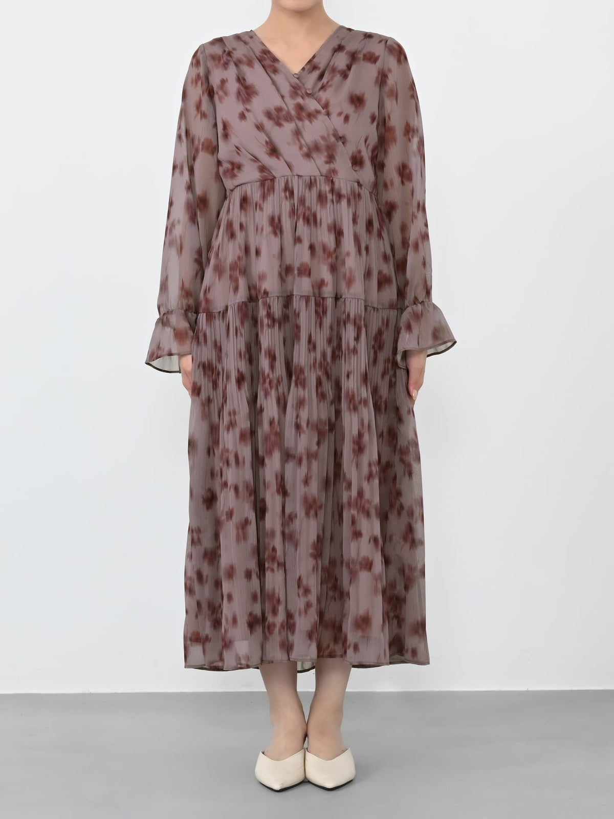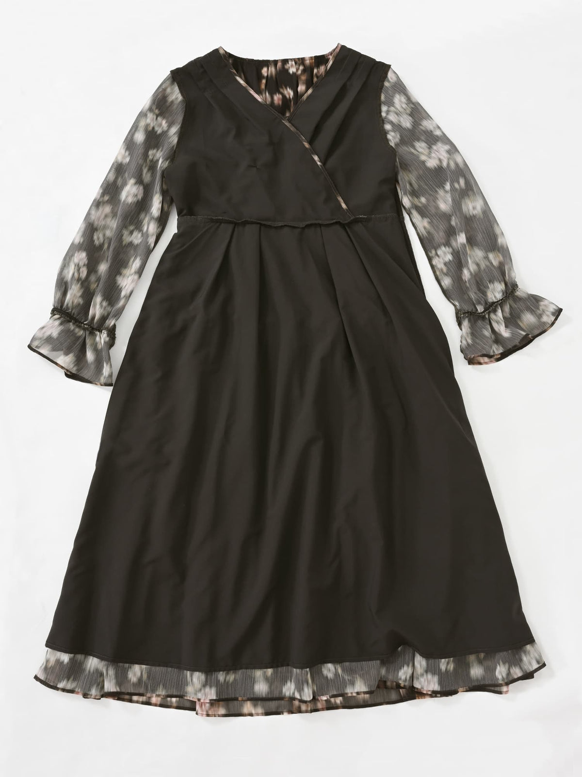 柔らかな花柄とカシュクールで魅せる、1枚で華やぐ上品ワンピース