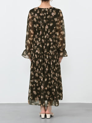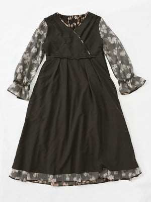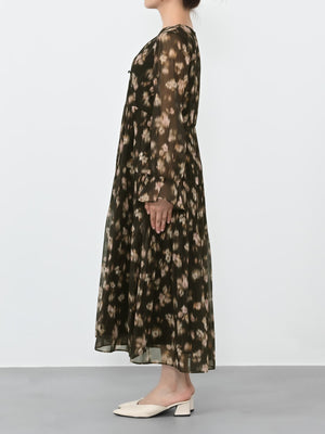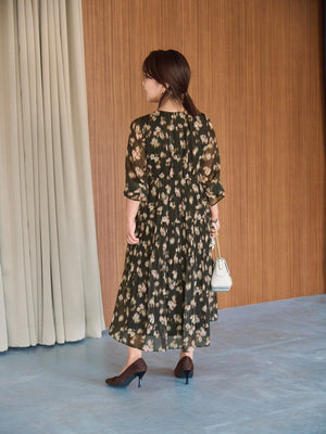 秋らしさ満点のワンピースは軽やかでいてとても華やかです!シャドーになったフラワープリントなので甘すぎることなく大人っぽく着ることができます。