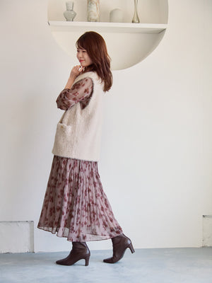 COHINAオリジナルシェードフラワープリントスカート。柔らかなタッチで溶け込むようなフラワーが印象的な柄にしてみました。