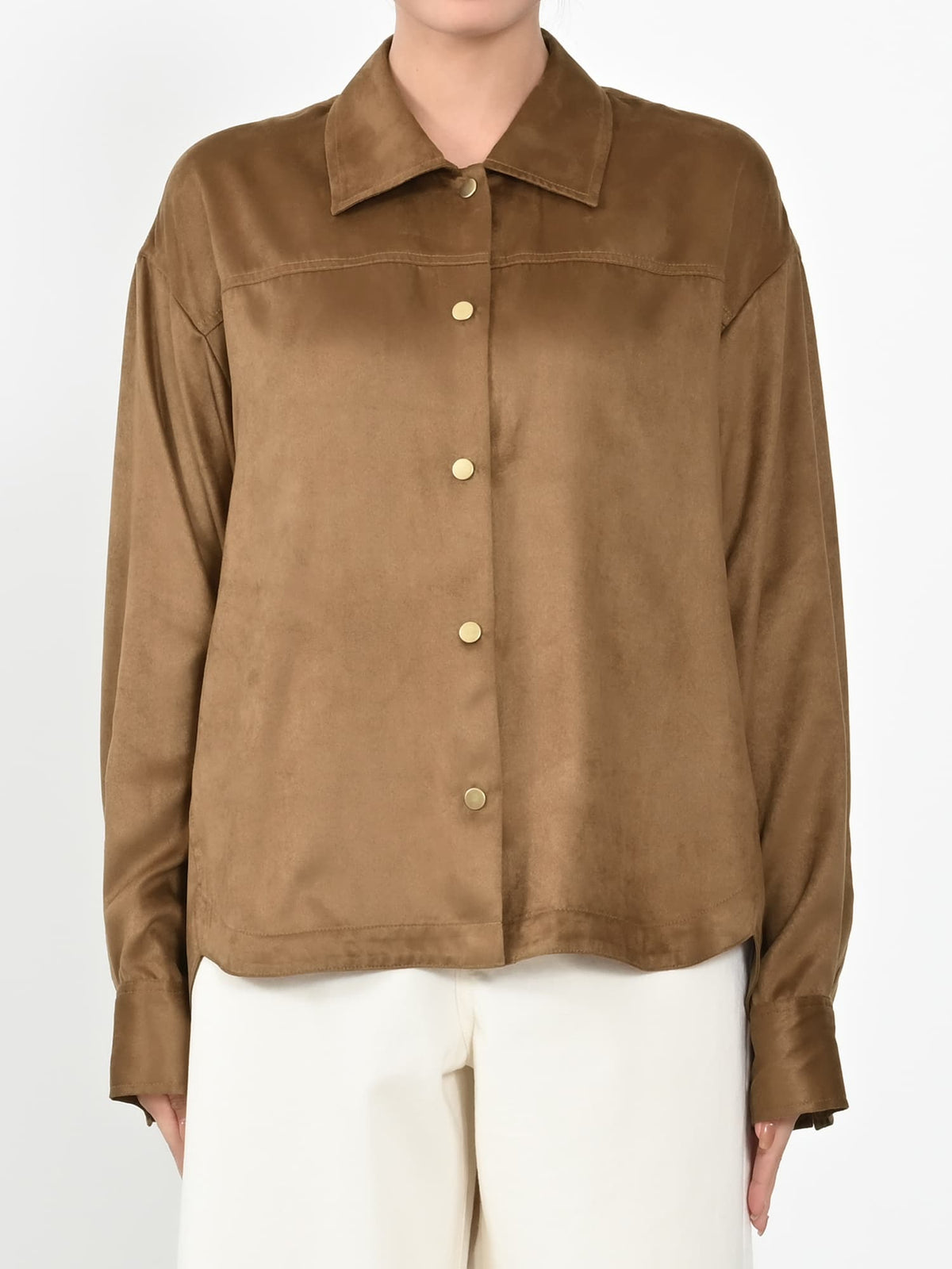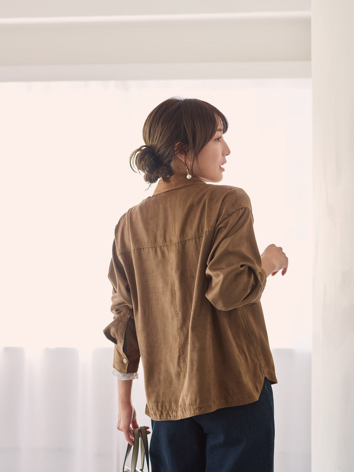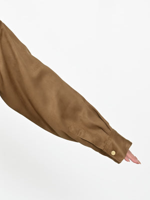 スウェードライク素材でこなれ感アップ♡トレンドのシャツジャケット