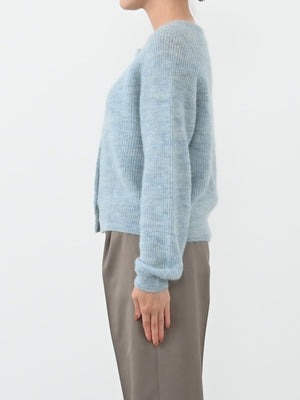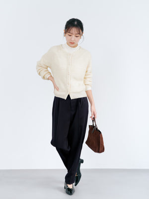 ふんわりヘアリーな風合いと軽やかな着心地が魅力のカーディガン。