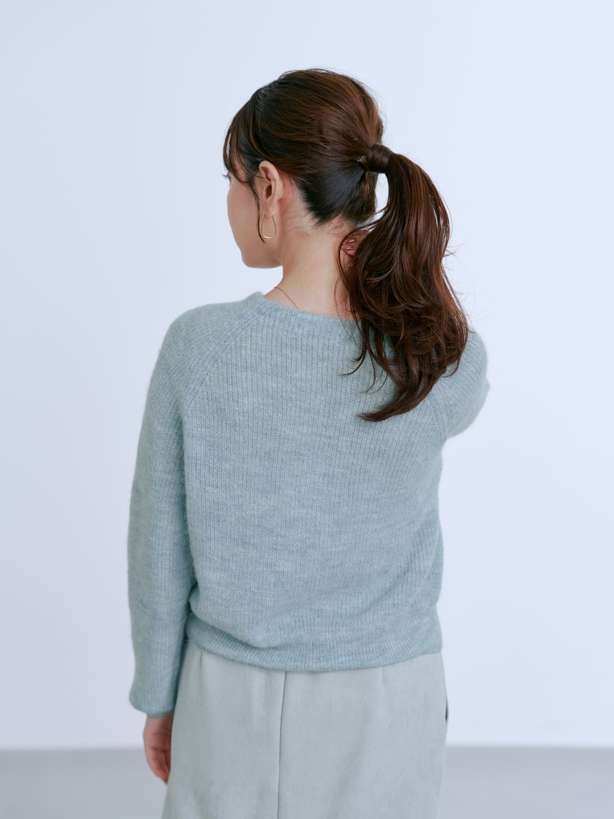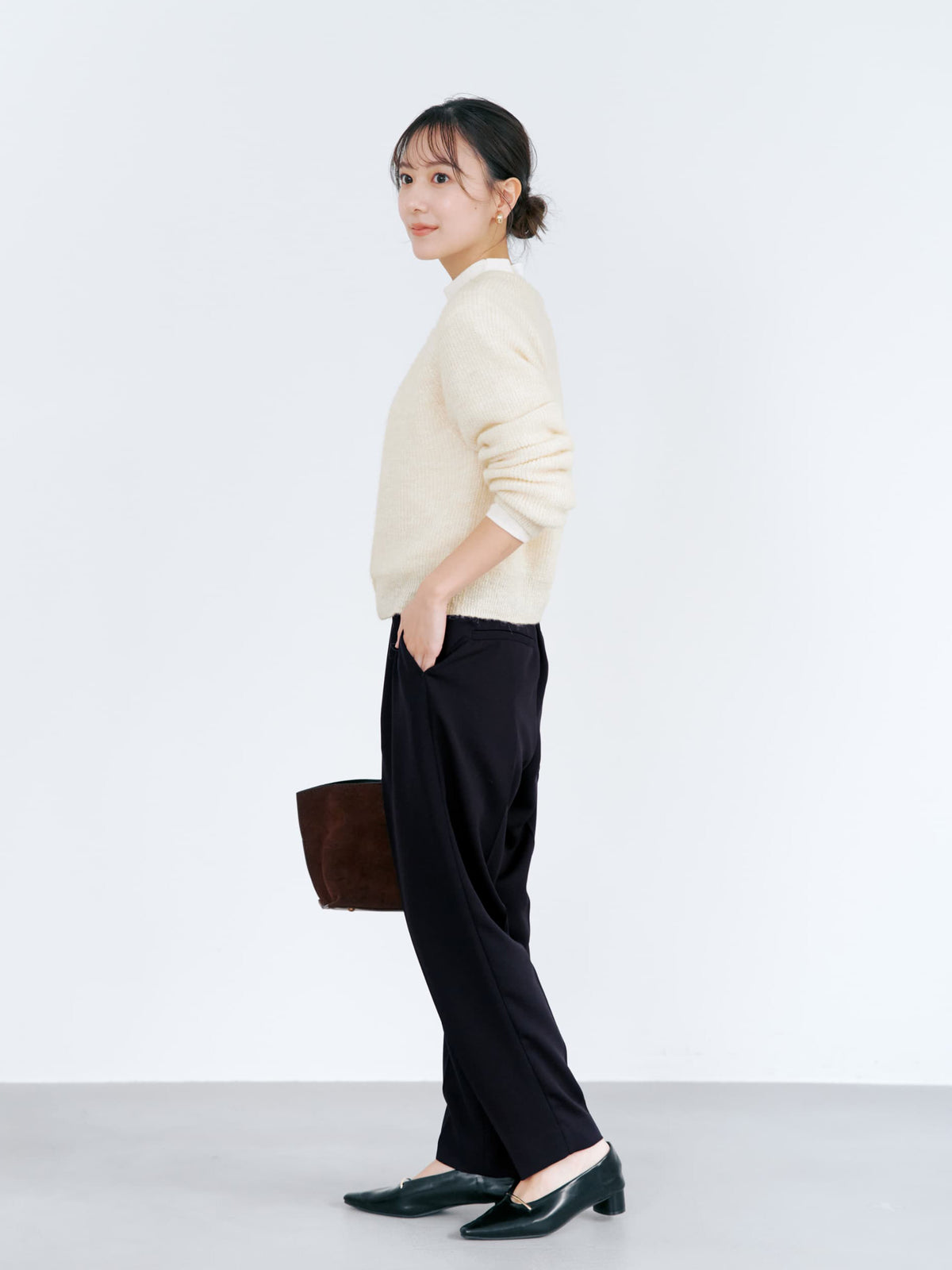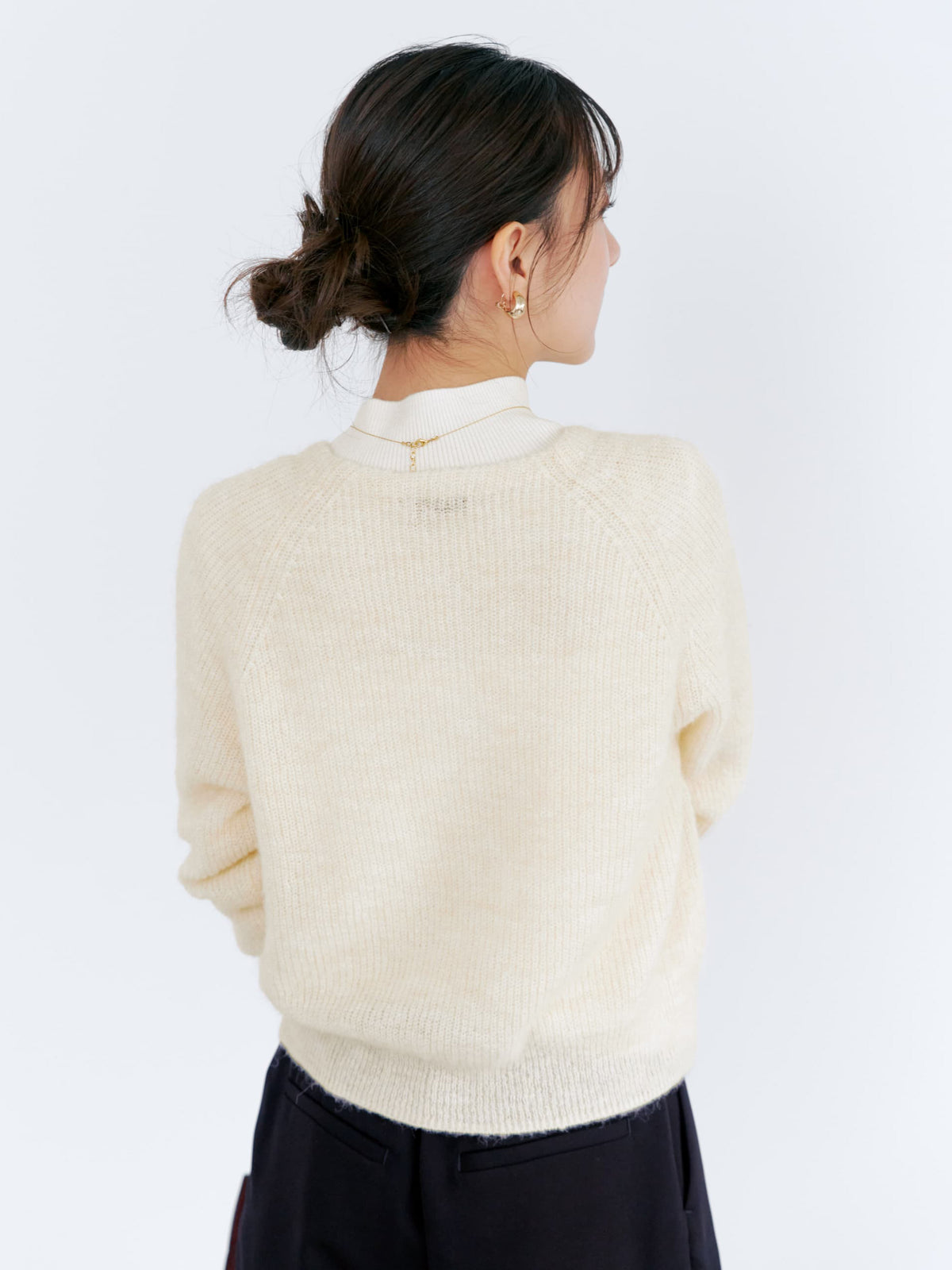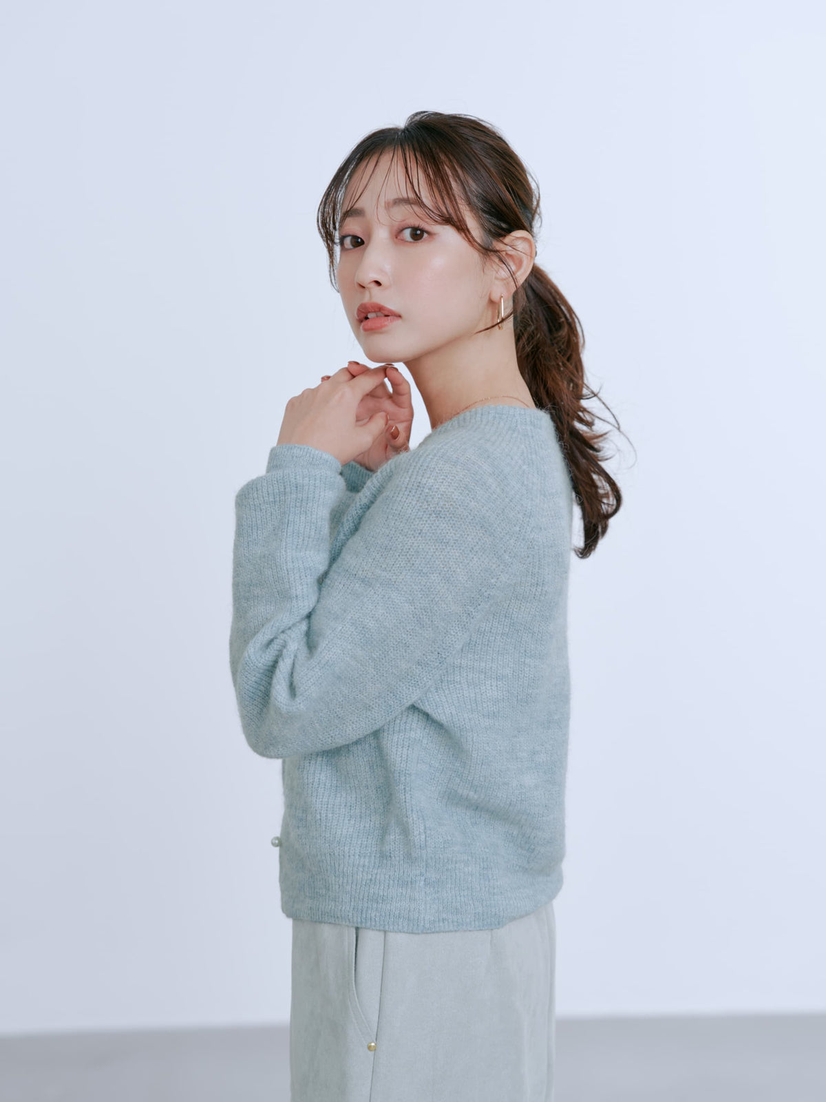 ヘアリーな風合いとほんのりシアーな素材感がトレンドライク。軽やかな着心地と暖かさを兼ね備えています。