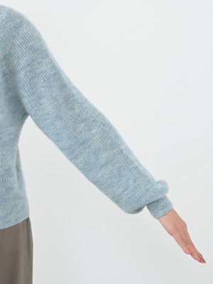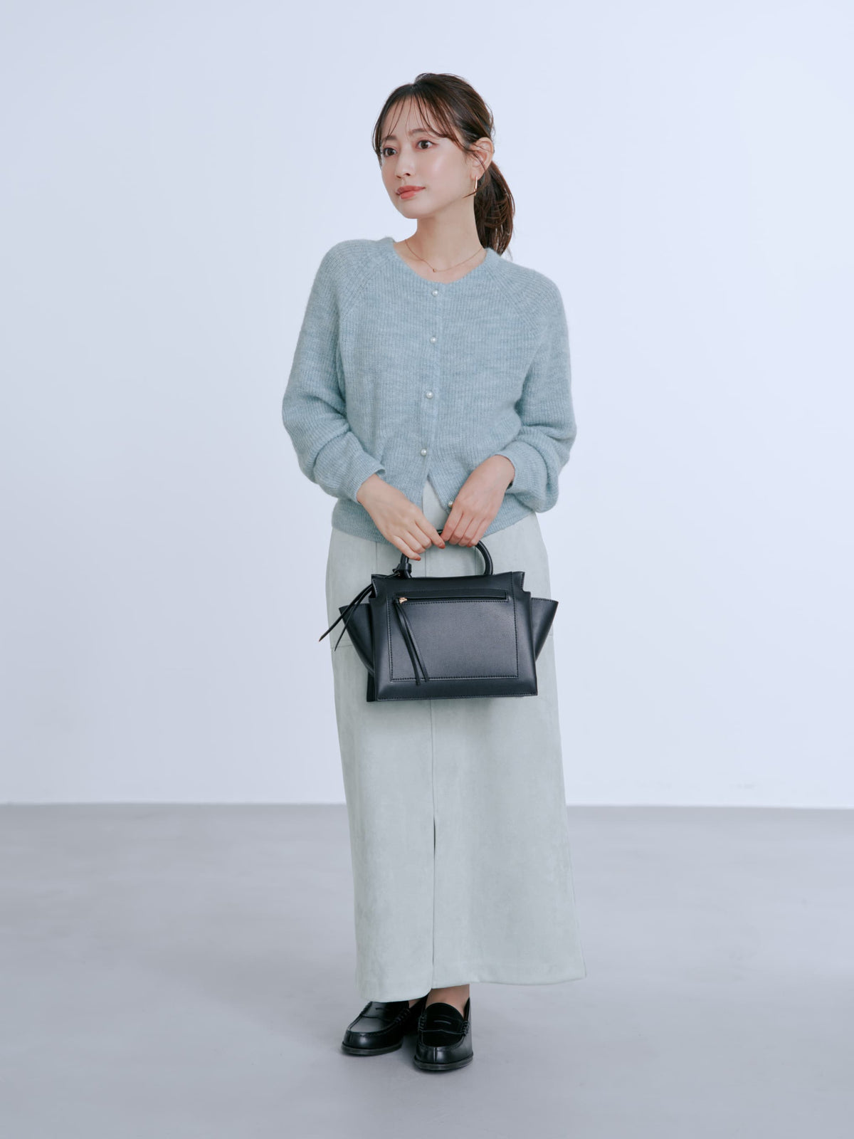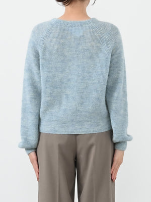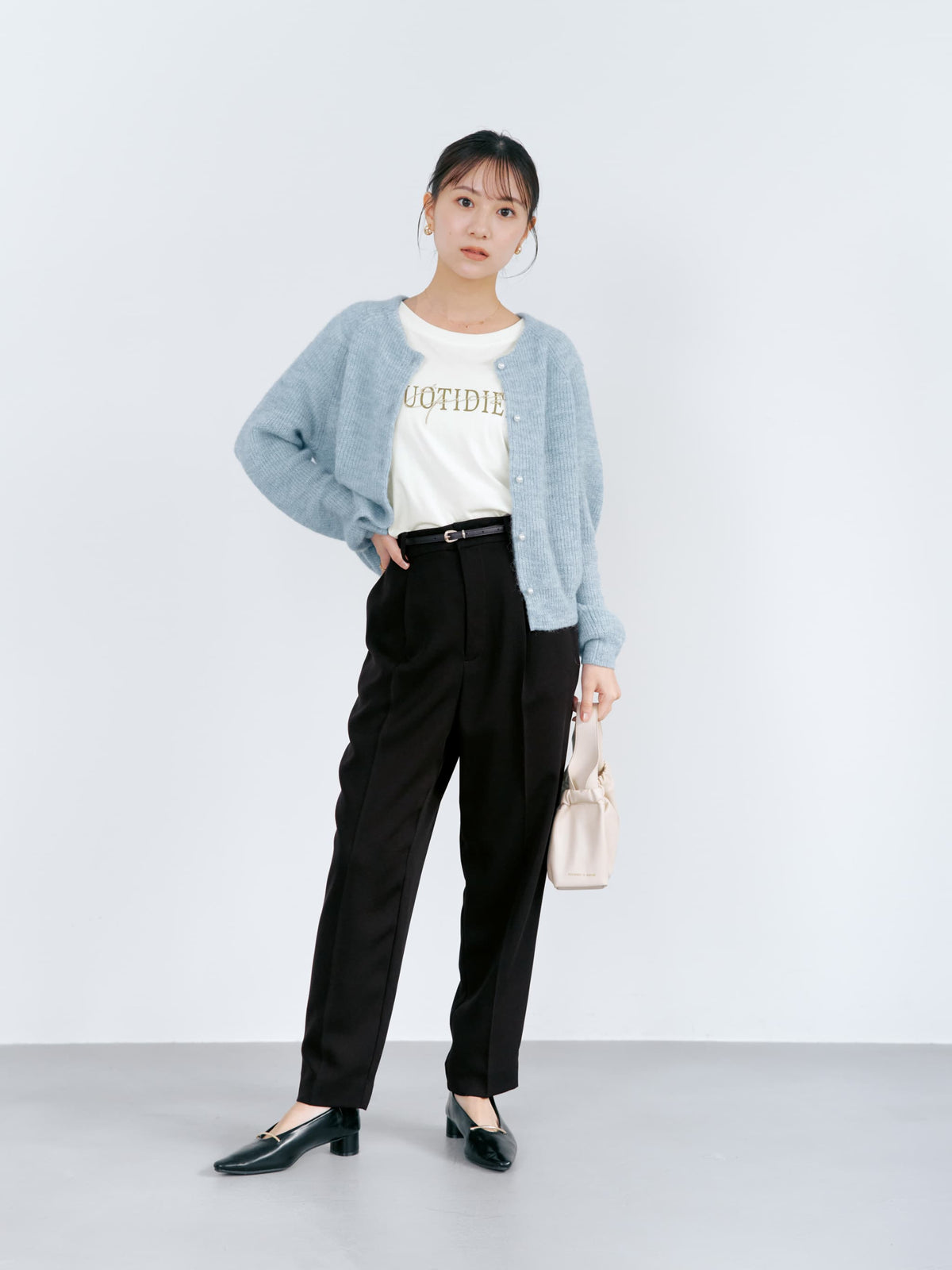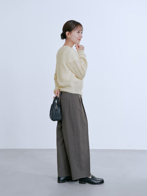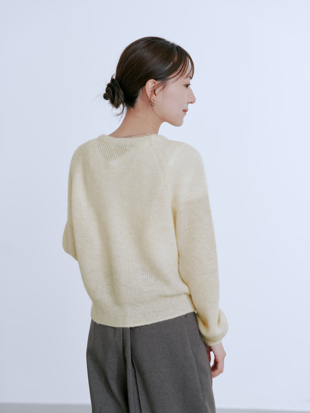 ヘアリーな風合いとほんのりシアーな素材感がトレンドライク。軽やかな着心地と暖かさを兼ね備えています。