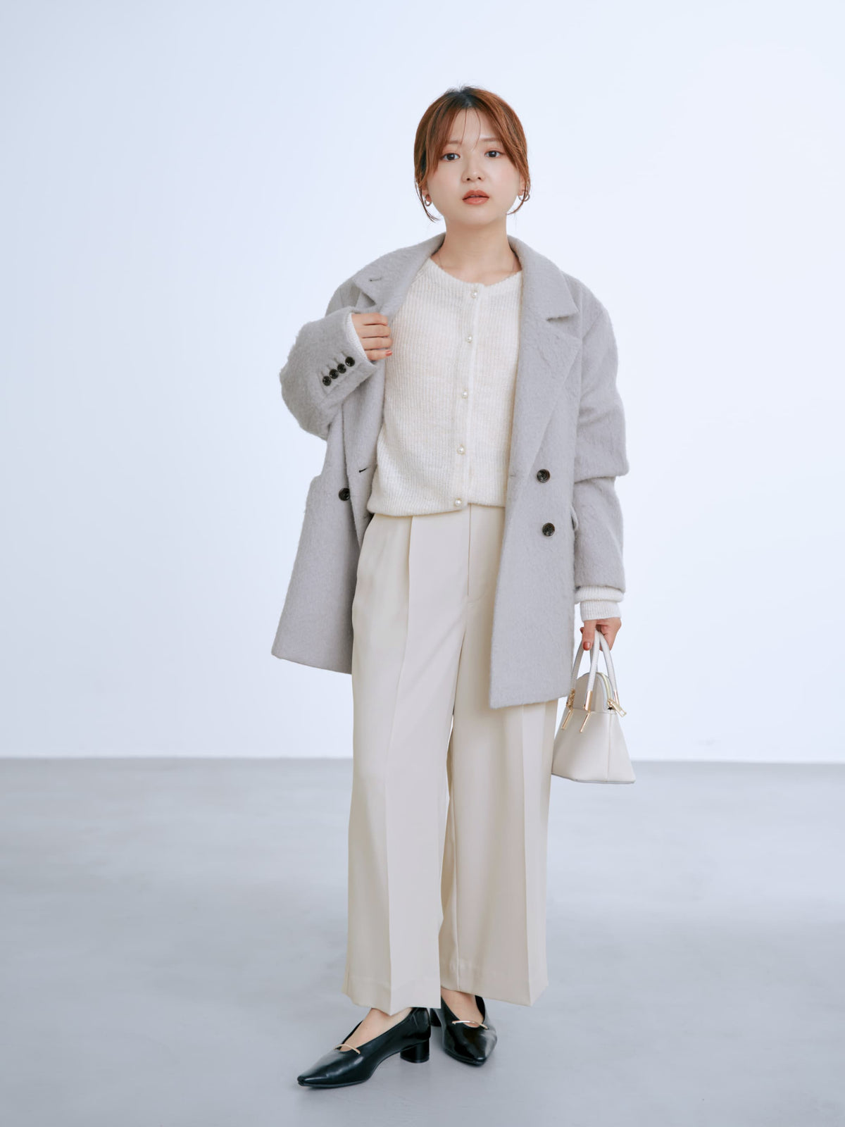 骨盤あたりの丈感なので、しっかりと暖かくゆったり着られるのも嬉しいポイントです!綺麗めパンツを合わせれば上品な、デニムを合わせれば綺麗めカジュアルコーデがあっという間に完成します!