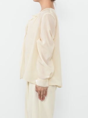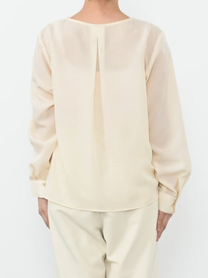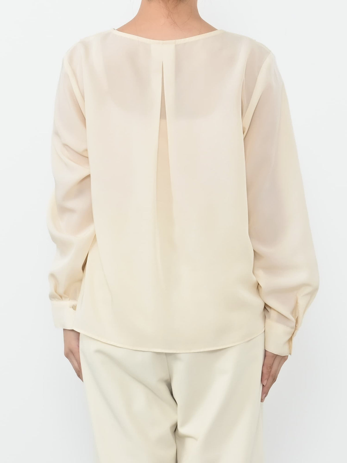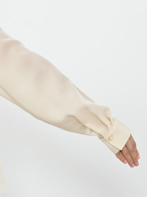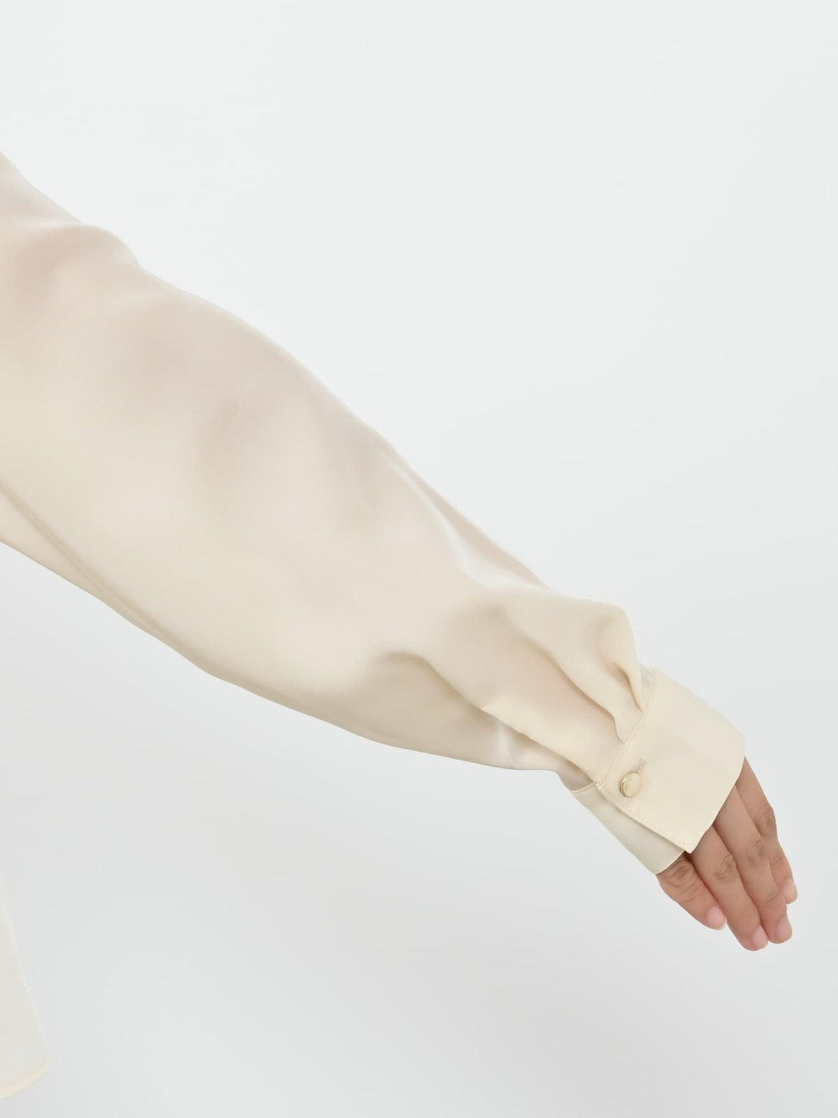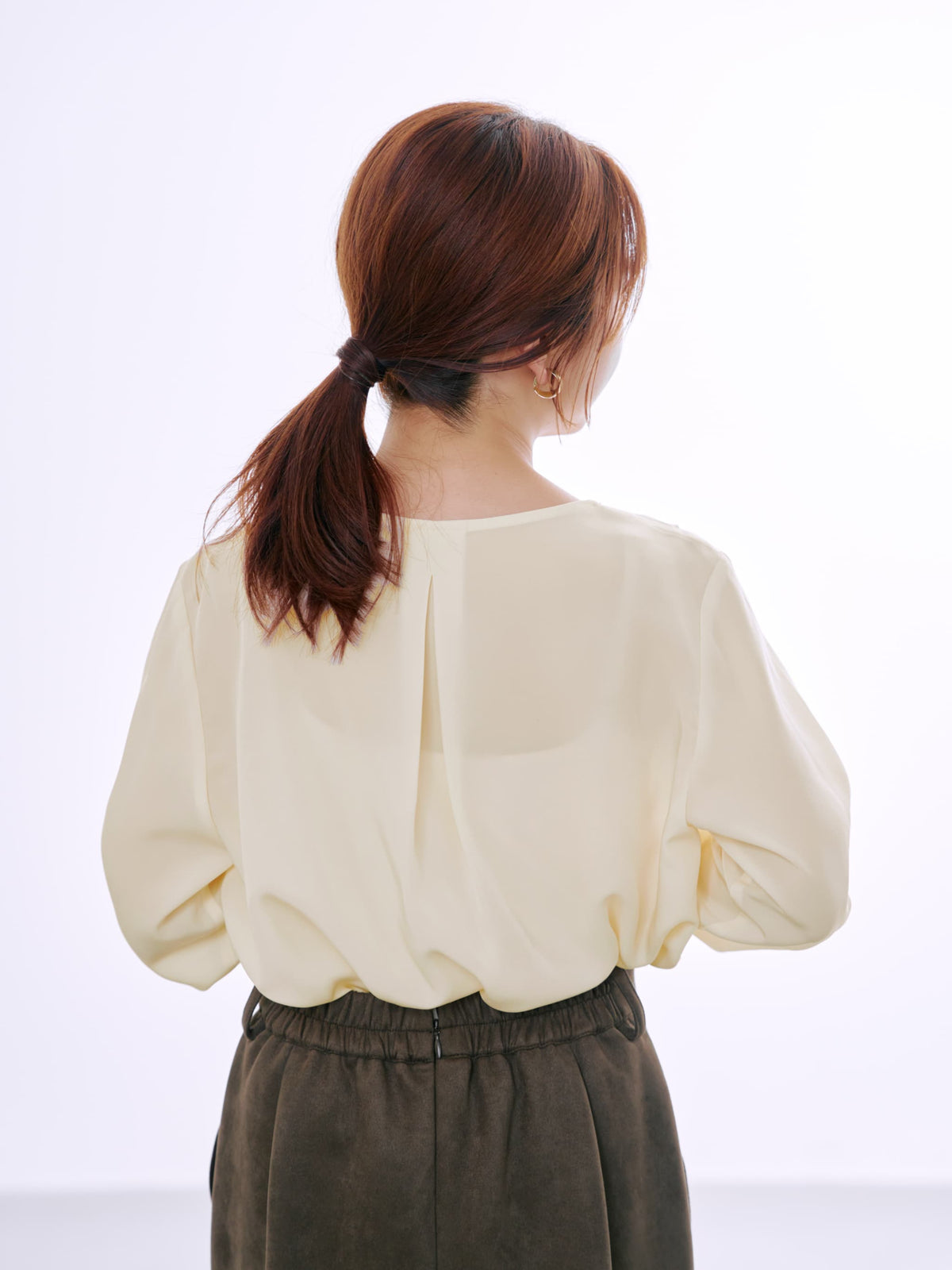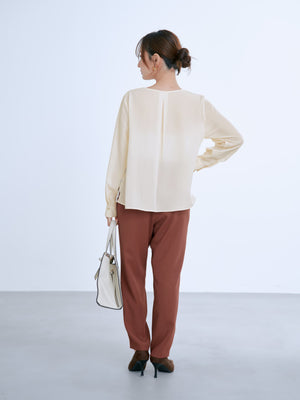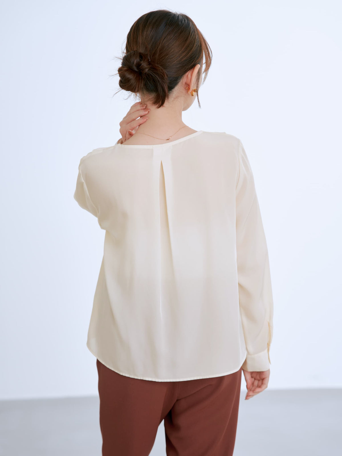 1枚で幅広いスタイリングが楽しめる万能ブラウスです。合わせる小物を変えるだけでオンオフどちらのスタイルにも活躍します。