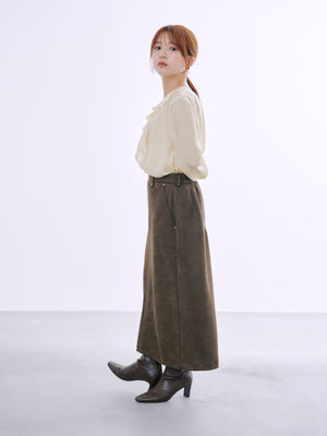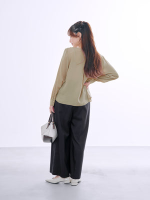 ほんのり光沢のあるとろみ素材を使用。柔らかく揺れる落ち感素材が女性らしいしなやかさを演出。 広がりすぎず、シルエットをきれいにキープ。