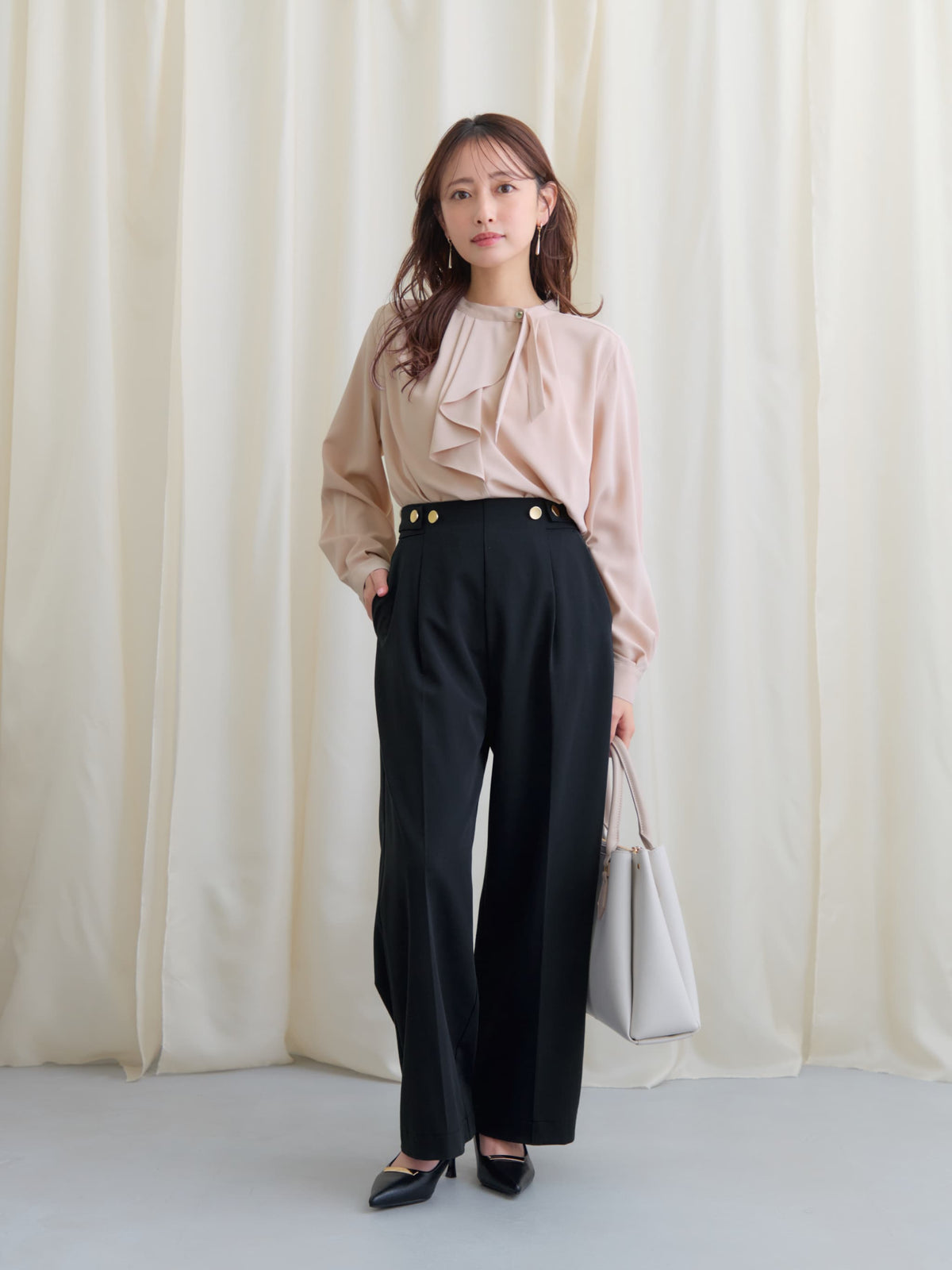 タックインで、ウエストのデザインをポイントにしたスタイリングがおすすめ◎