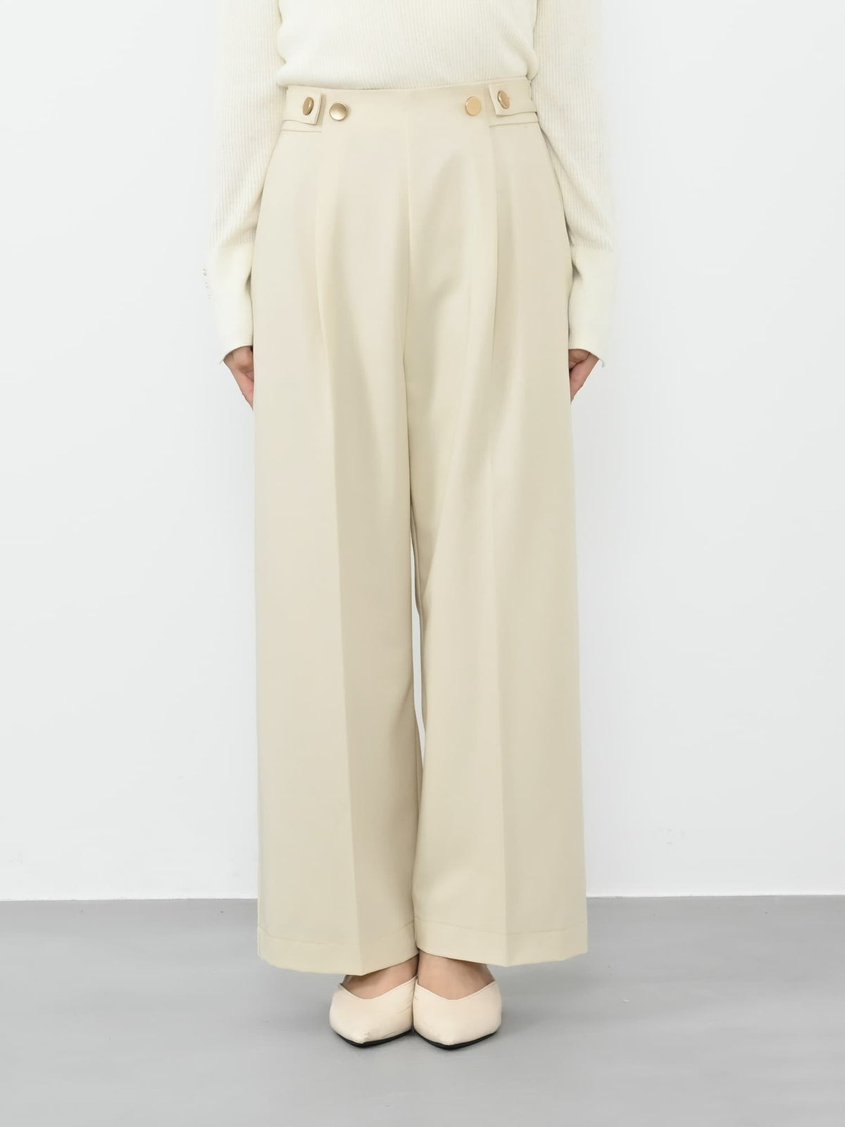 ゴールドボタンが華やかに♡毎日履きたい美脚見えマリンパンツ