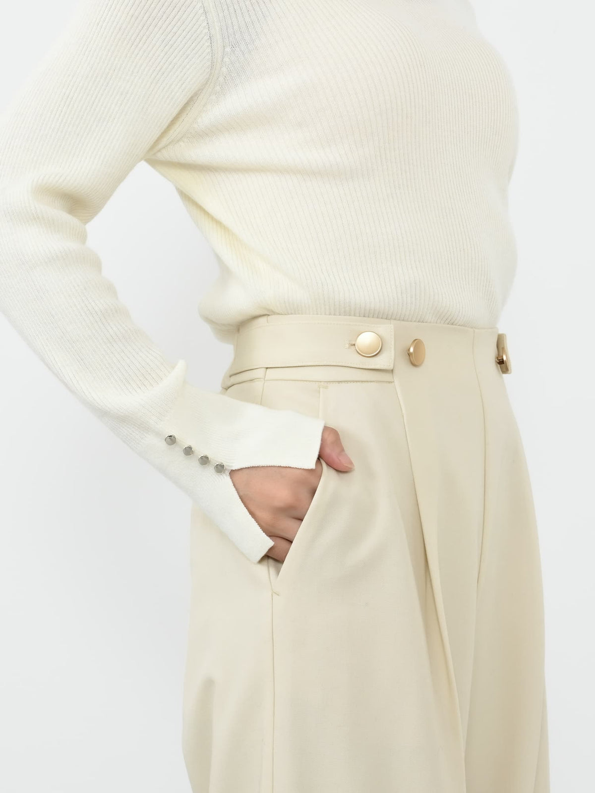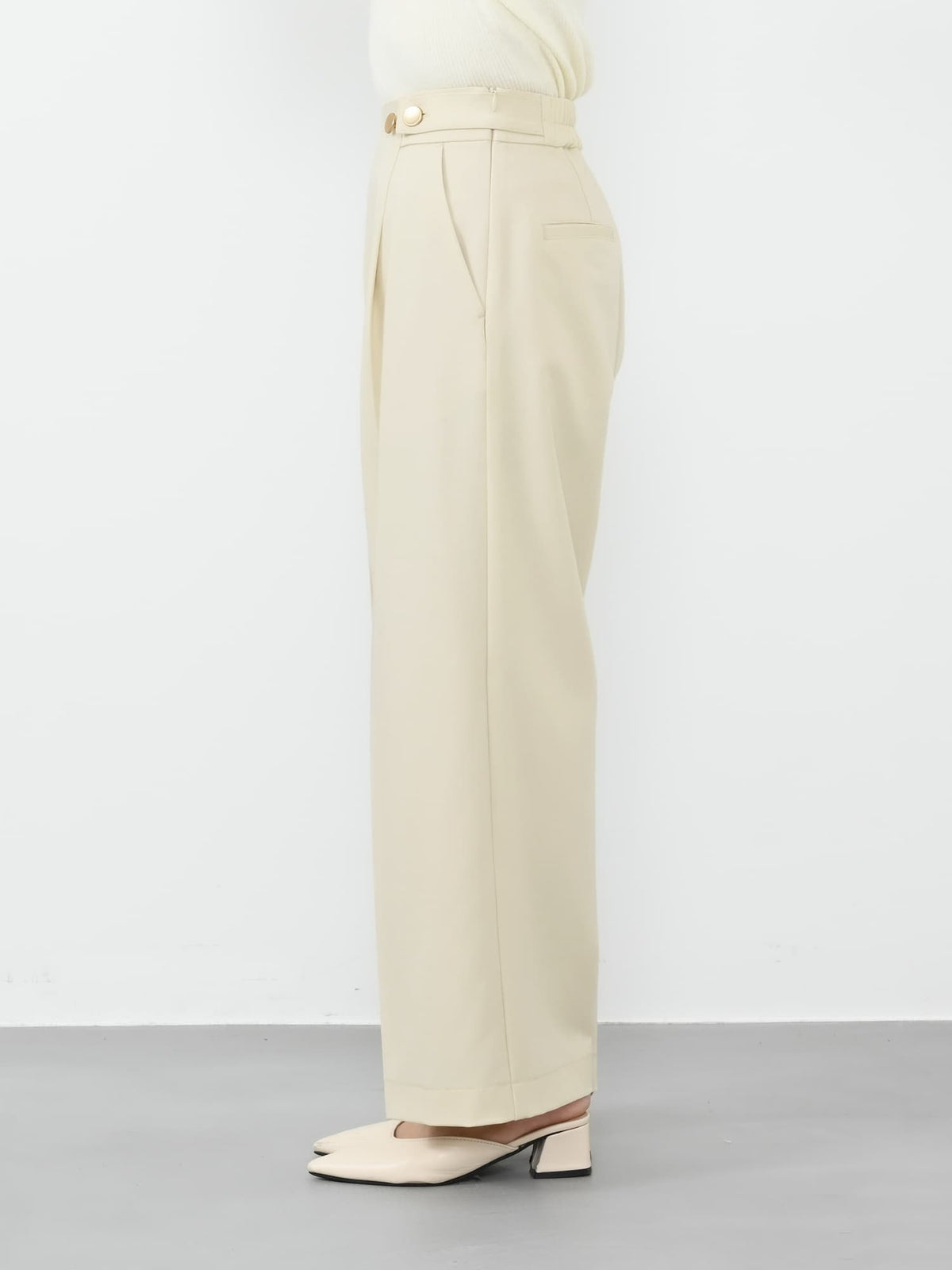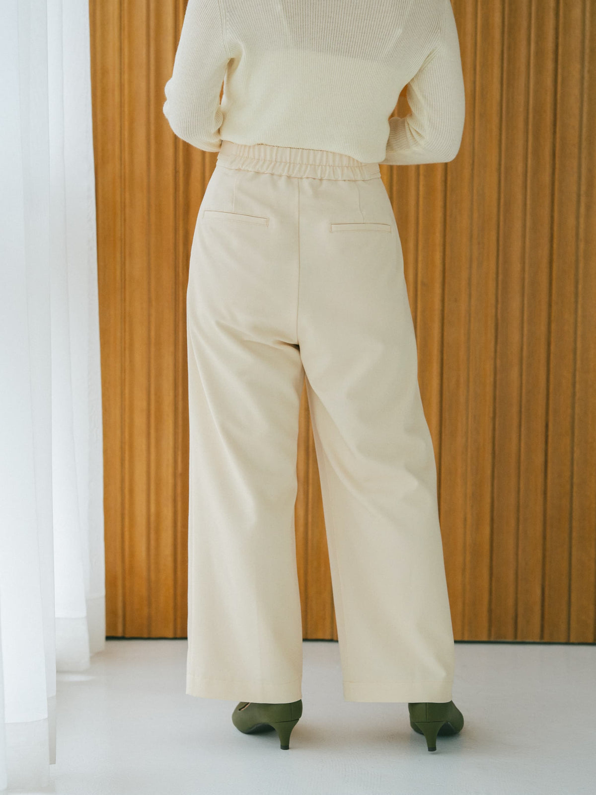 ※こちらが実物のカラーに一番お色味が近くなっております。(アイボリー)<br>143cm | B:73 W:60 H:81 股下:65  | short-XS着用(ヒールの高さ: 3.5cm)