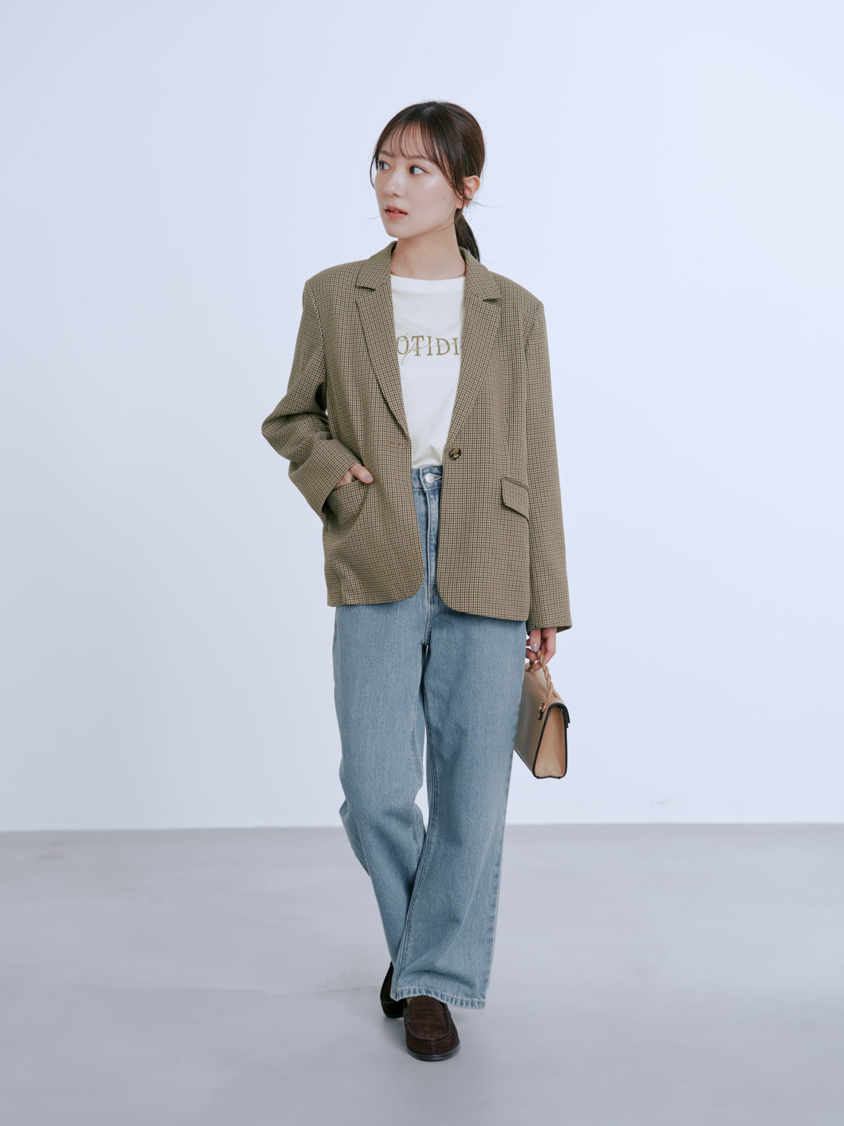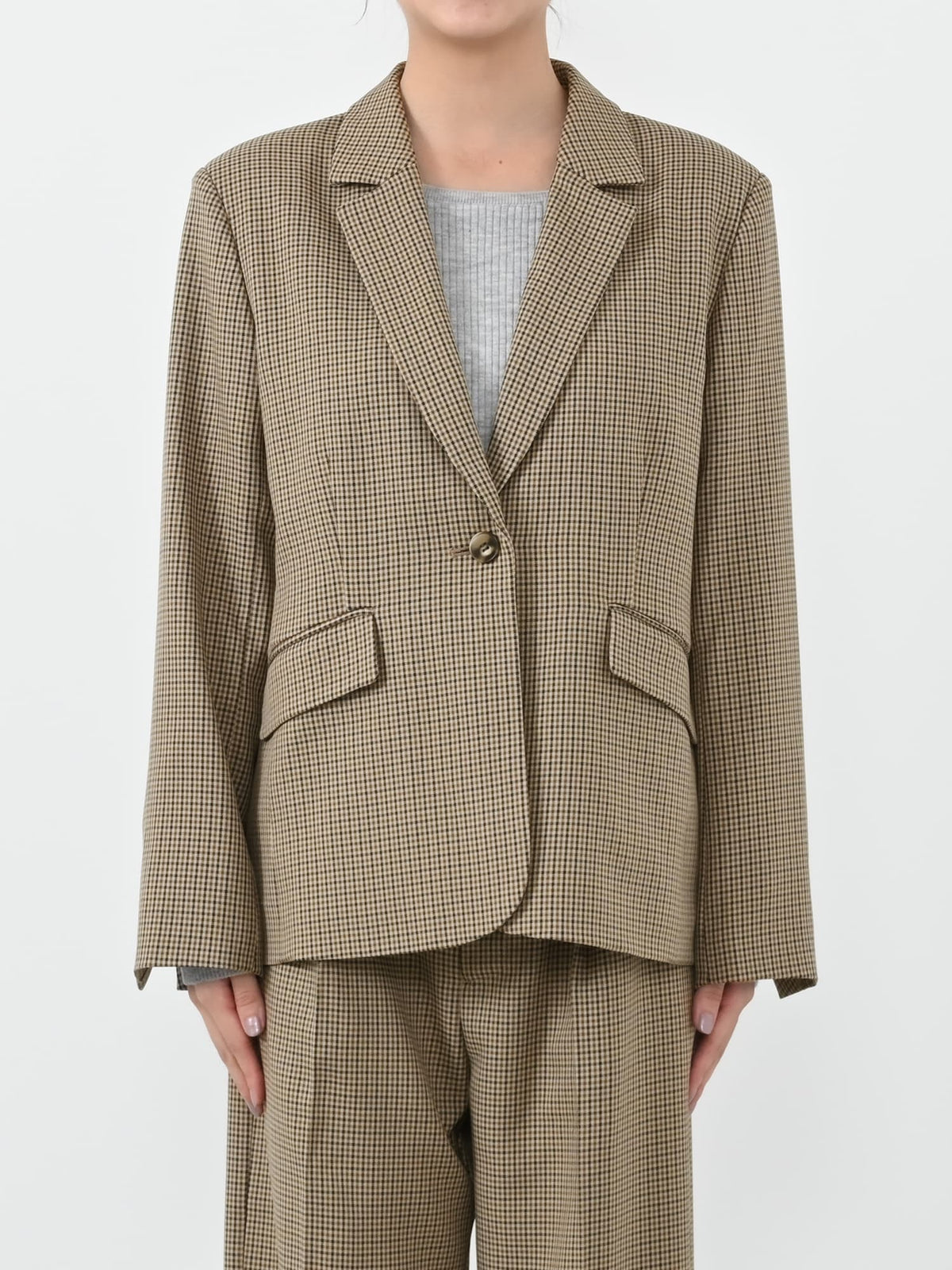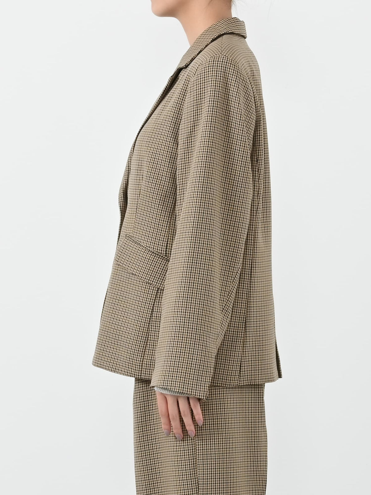 こなれた印象のサイズ感で大きすぎずコンパクトすぎない絶妙な設計、シングルブレストのデザインでベーシックアイテムながら旬をもたらしてくれます。