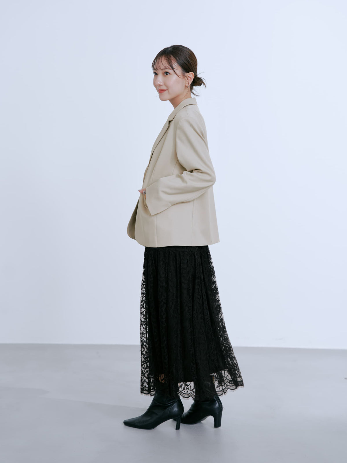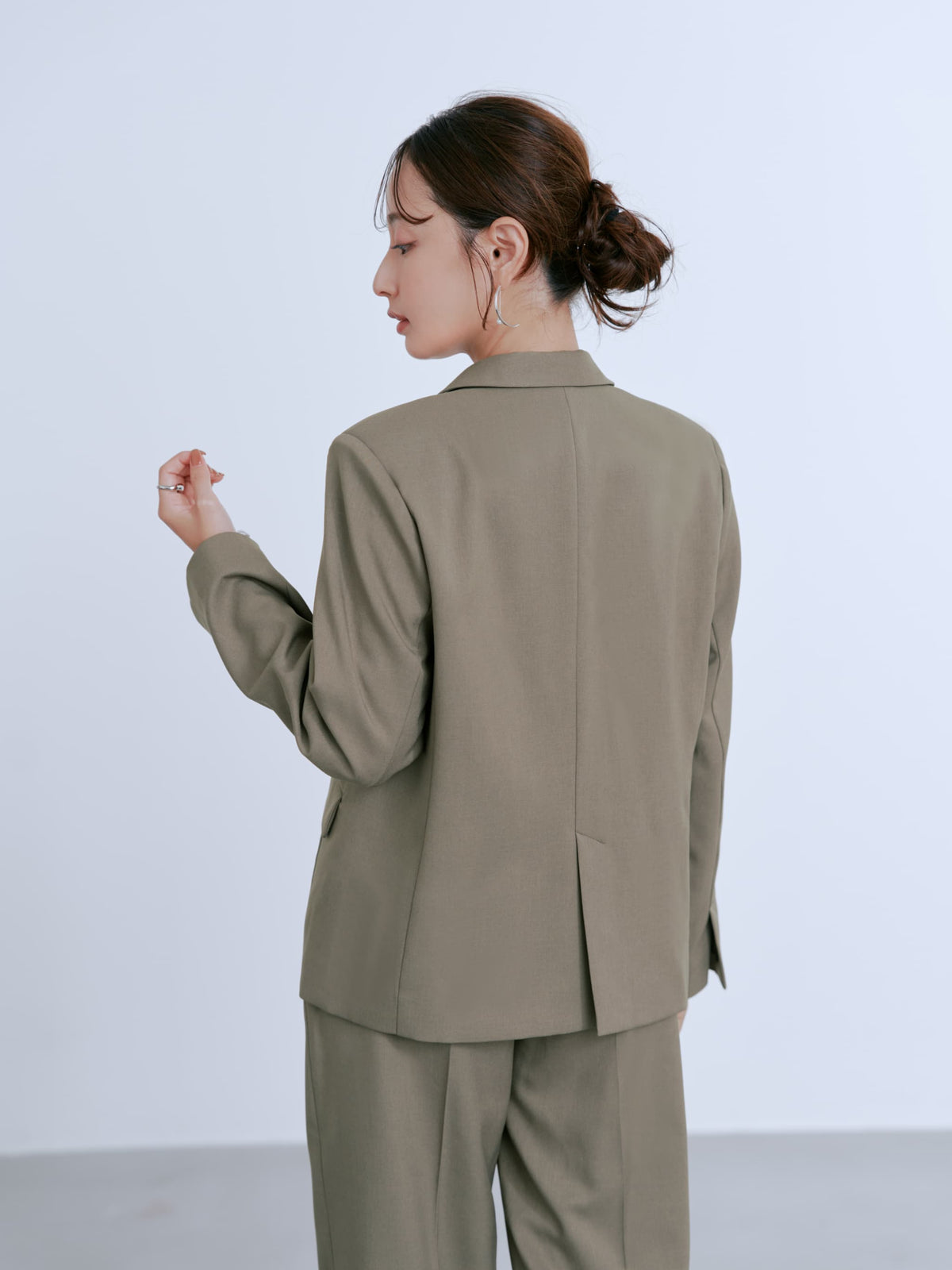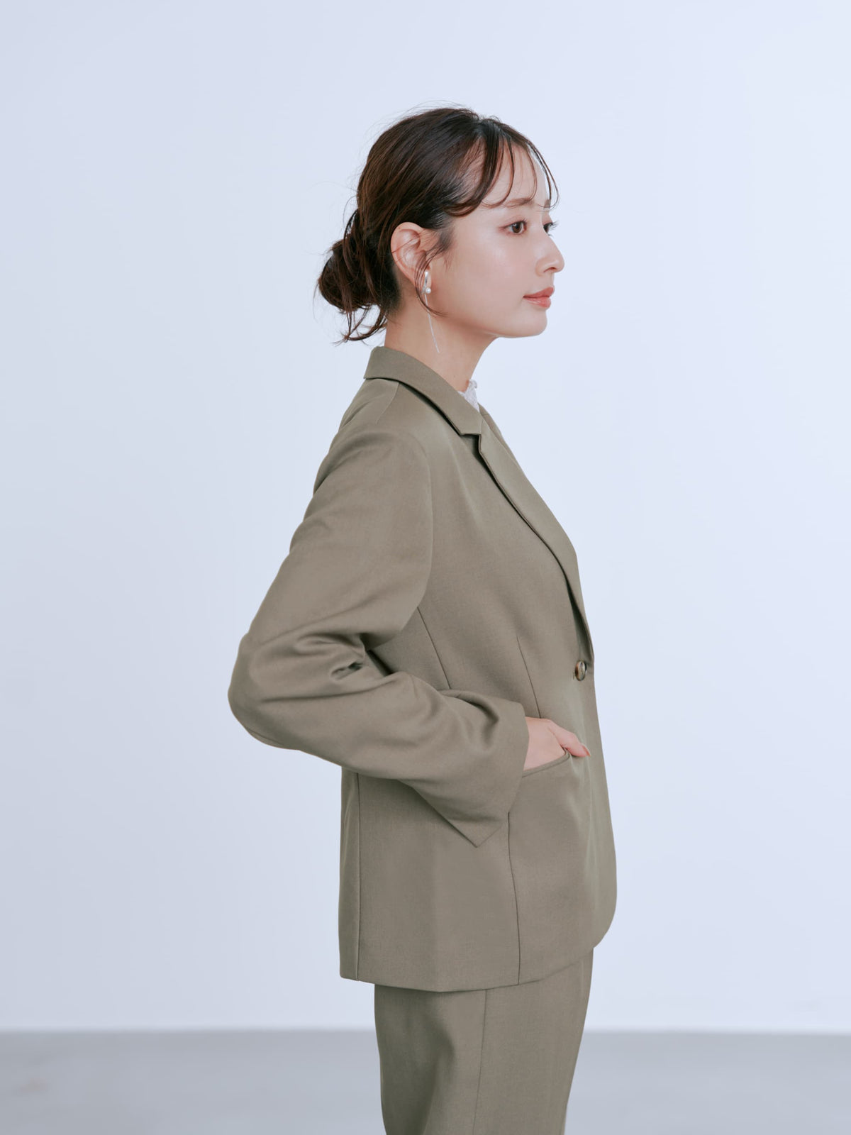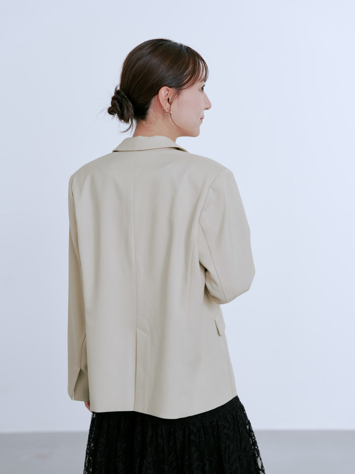 お仕事のシーン、綺麗めカジュアルのシーンの両方で楽しんでいただけるようなサイジングでお作りしています。程よいゆとりで、肌寒い日の重ね着アイテムとしてもおすすめです。