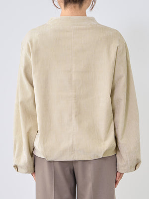 軽やかな着心地ながらも程よいボリューム感でシルエットを見せてくれます。首元をしっかりと包み込むボトルネックカラー仕様で、寒い季節もぬくもりをキープ。前を開けたスタイルは大きめなカラー見えで、また違った印象をお楽しみいただけます。
