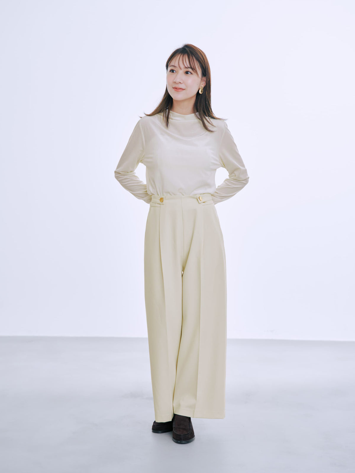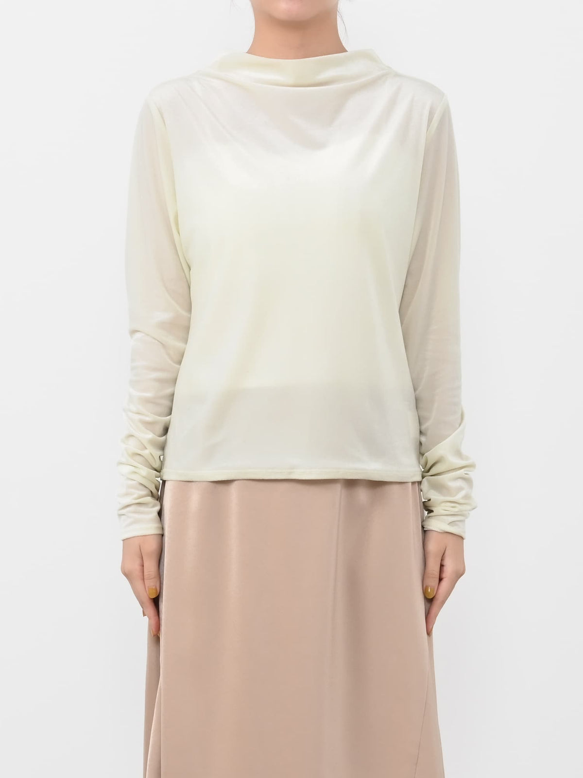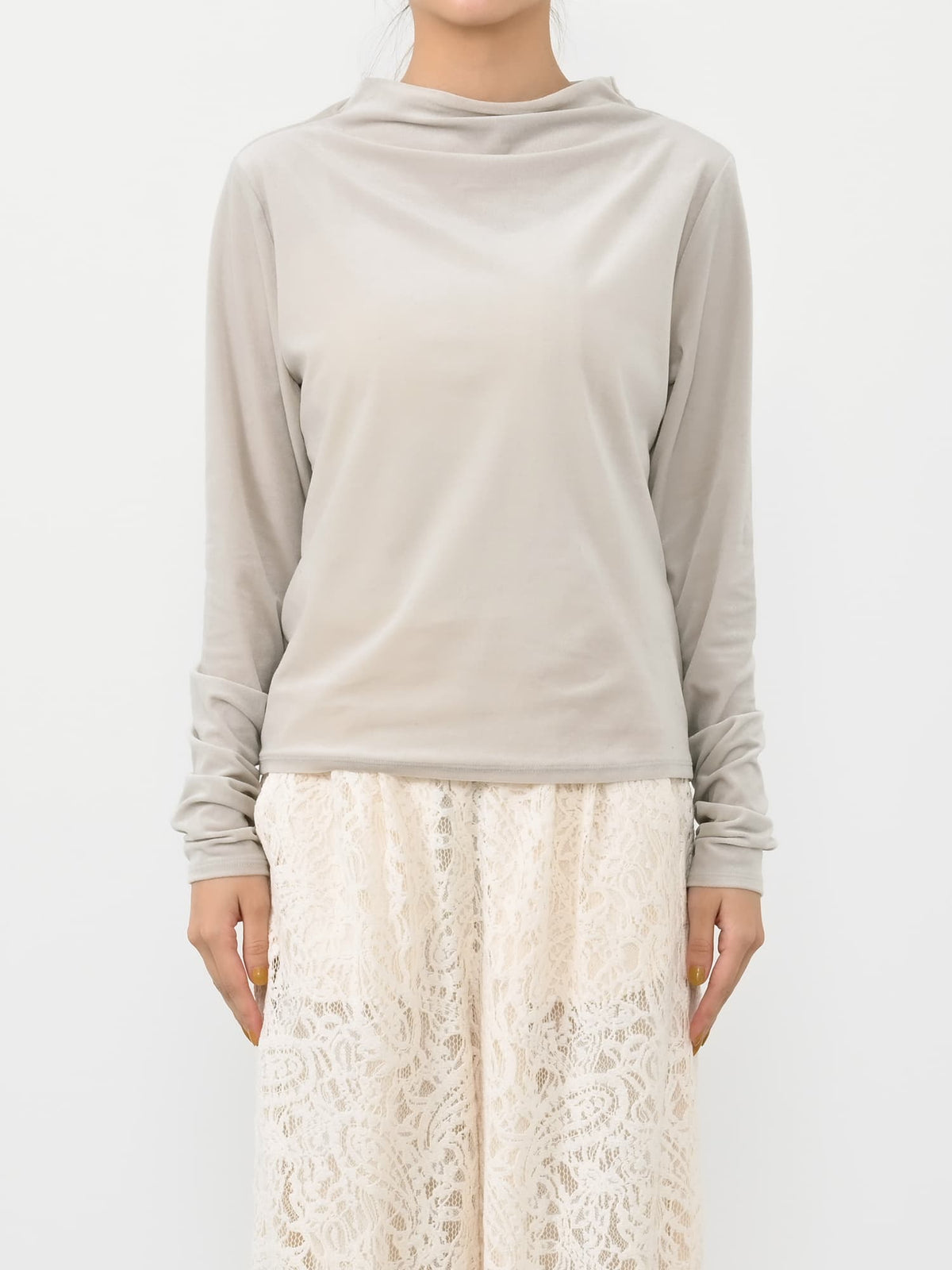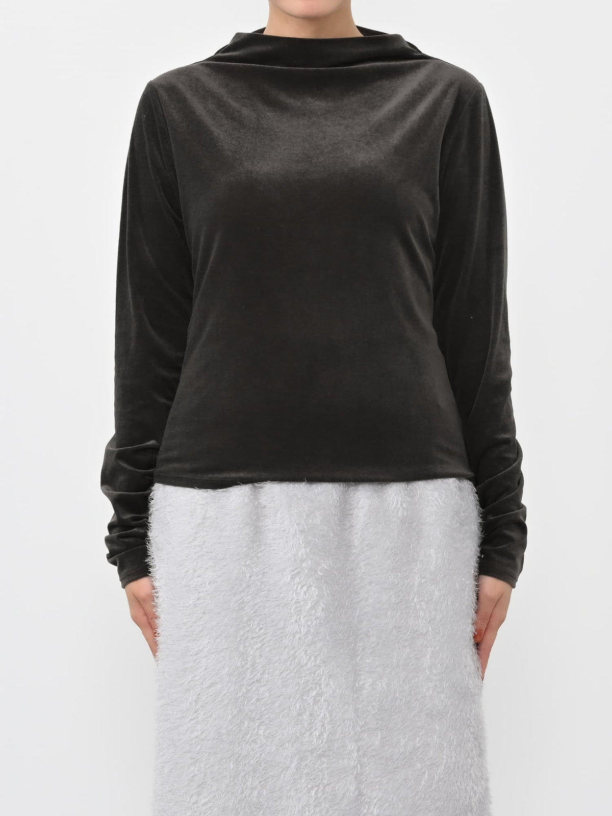 秋冬のムードを高めてくれるシアーベロア素材のハイネックトップス。