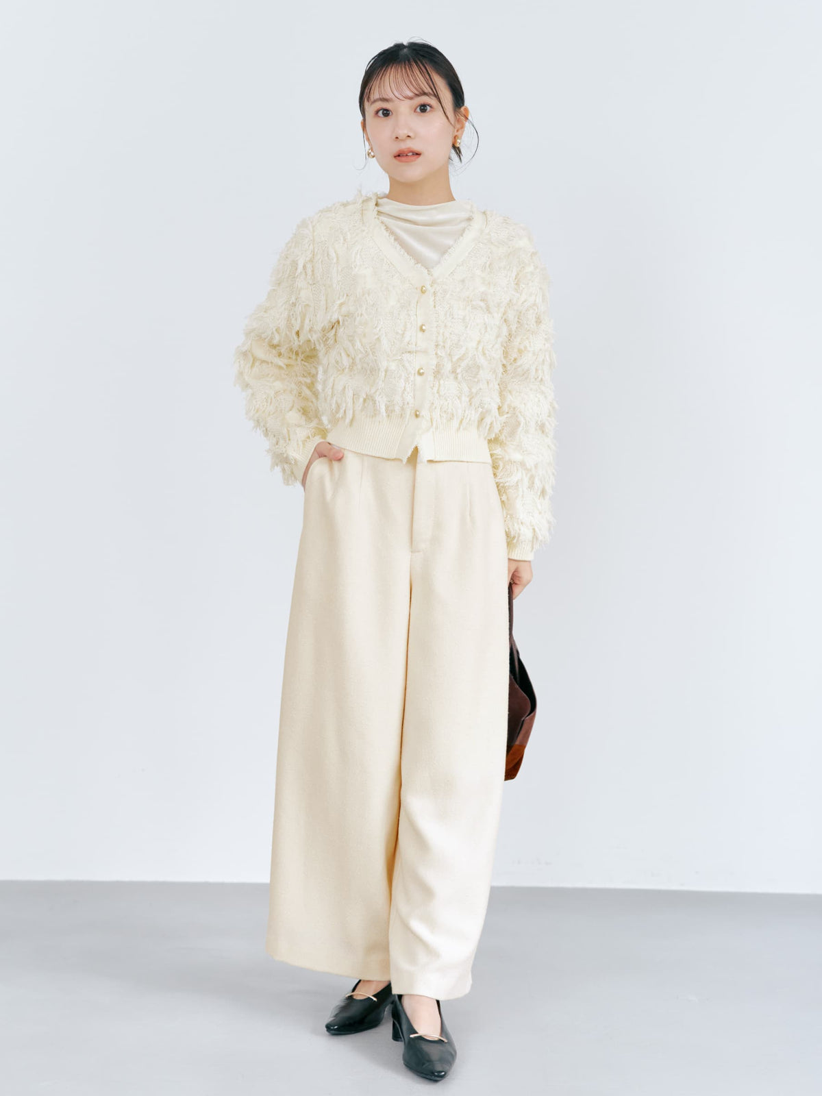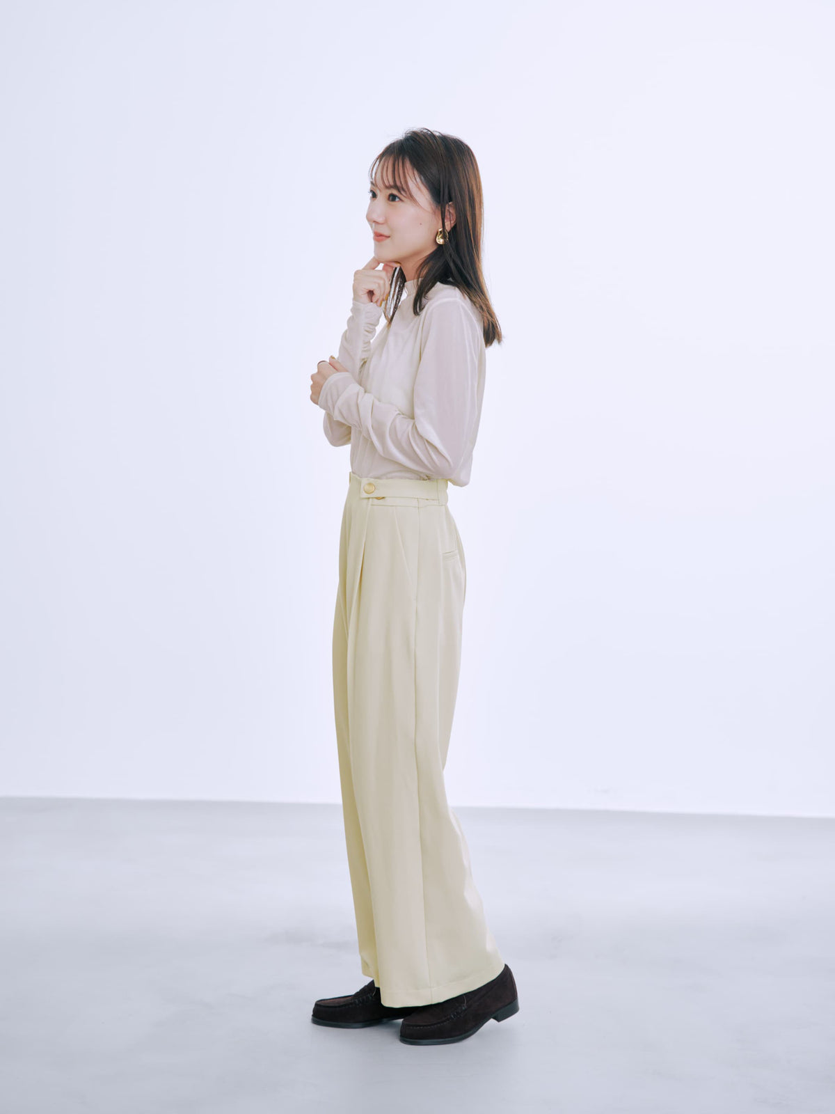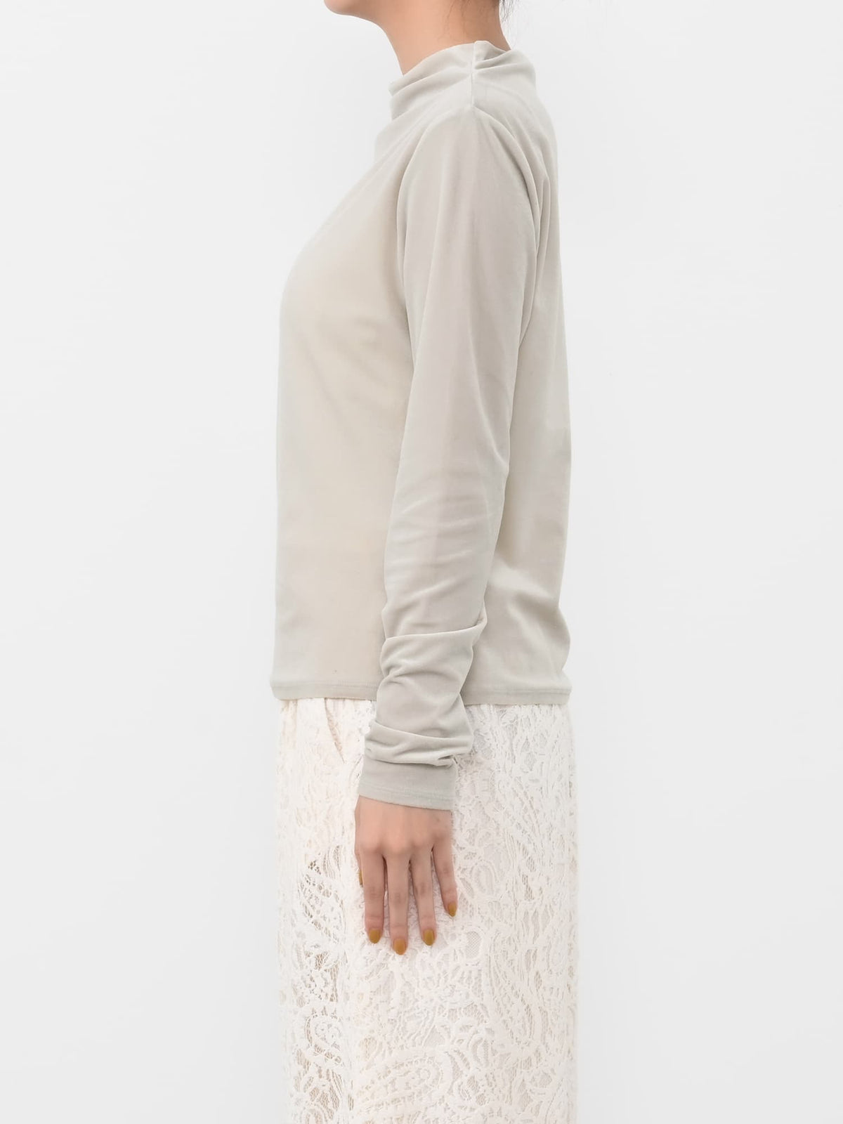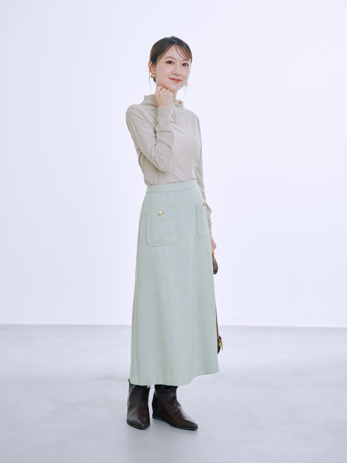 秋冬のムードを高めてくれるシアーベロア素材のハイネックトップス。