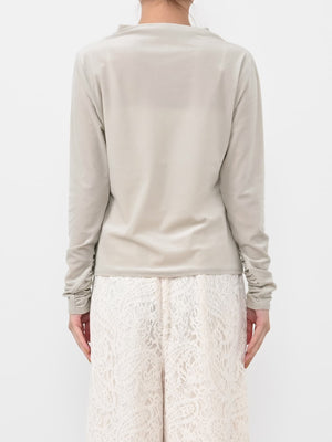 締め付け感が少なく高さやバランスにこだわった適度なハイネックが、暖かく快適な着心地。袖に施したギャザーデザインがアクセントになり、華やかさとニュアンスのある手元を演出してくれます。