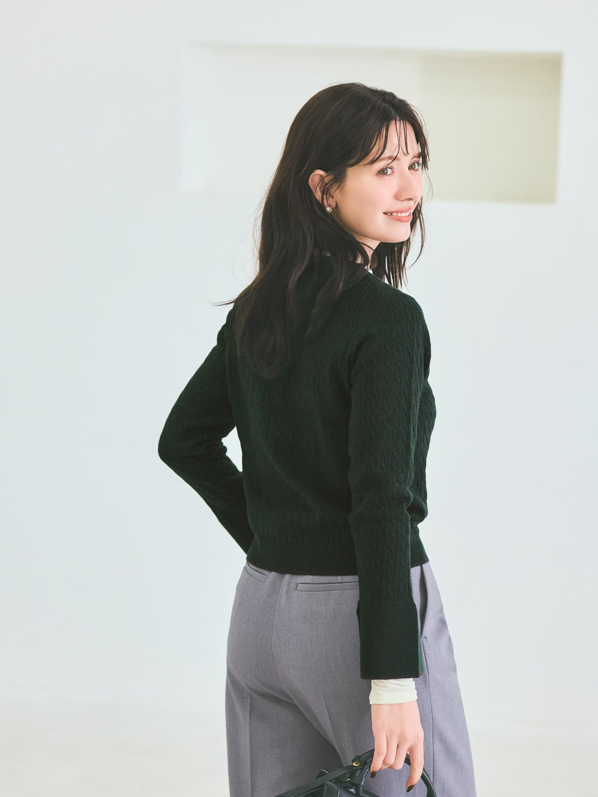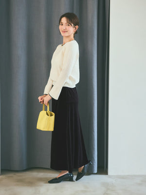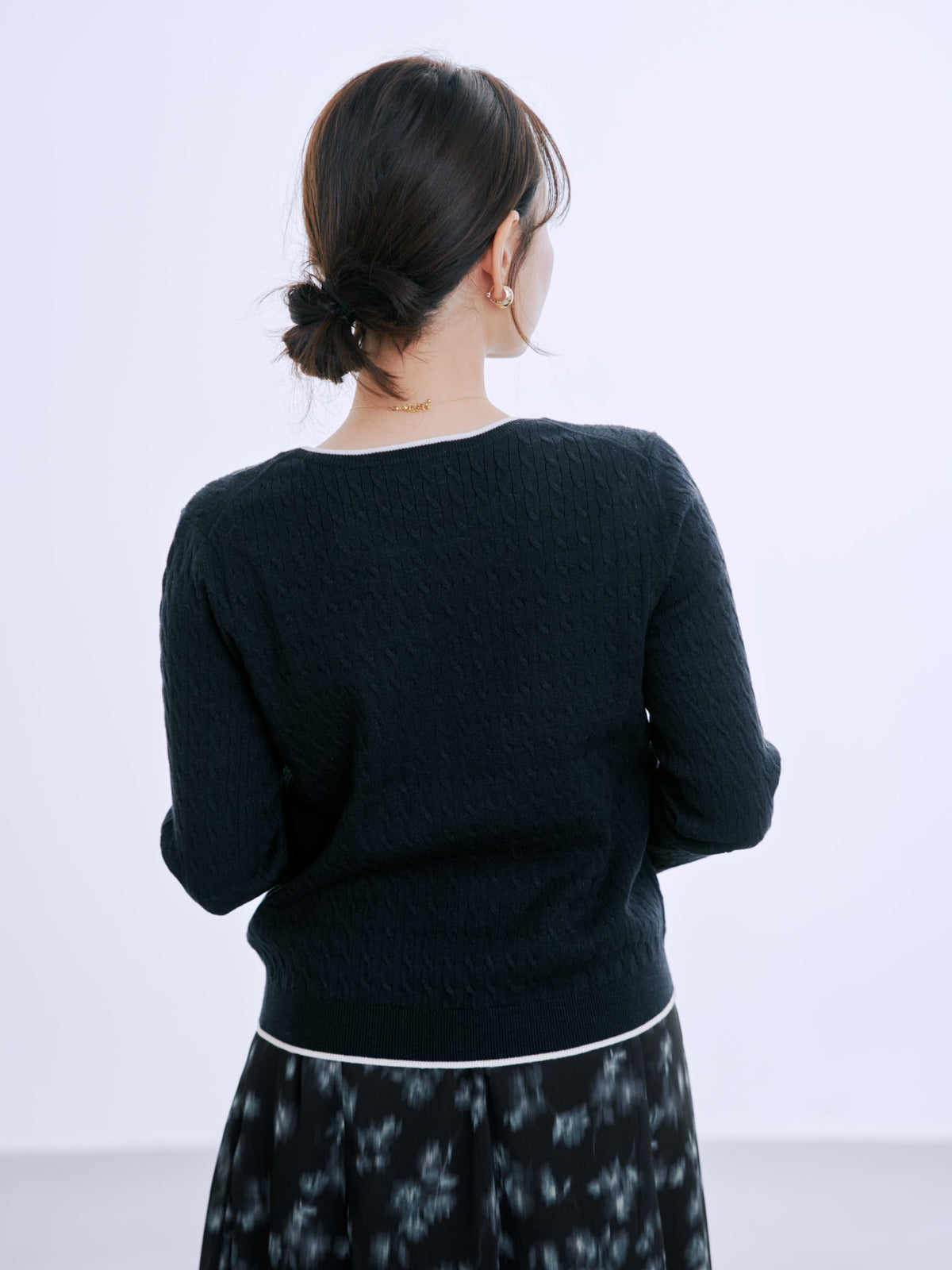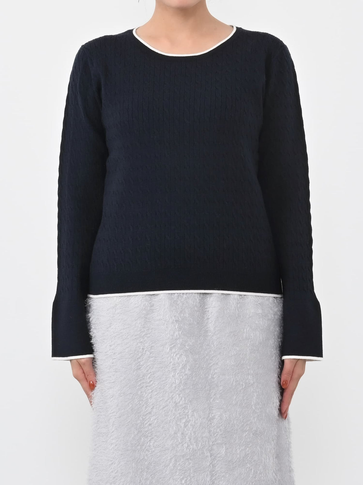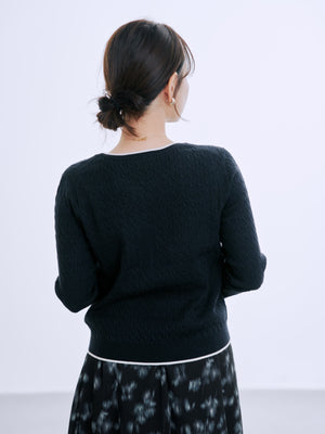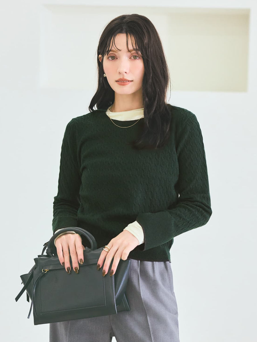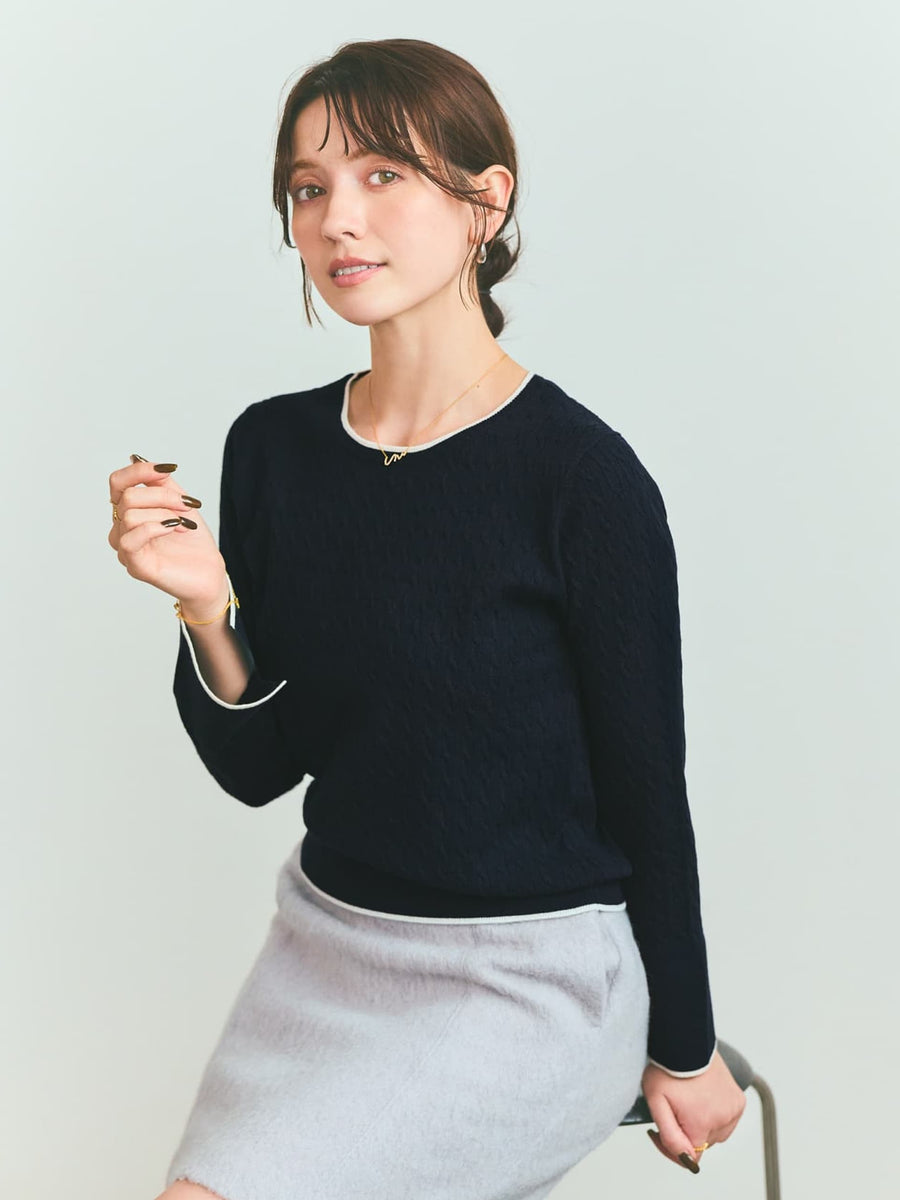 全体に施された細やかなミニケーブル編みが、上品な立体感を演出。