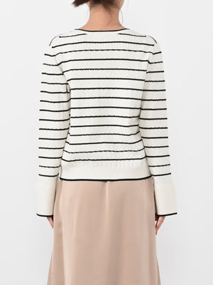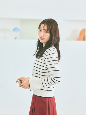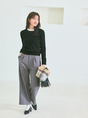 配色トリミングがアクセント、シンプルなのに印象的な着映えニット