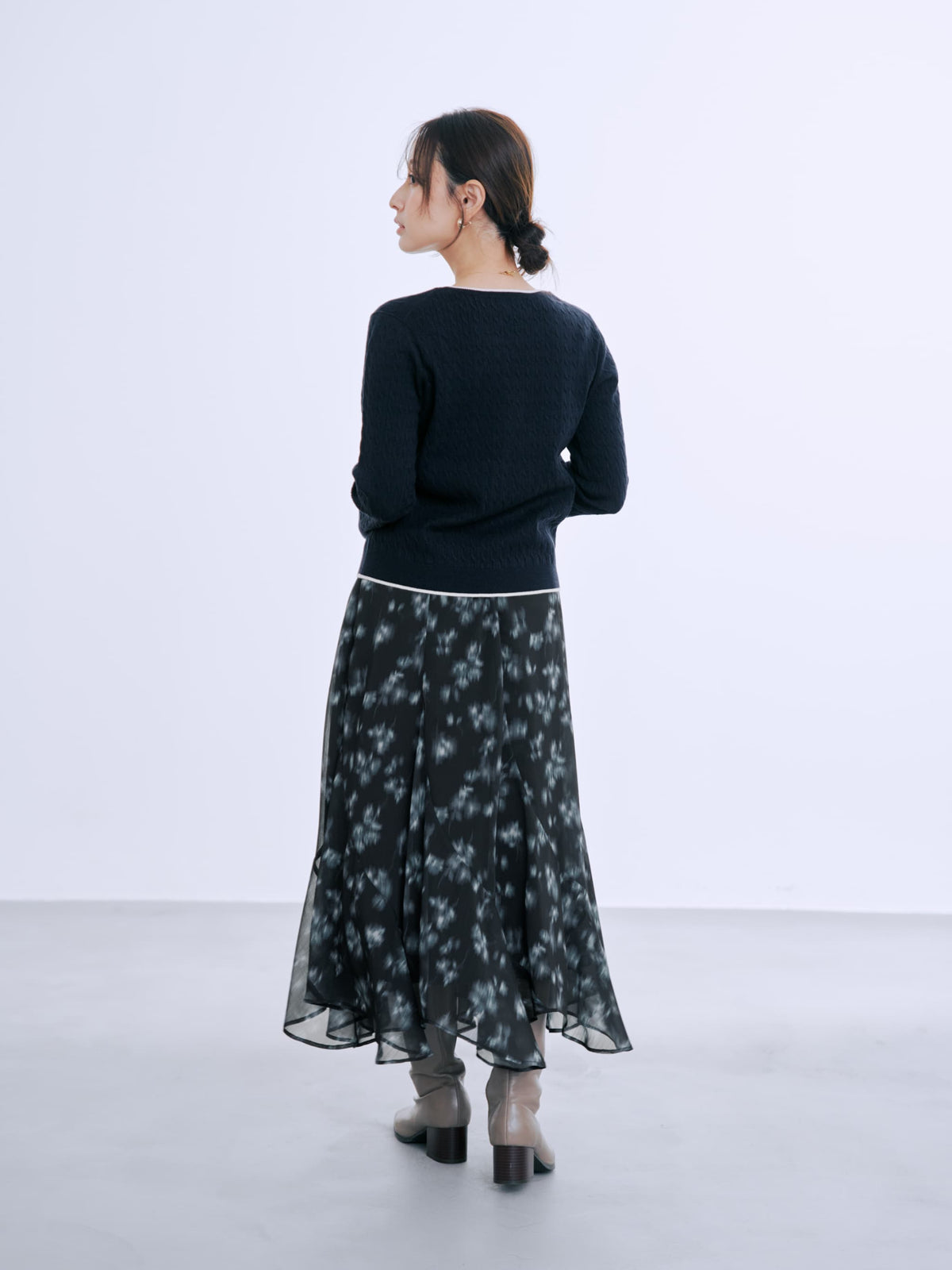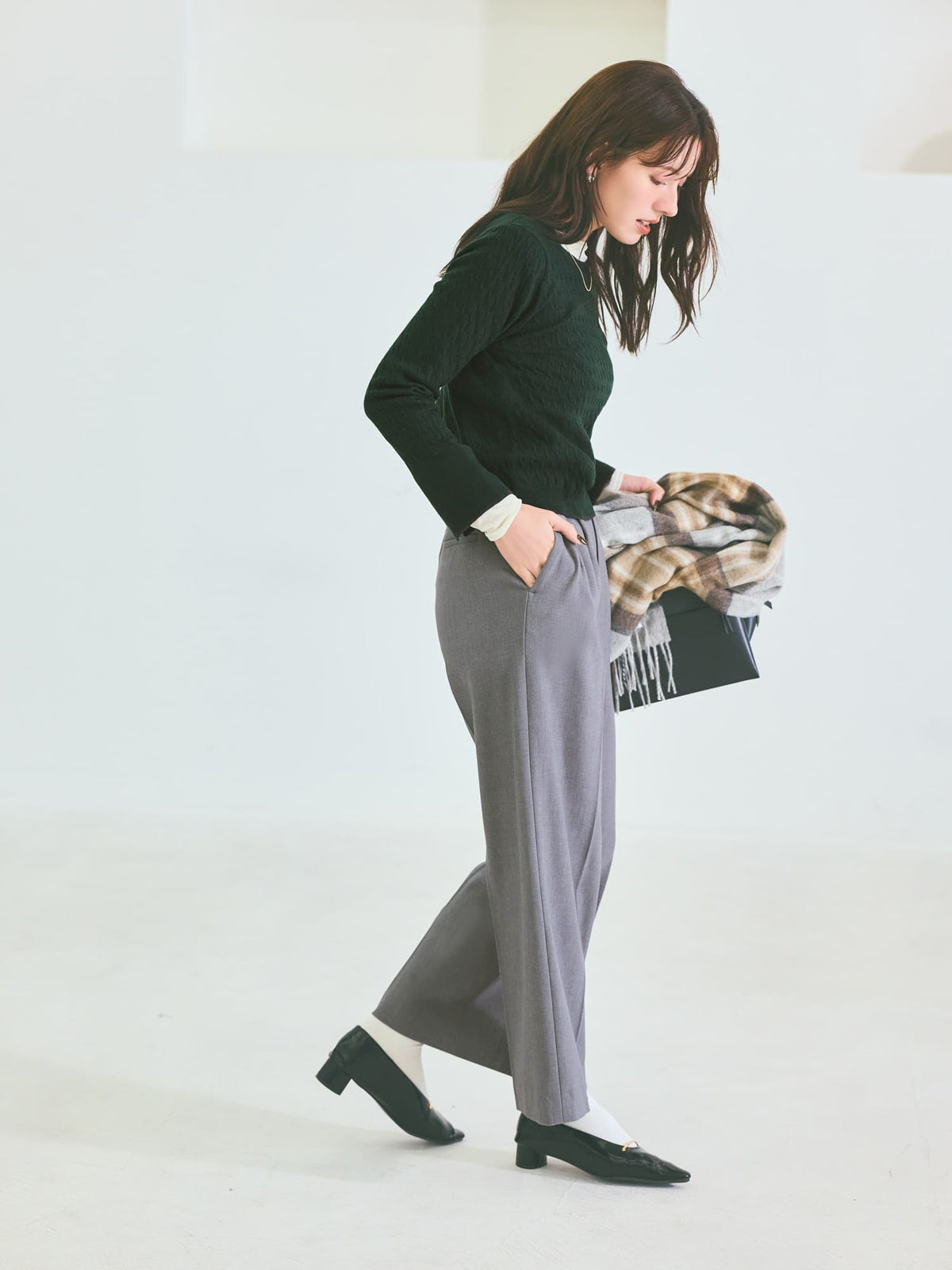 すっきりとしたシルエットながらも、柔らかな風合いで女性らしい印象に。