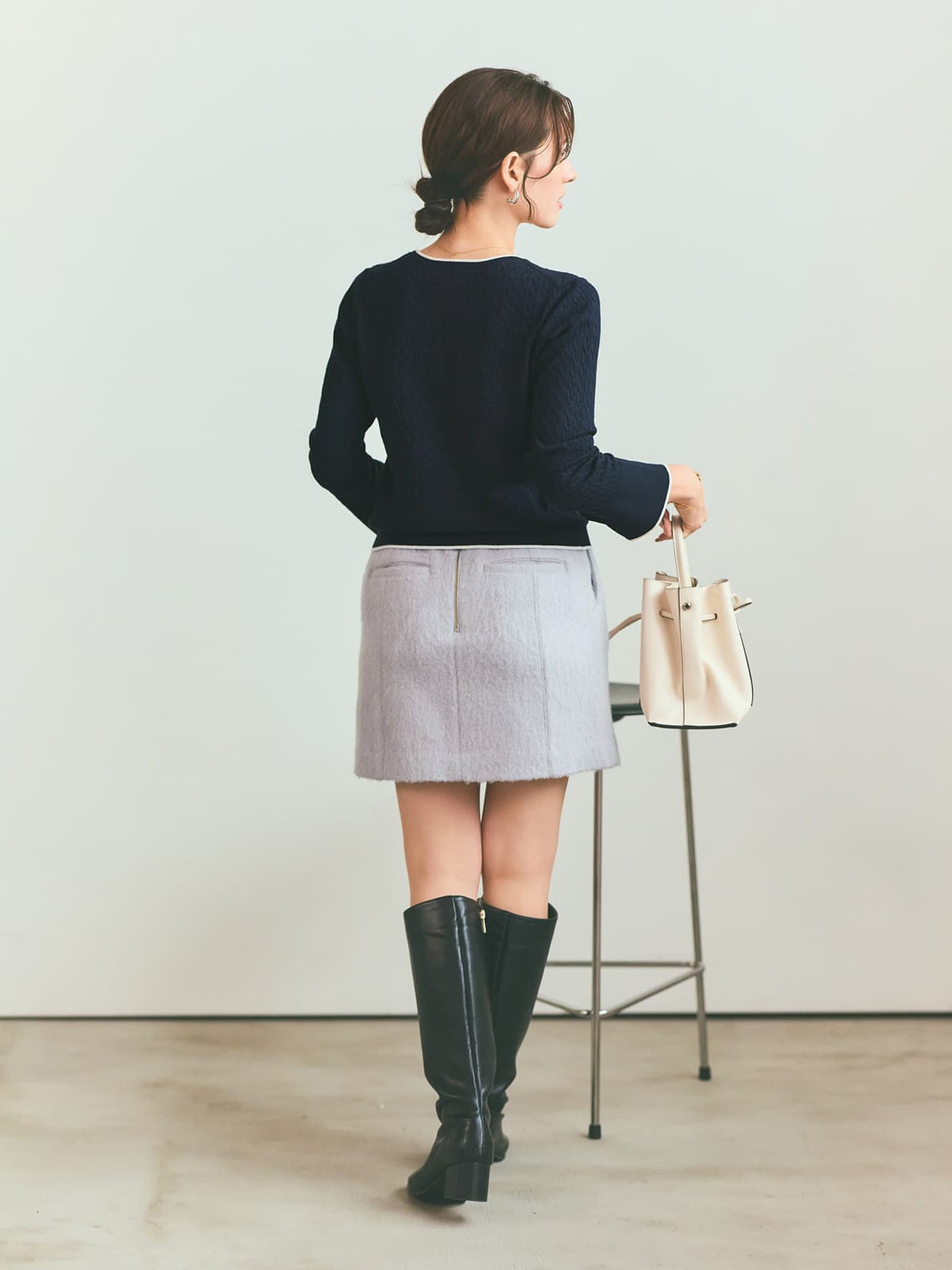 ・繊細な素材を使用しているため、カバンなどの摩擦により毛羽立ちやピリング(毛玉)などが発生する場合があります。ピリングができましたら引っ張って取ろうとせず、ブラッシングするか、小さなハサミで一つ一つ取り除いて下さい。