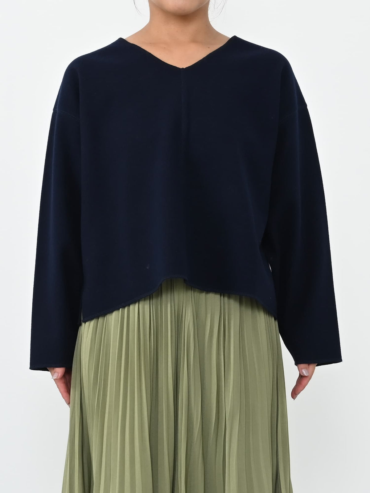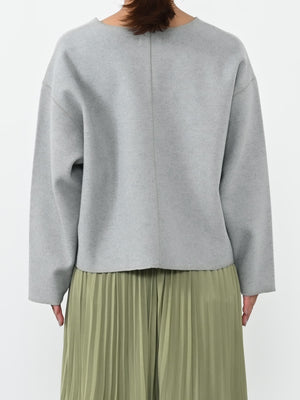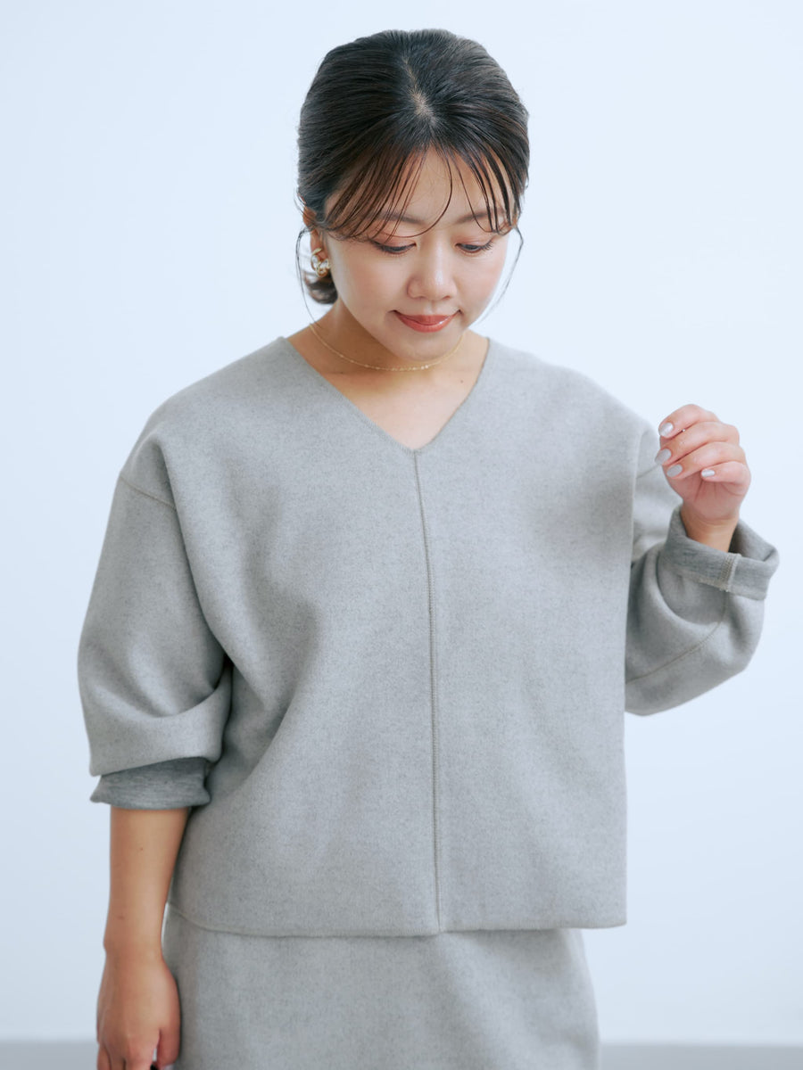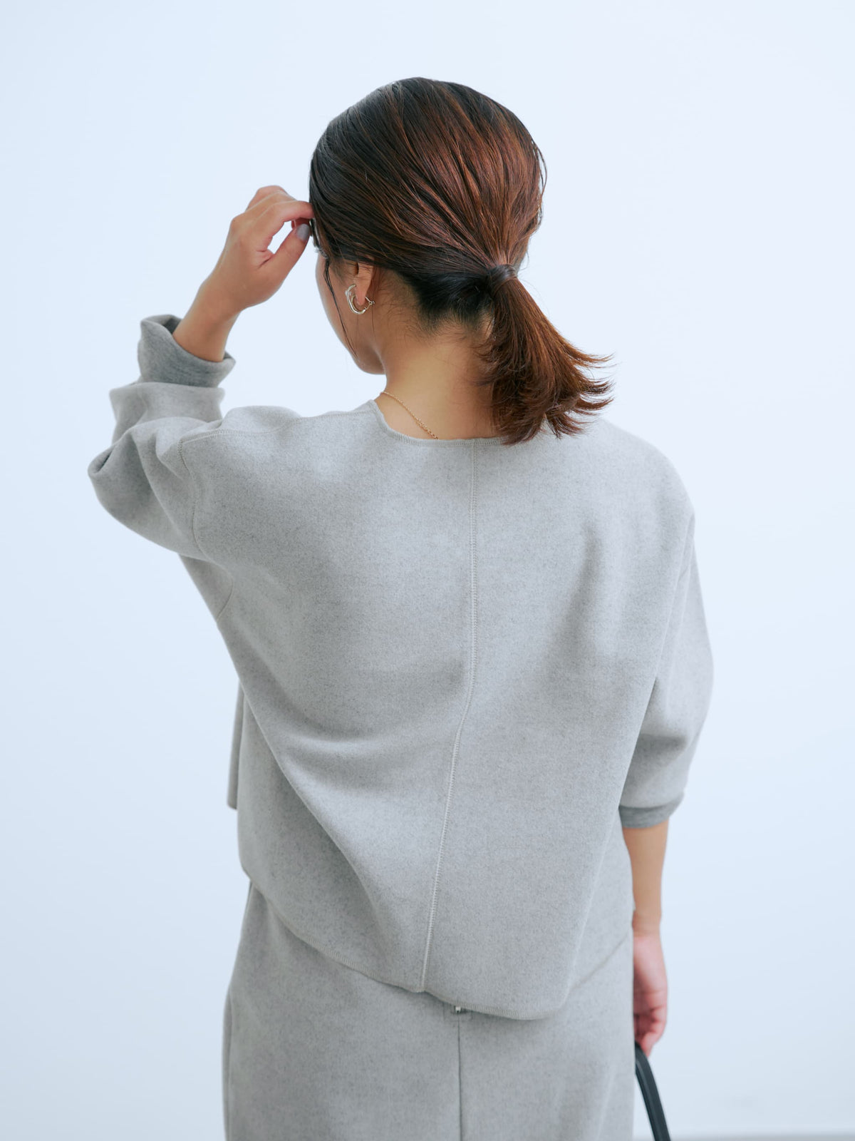 軽くて暖かいウールライクな表情の起毛ジャージーを使用したプルオーバー。