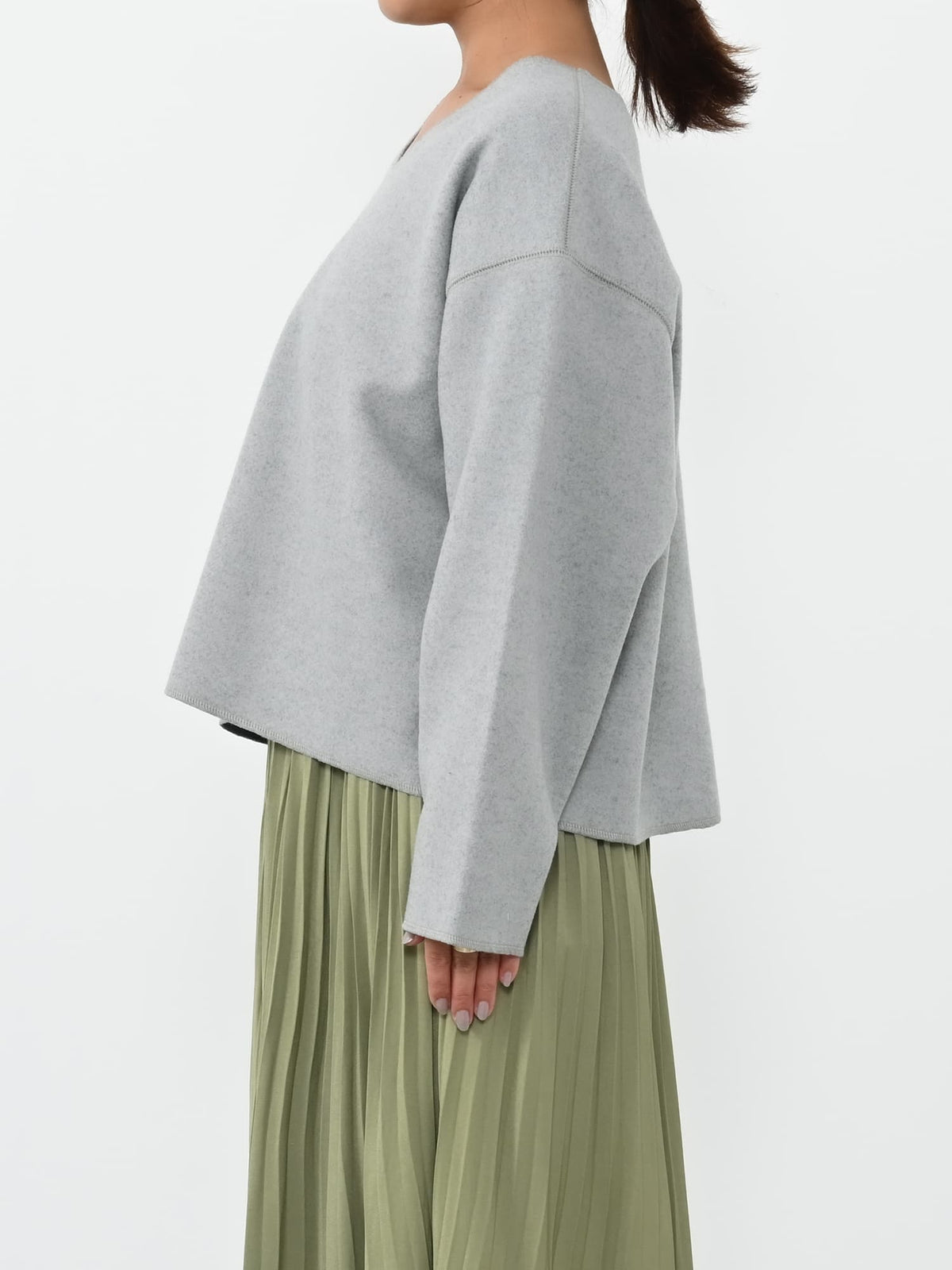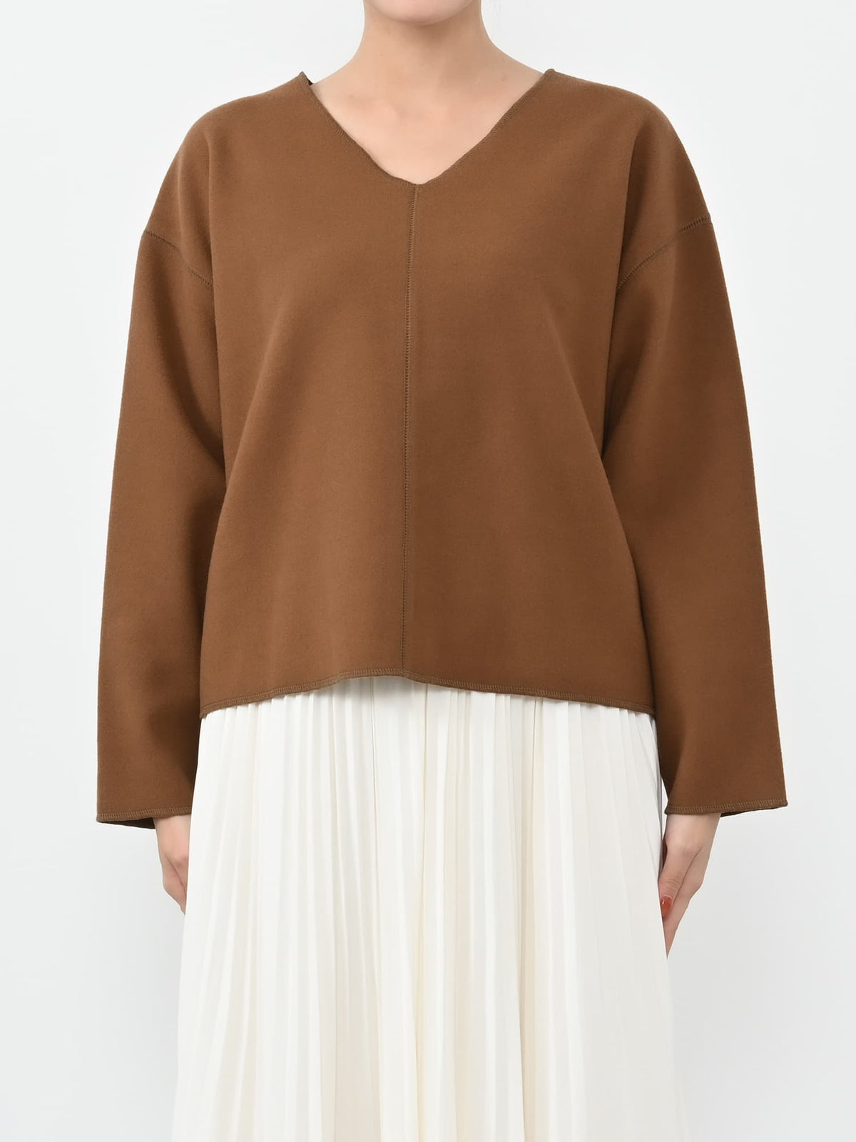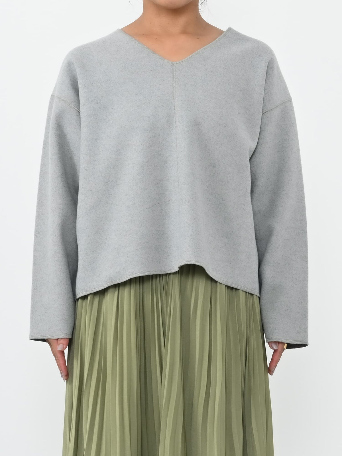 軽くて暖かいウールライクな表情の起毛ジャージーを使用したプルオーバー。