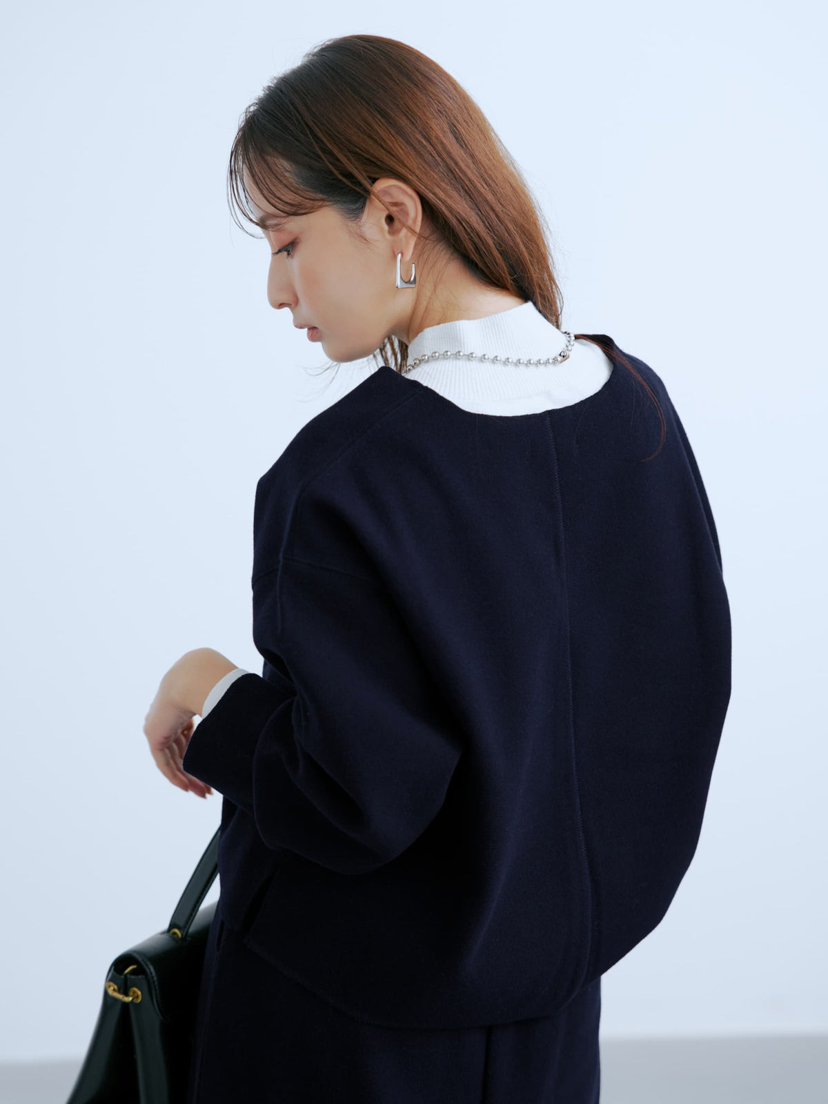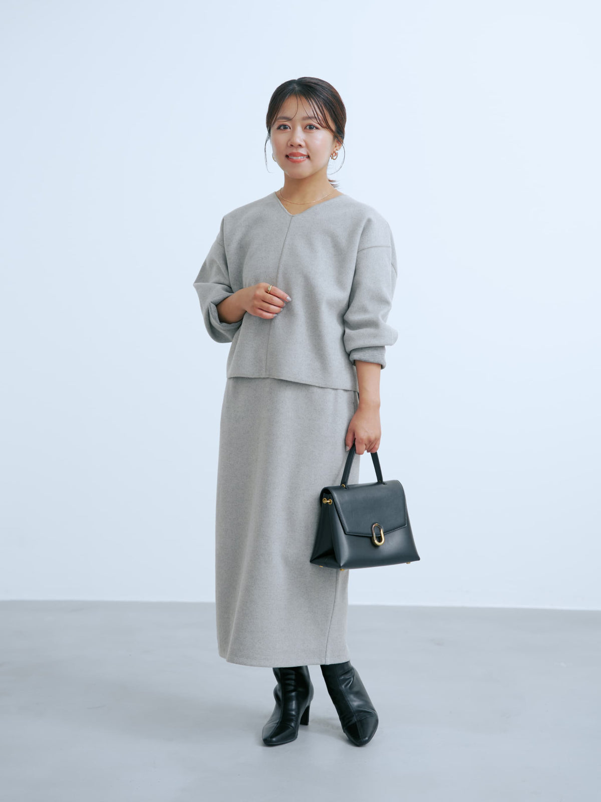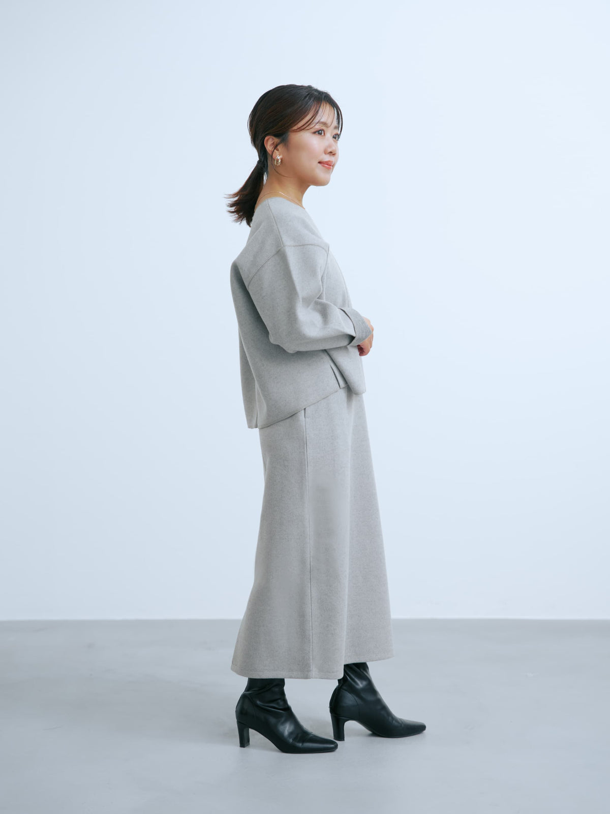 同素材のウールライクジャージースカートとセットアップでの着用がおすすめ。