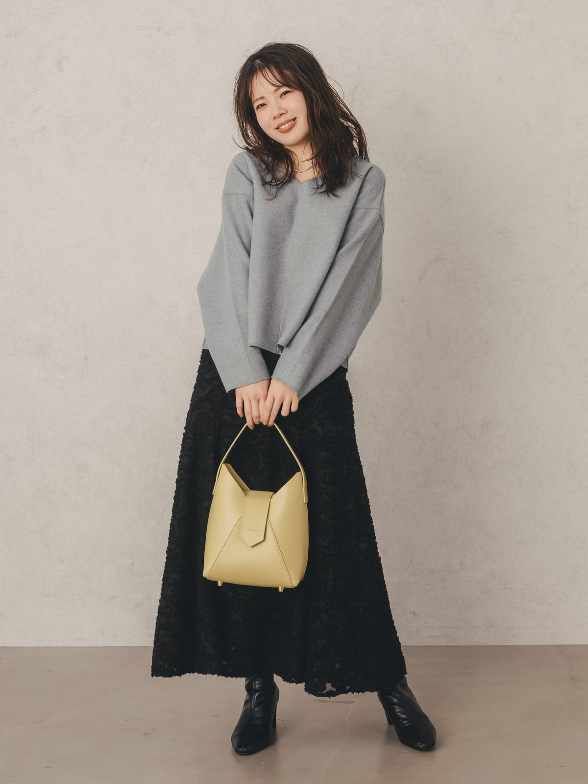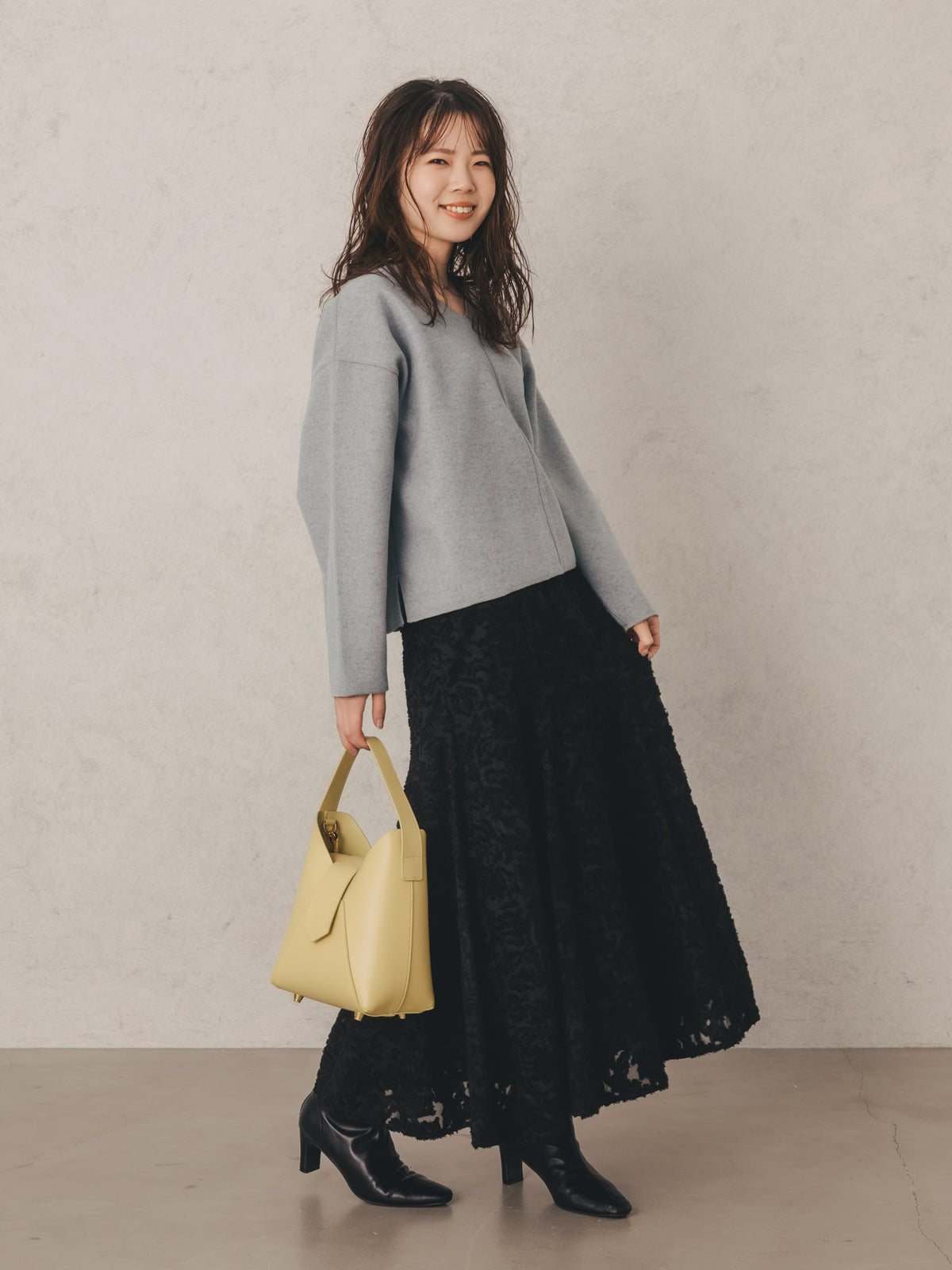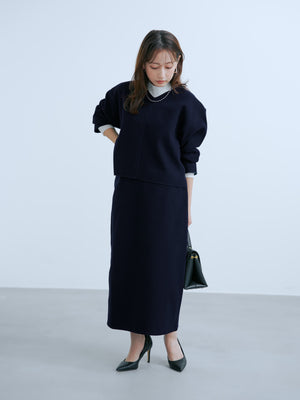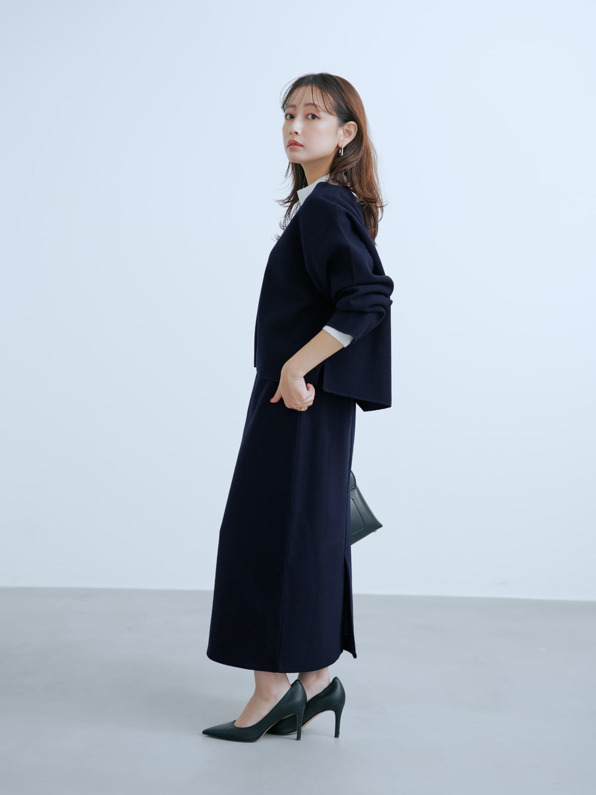同素材のウールライクジャージースカートとセットアップでの着用がおすすめ。