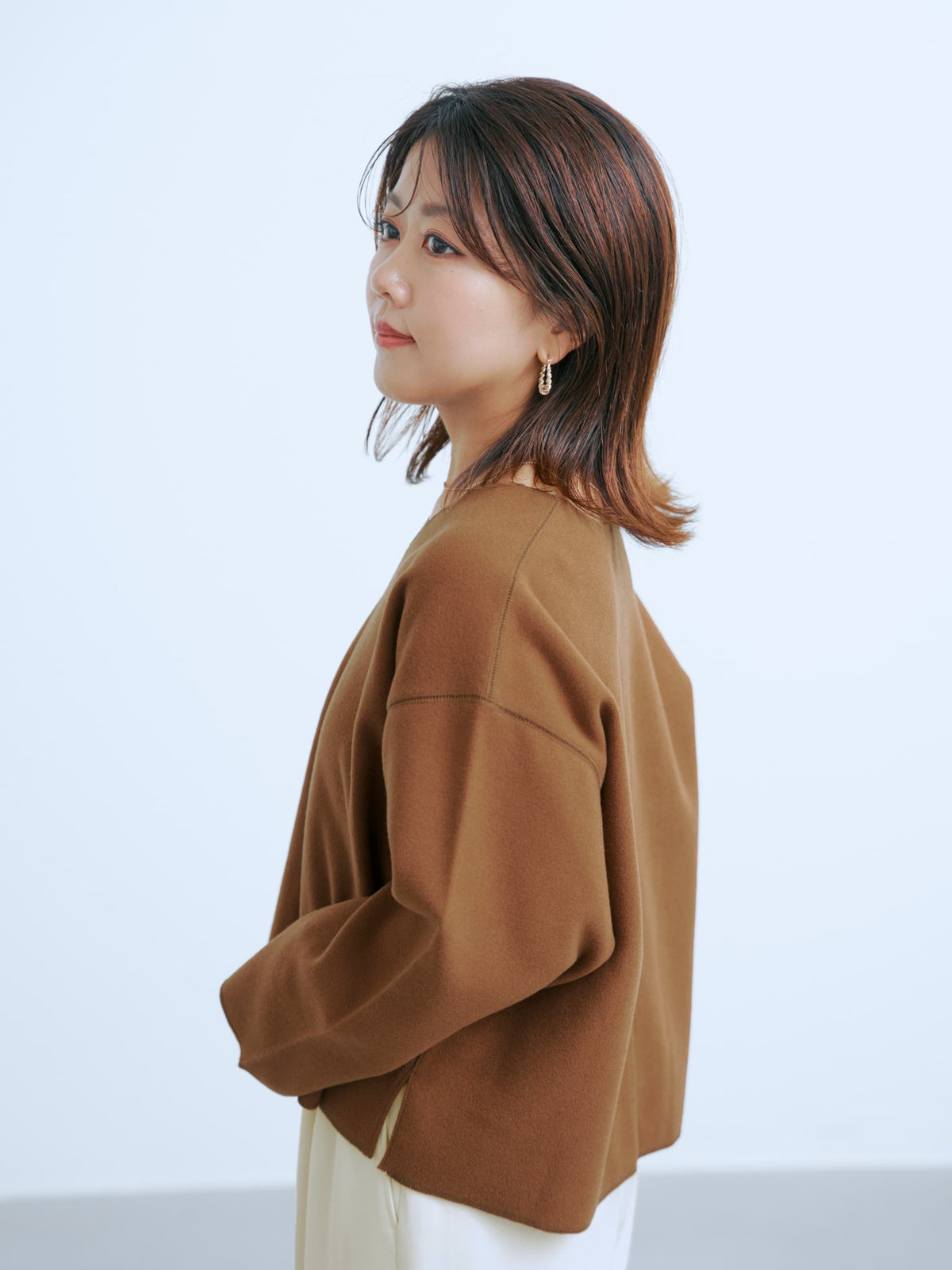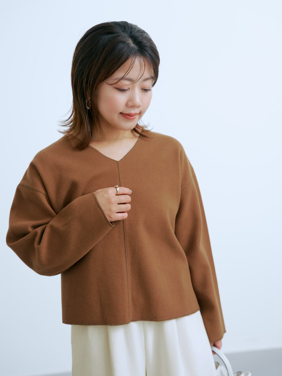 立体感のあるフォルムと適度なオーバーシルエットのプルオーバーは、お手持ちのボトムと合わせるだけでシルエットが決まる優秀なアイテム。シアー素材やハイゲージのインナーなどと合わせて襟周りのレイヤードも楽しめます。