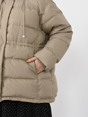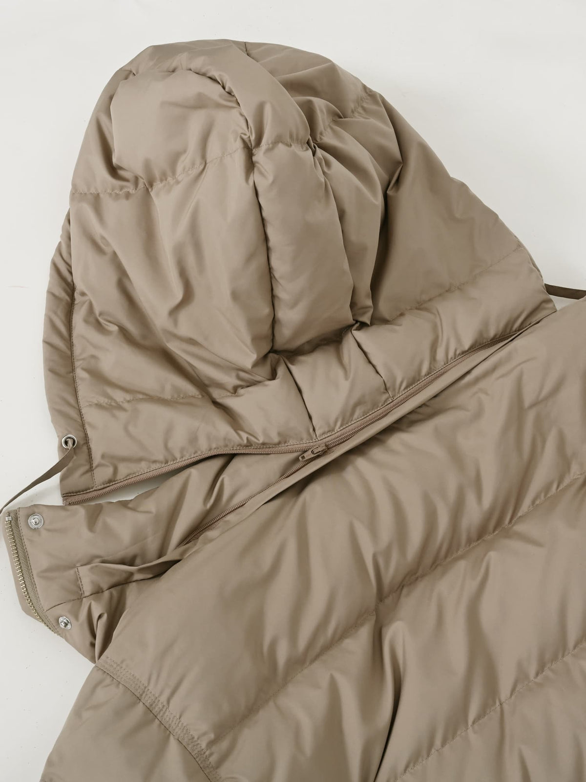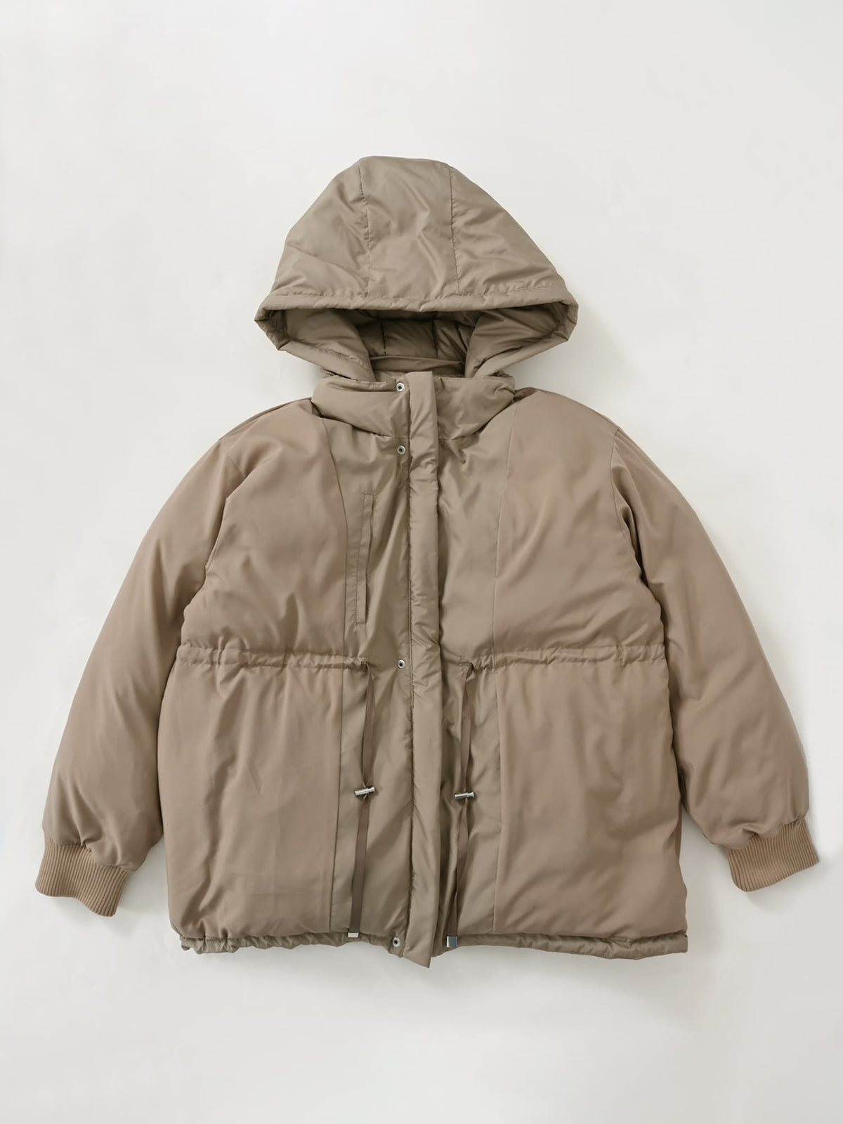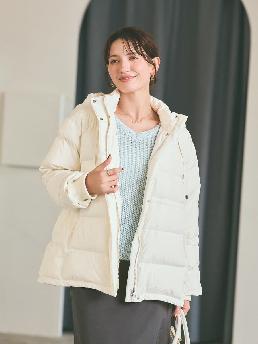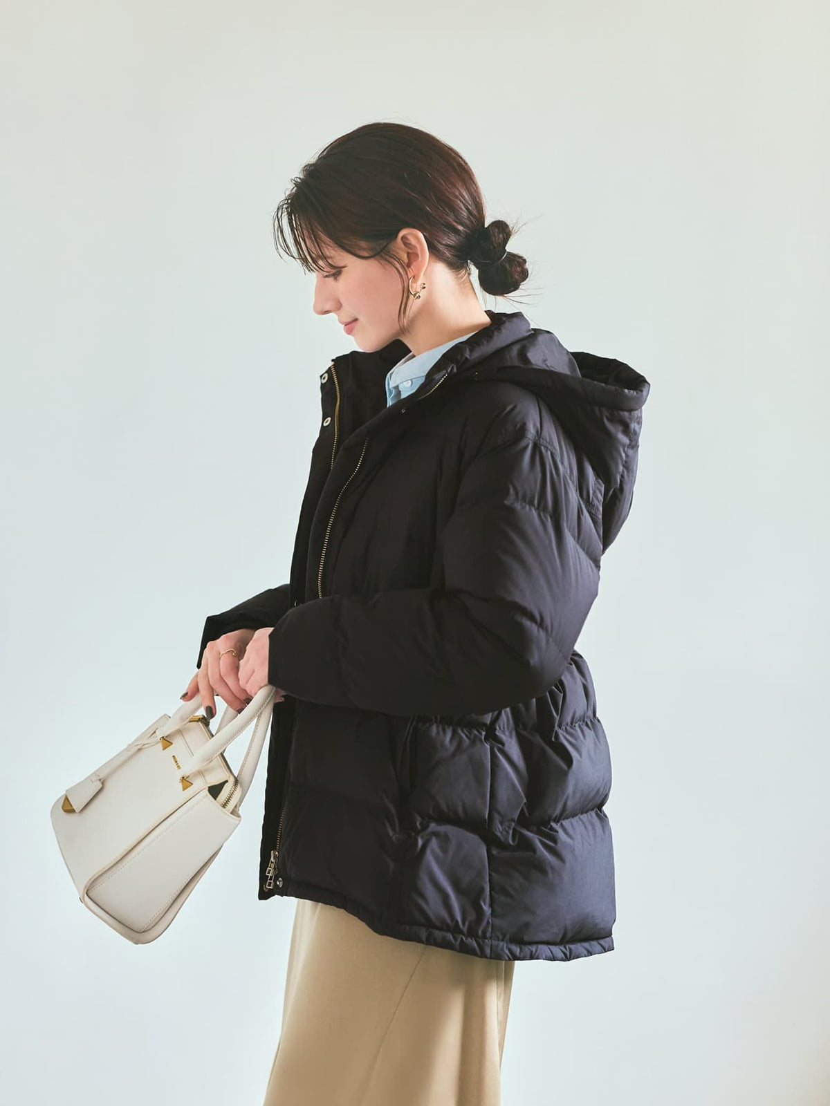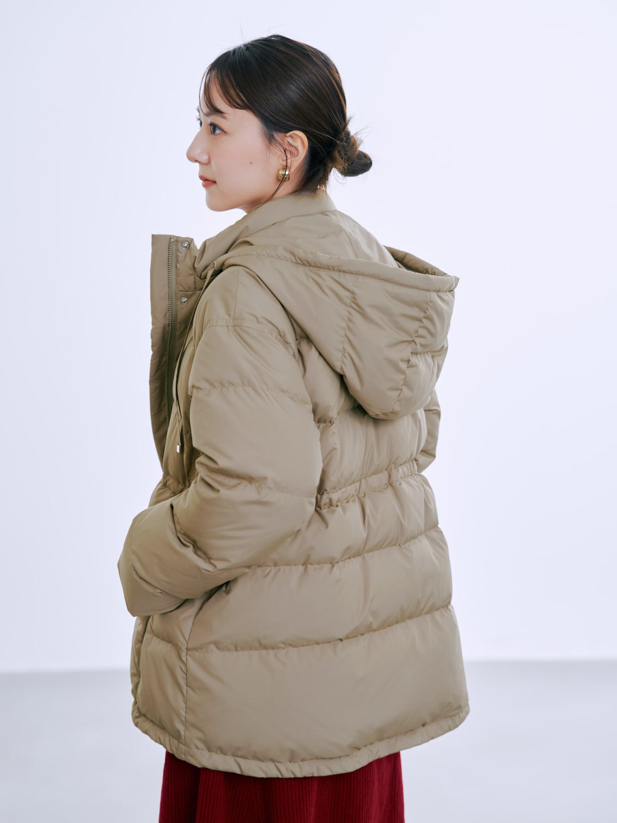 小柄さんでも着膨れしにくいようにステッチ巾を調整し、ウエスト裏側ドロスト仕様でスタイルUP効果も抜群。フードは取り外し可能でカジュアルにも綺麗めにも着用いただけるのもポイント。