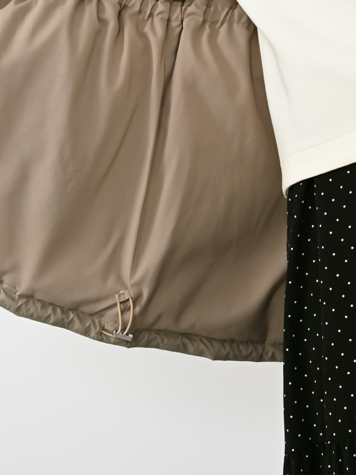 適度にゆとりのあるシルエットなので、インナーにはゆったりとしたニットも着込みやすく、ウエストと身頃の裾が絞れるのでシルエットを自分好みに調整いただけます。