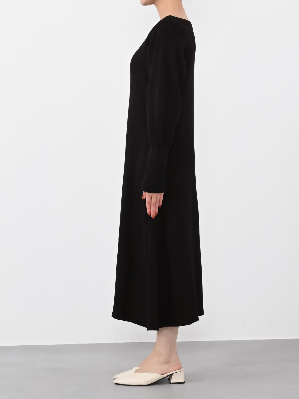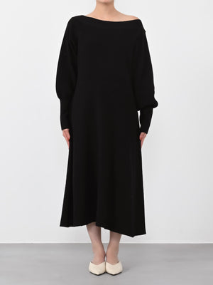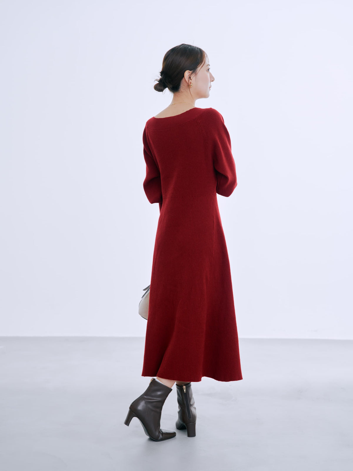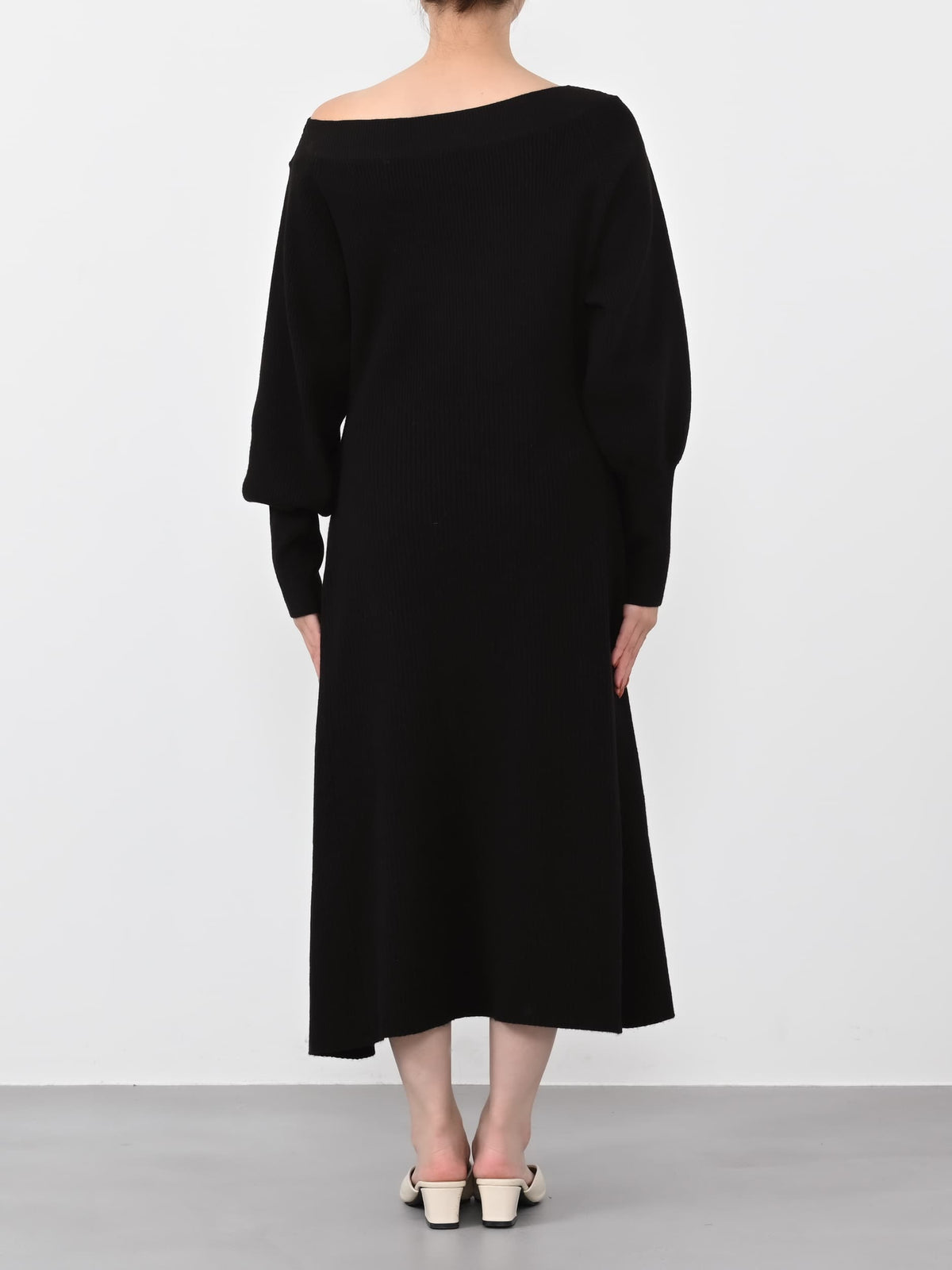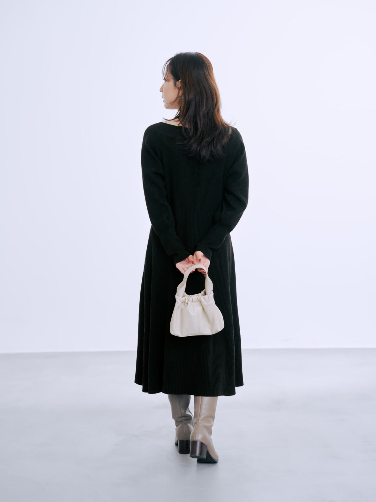 身体のラインを華奢に見せてくれるウエストのリブ切り替えと裾にかけて広がるフレアがレディライクなシルエットを演出。抜け感のあるボートネックとほんのりボリュームを持たせた袖もポイント。