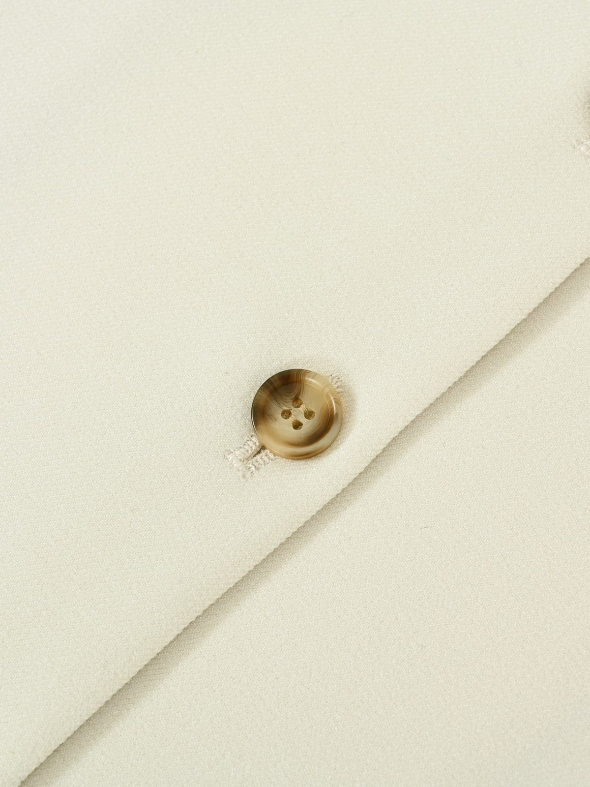 やや肉厚で落ち感のあるポリエステル混素材を使用。シワになりにくく、きれいめな表情を長時間キープ。