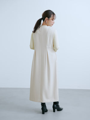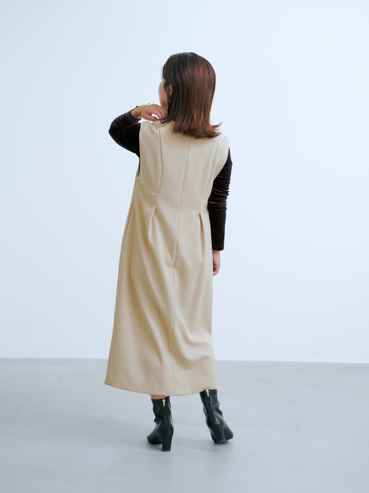 ウエストにかけて自然にシェイプされたシルエットが、身体のラインを拾いすぎず美しくみせてくれます。