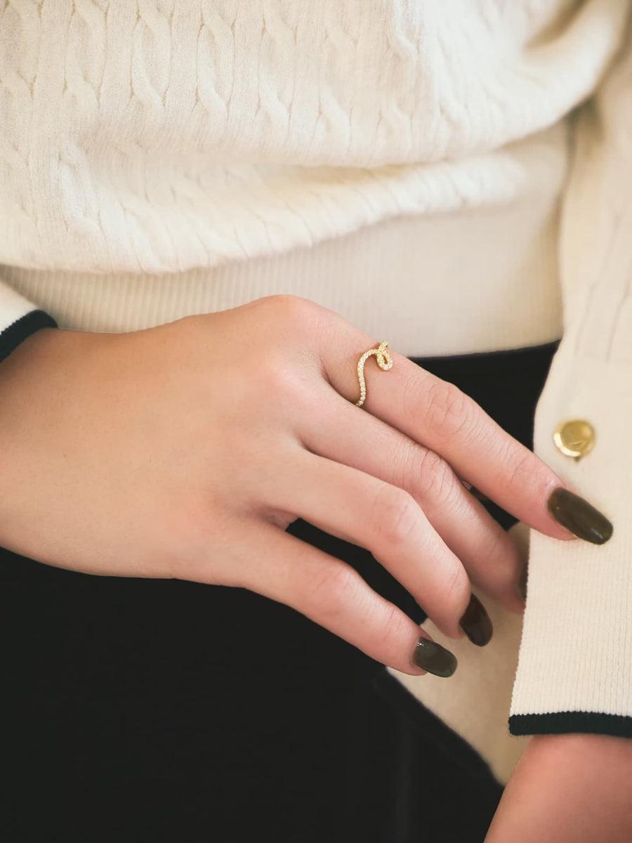 今回はライバー・YUNAがデザインに携わり、COHINAの頭文字であるCをイメージして描いた線をそのままリングに落とし込みました。曲線が指先を長くすっきりと見せ、小柄さんの指が1番綺麗に見えるようにデザイン。手元に馴染む華奢さと、上品な存在感を両立。どんな色石とも自然に調和し、手元をモダンにクラスアップしてくれます。